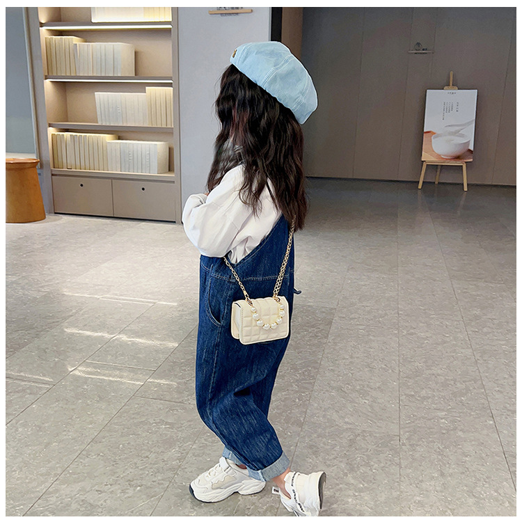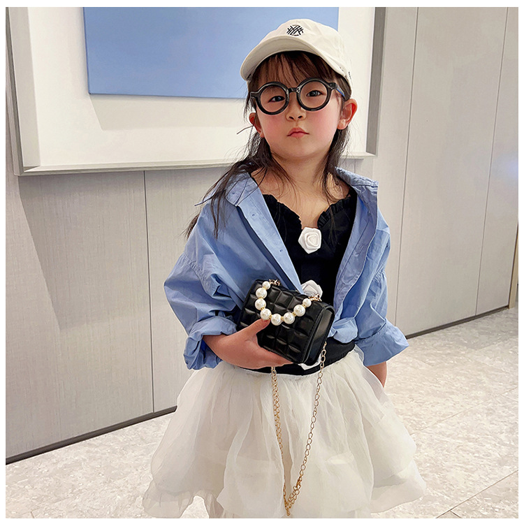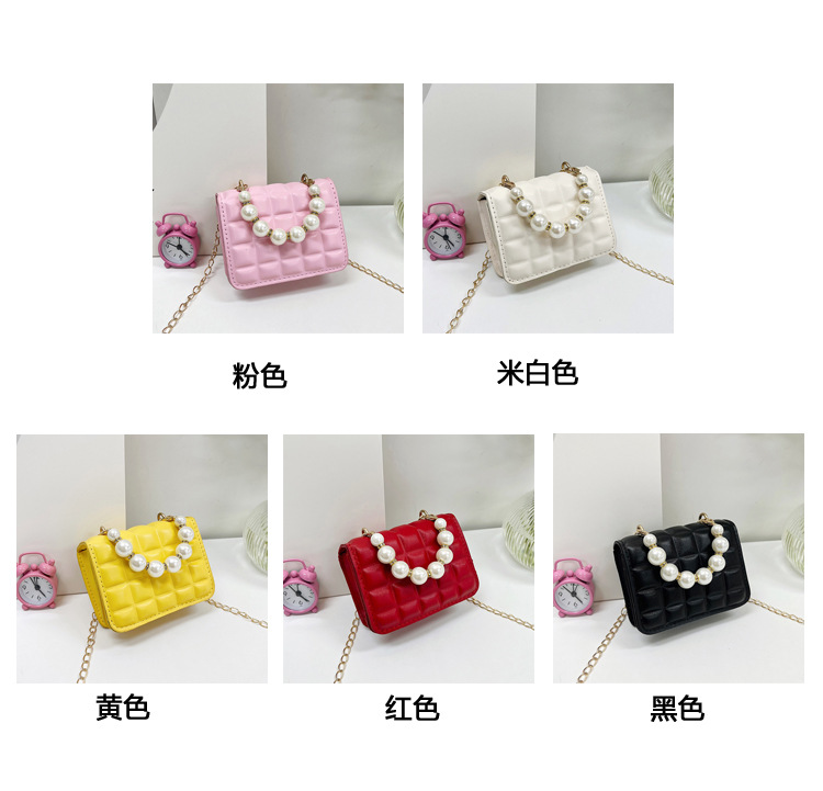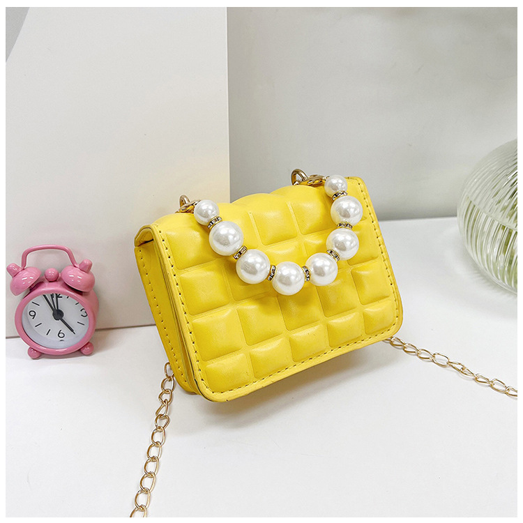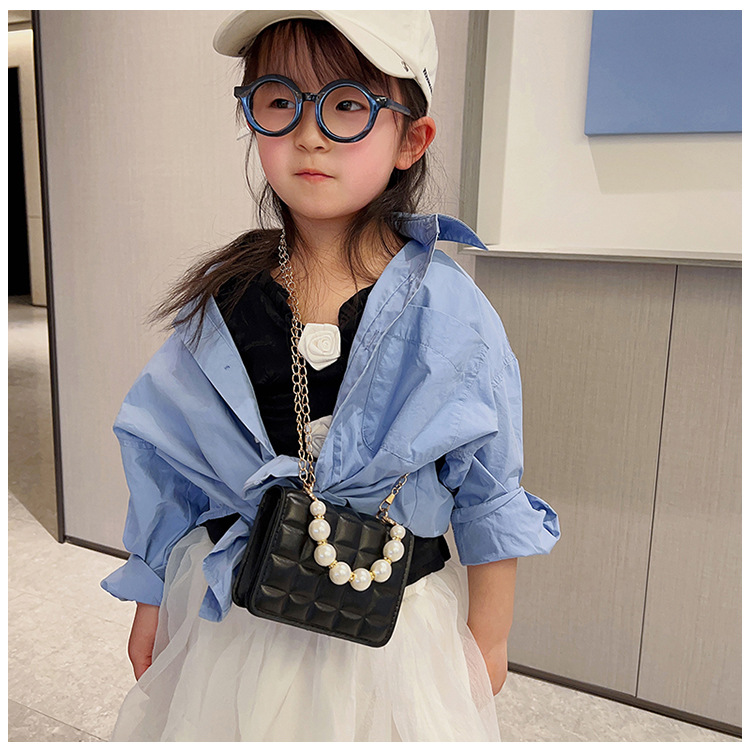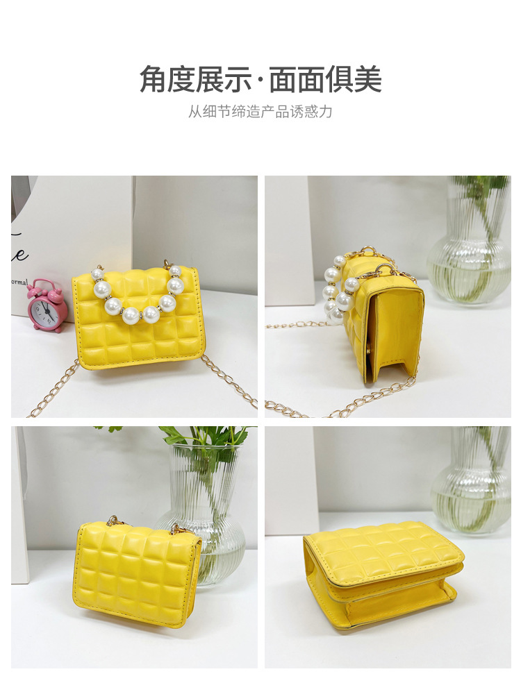 Bolso de cadena de perlas de indentación de tela escocesa de moda de este año mini bolso de mensajero de hombro de cadena de estilo occidental bolso de los niños