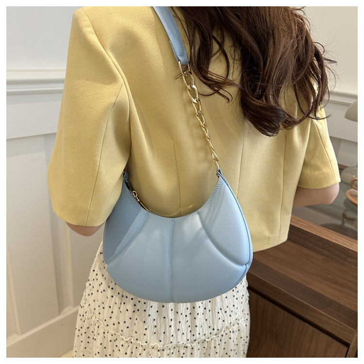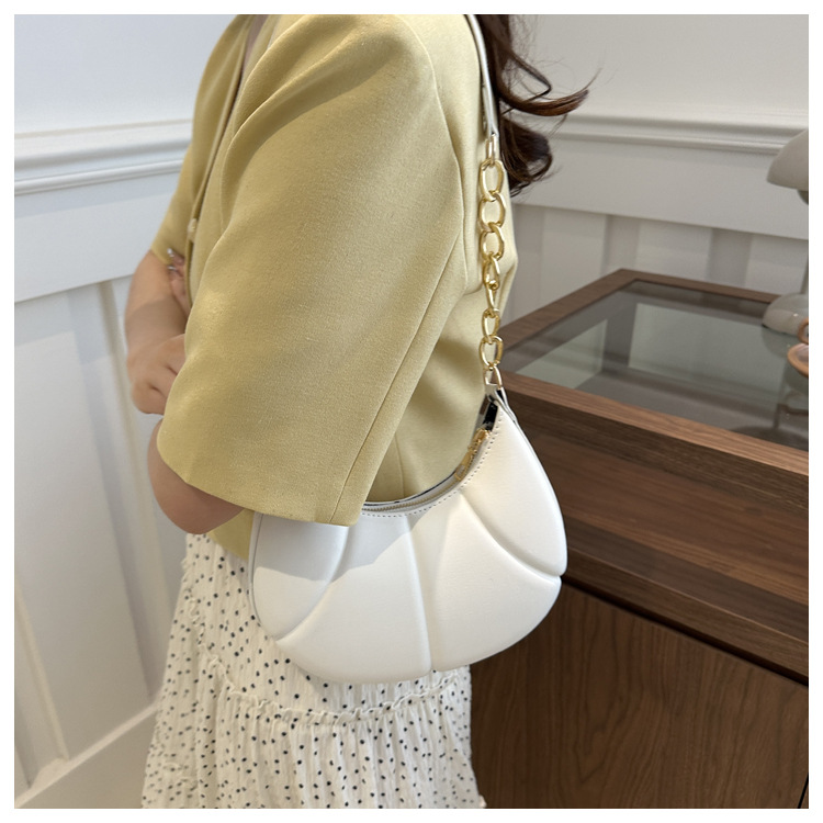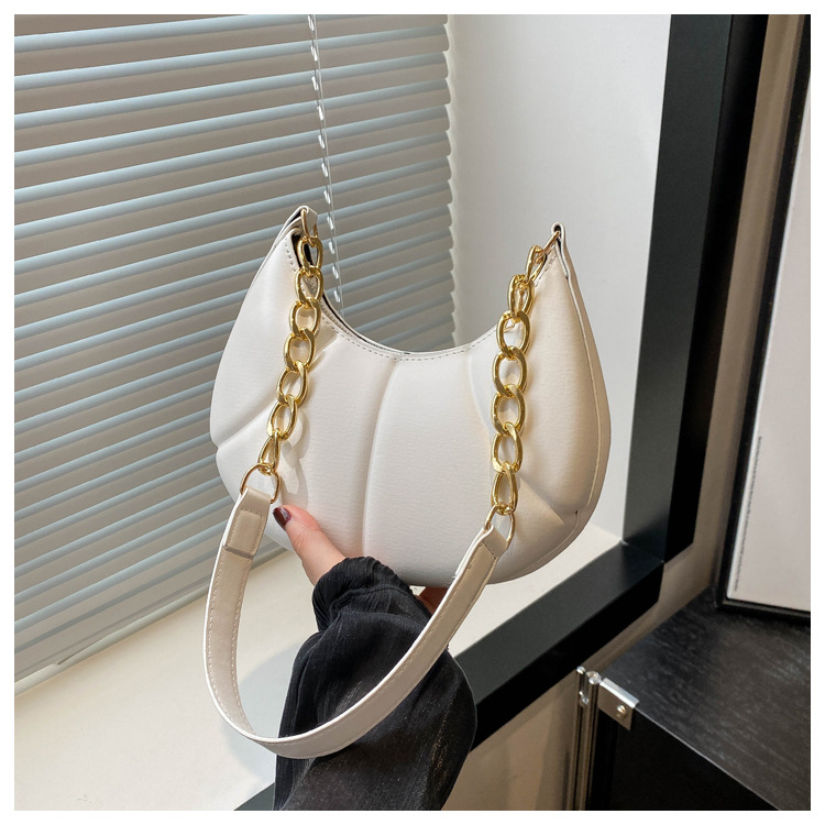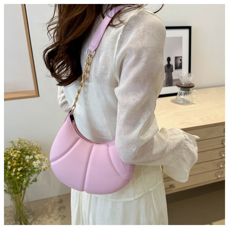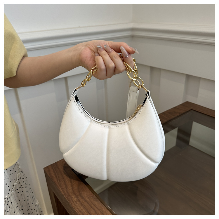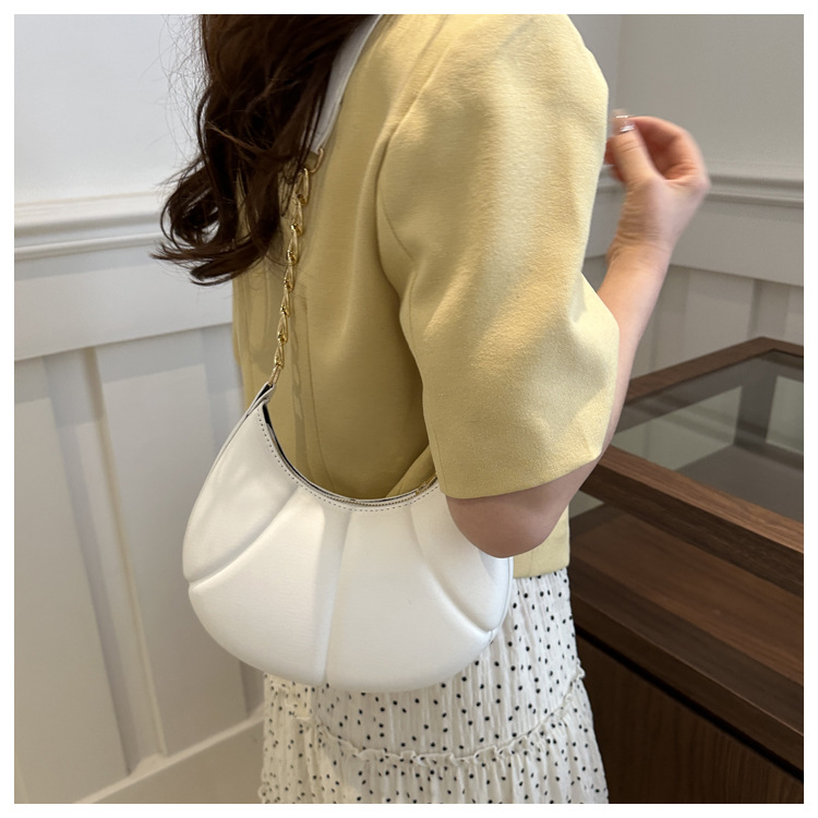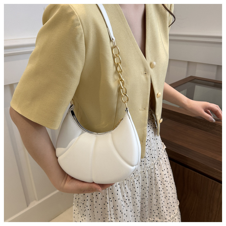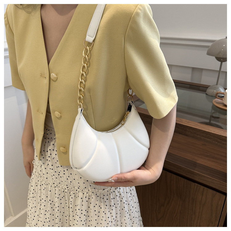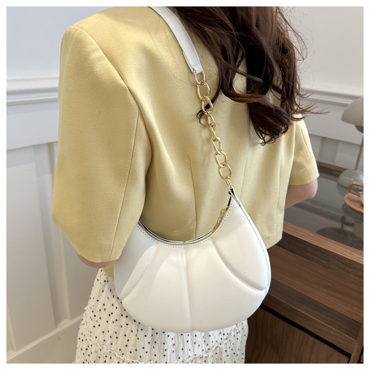 Nueva cadena de estilo extranjero textura portátil brazo bolso de mujer 2024 primavera y verano nuevo hombro estampación de color sólido bolso de brazo casual