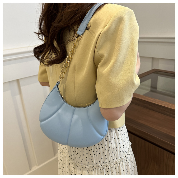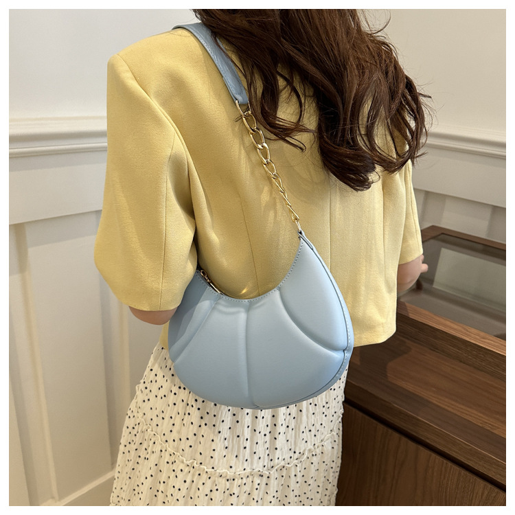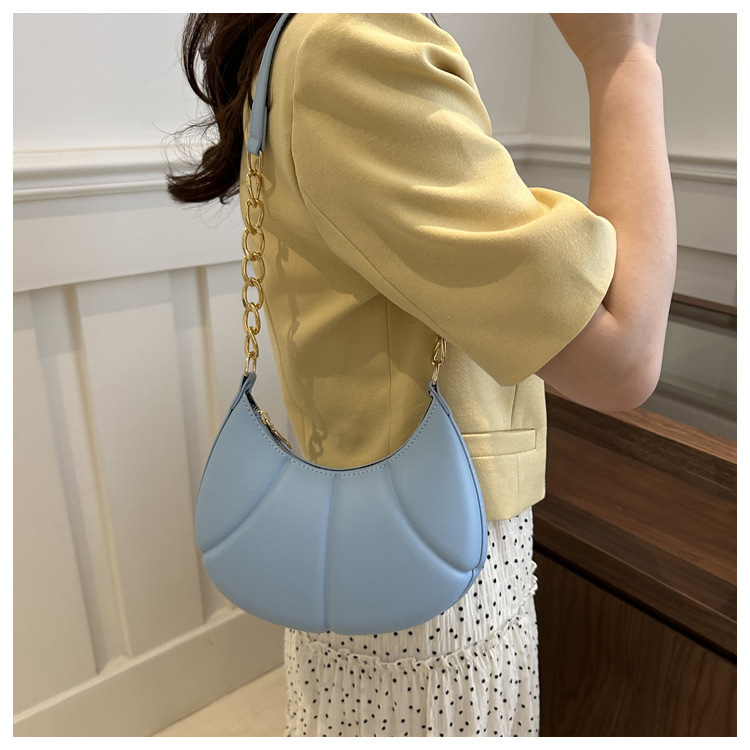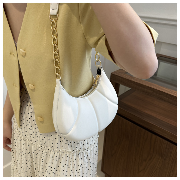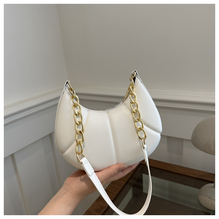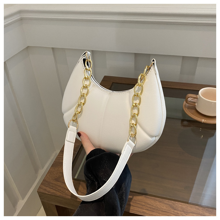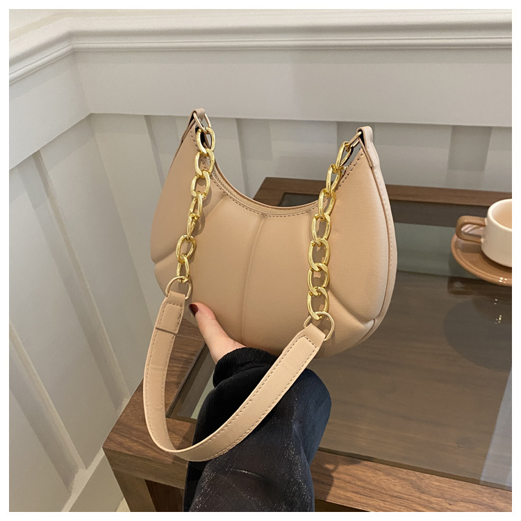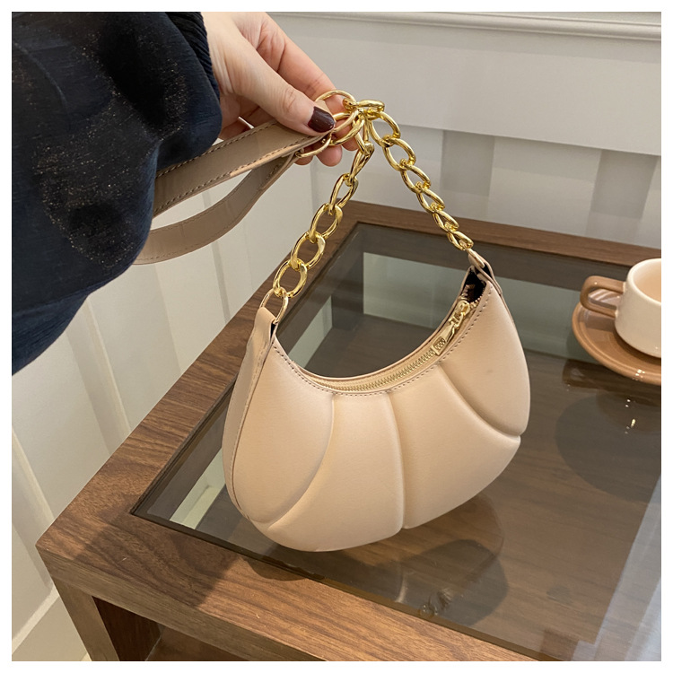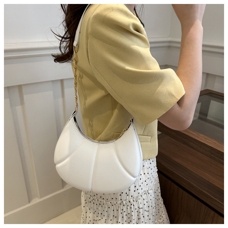 Nueva cadena de estilo extranjero textura portátil brazo bolso de mujer 2024 primavera y verano nuevo hombro estampación de color sólido bolso de brazo casual
