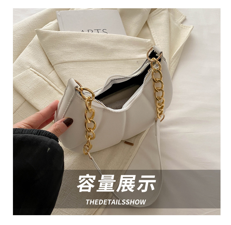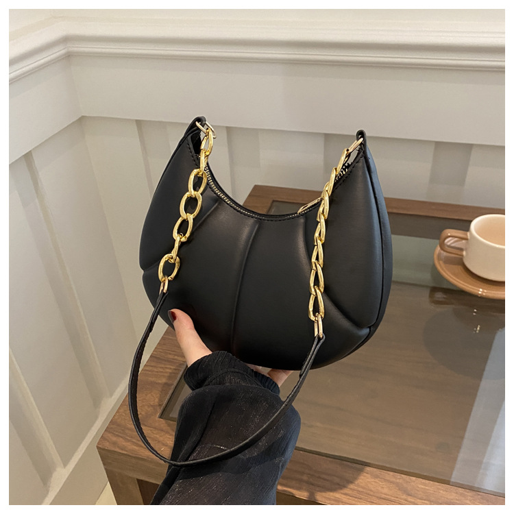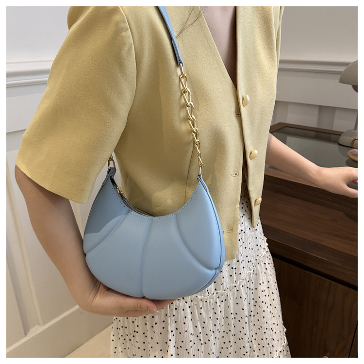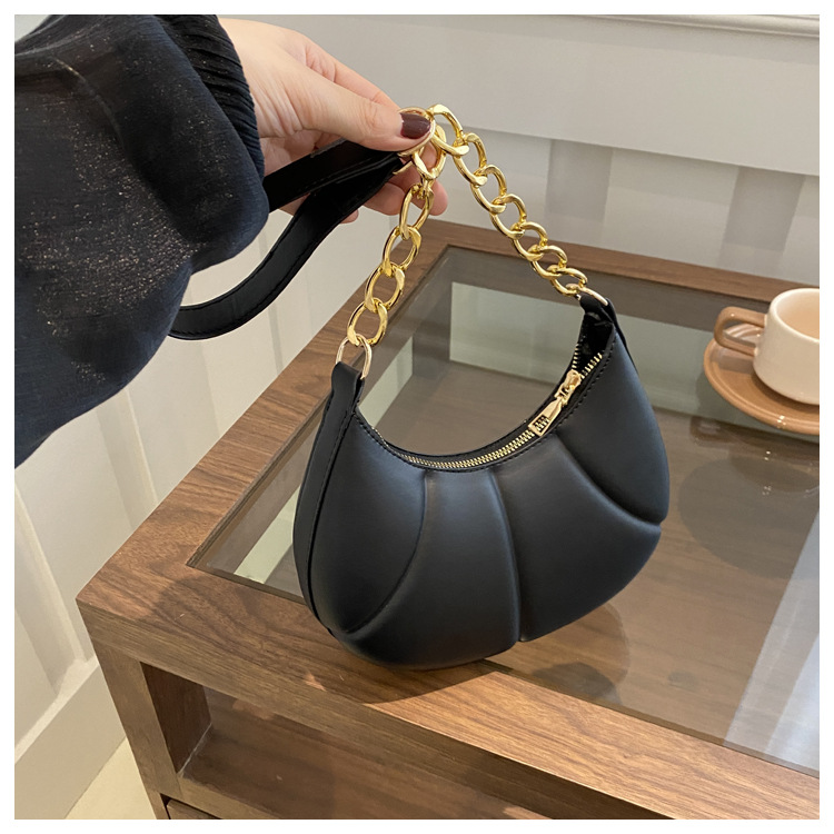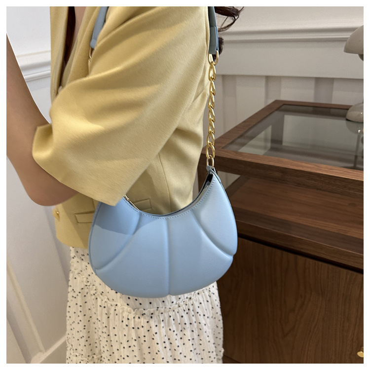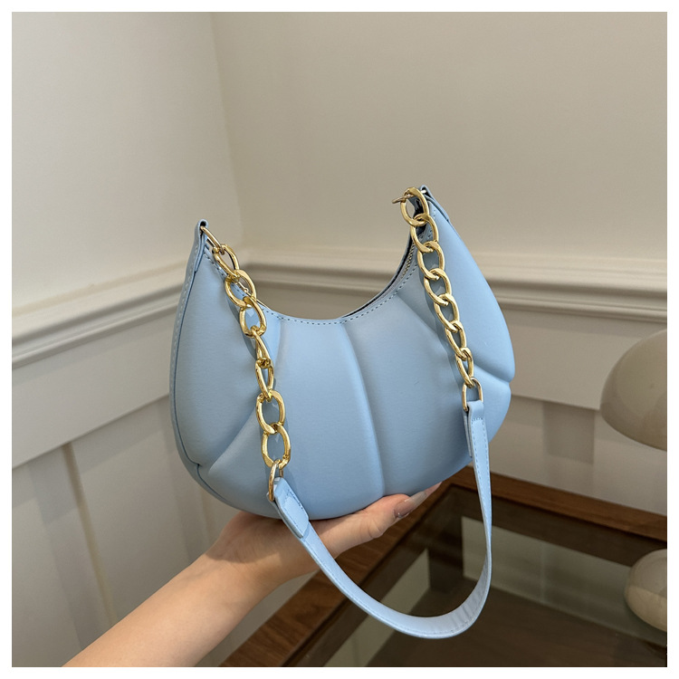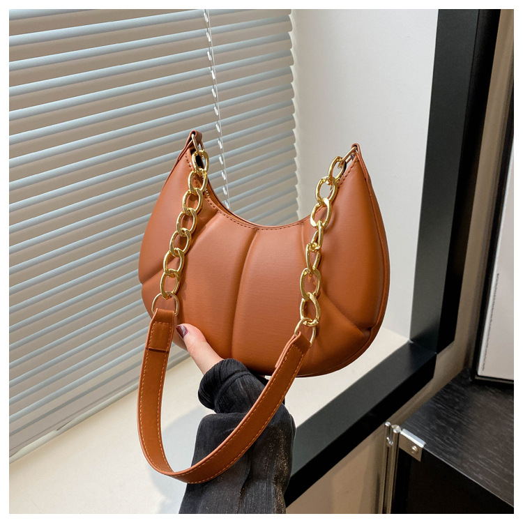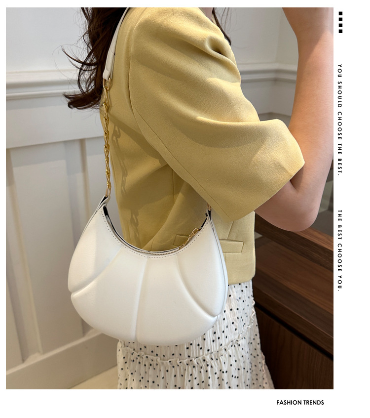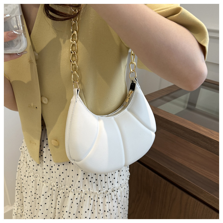 Nueva cadena de estilo extranjero textura portátil brazo bolso de mujer 2024 primavera y verano nuevo hombro estampación de color sólido bolso de brazo casual