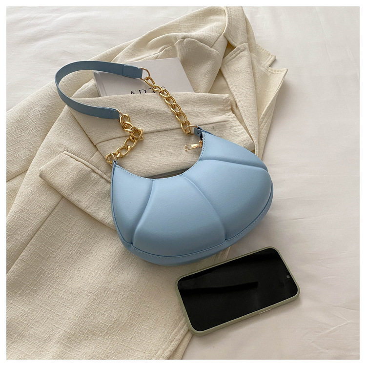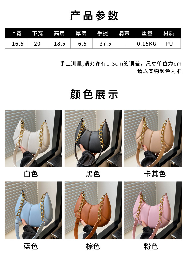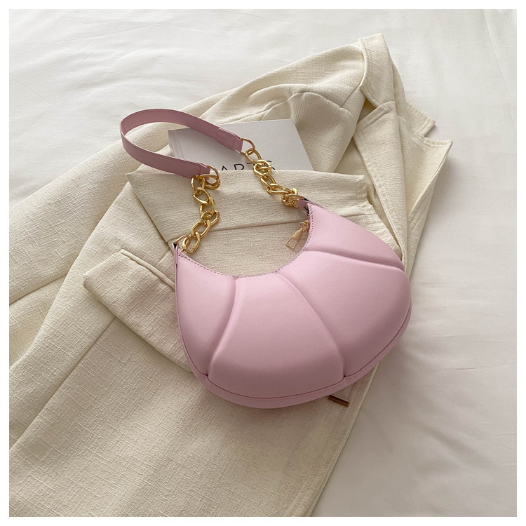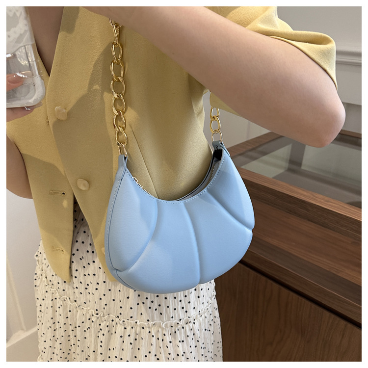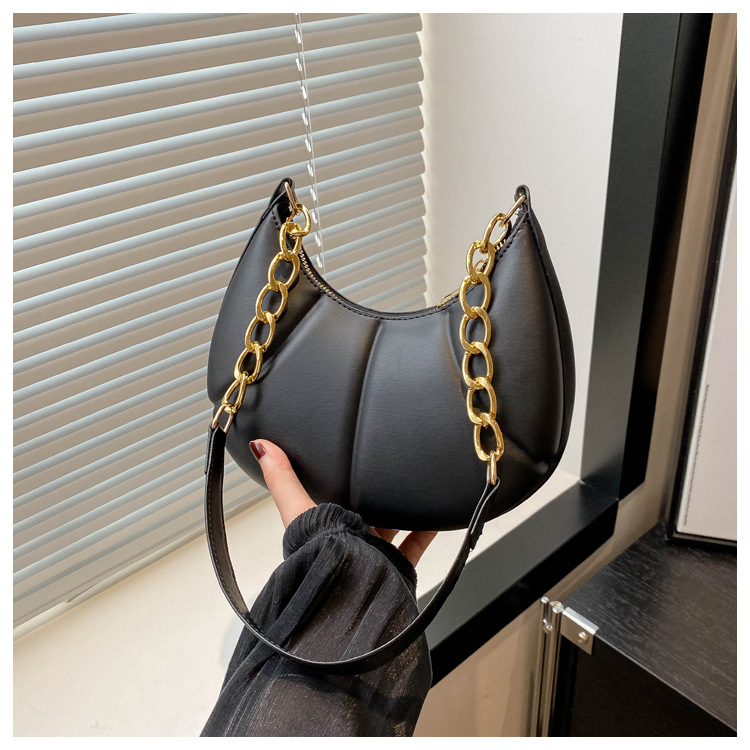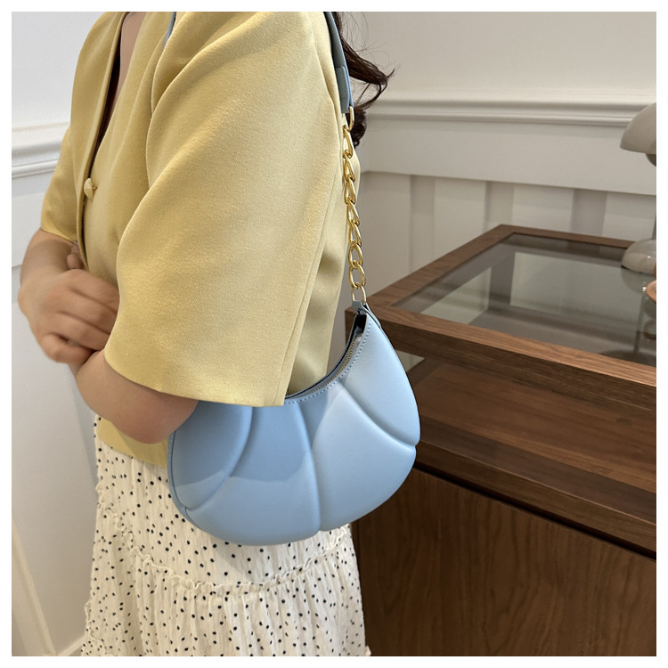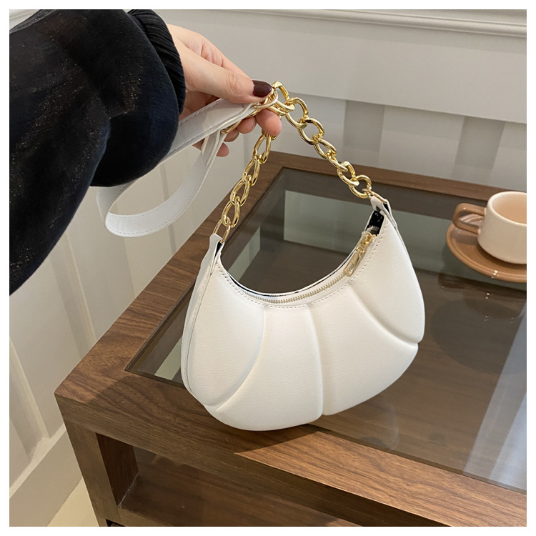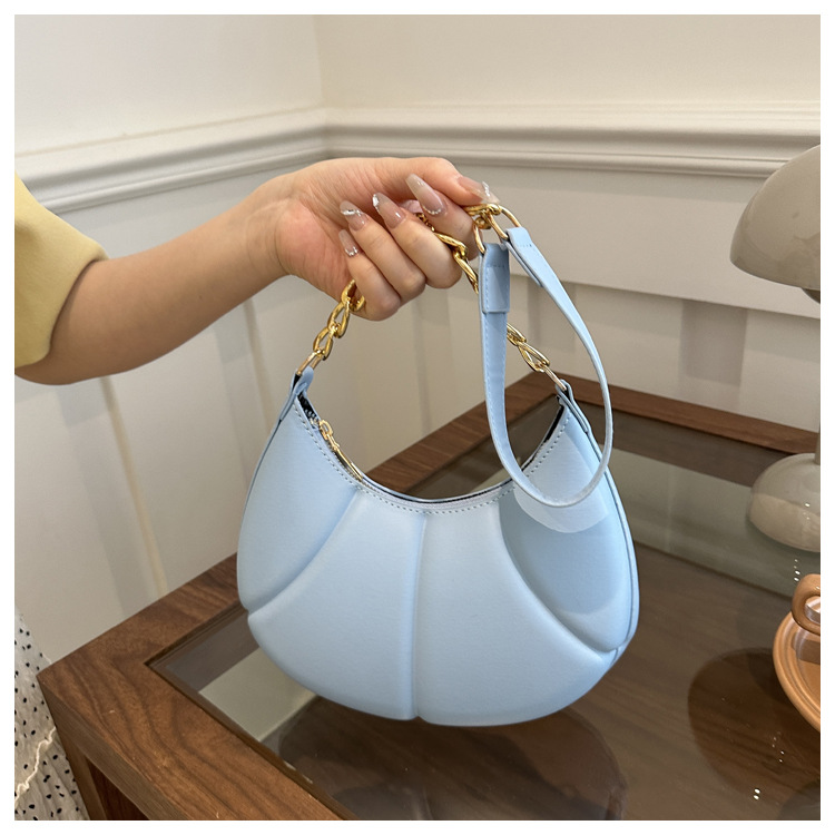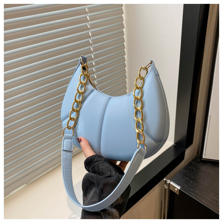 Nueva cadena de estilo extranjero textura portátil brazo bolso de mujer 2024 primavera y verano nuevo hombro estampación de color sólido bolso de brazo casual