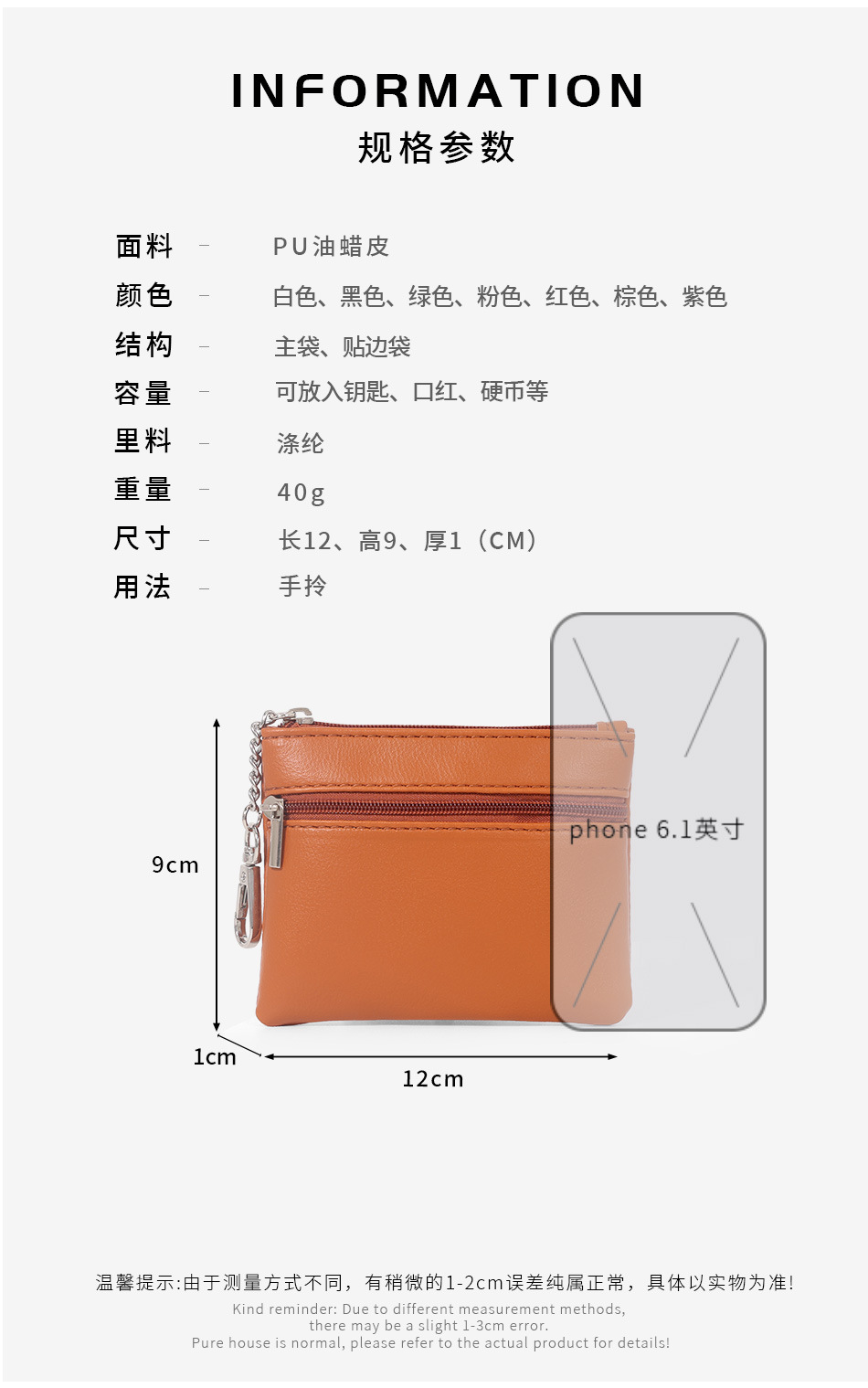 Bolso bolso de cambio bolso de llaves colgante bolso de monedas bolso de llaves bolso de tarjetas bolso de cremallera suave color macaron