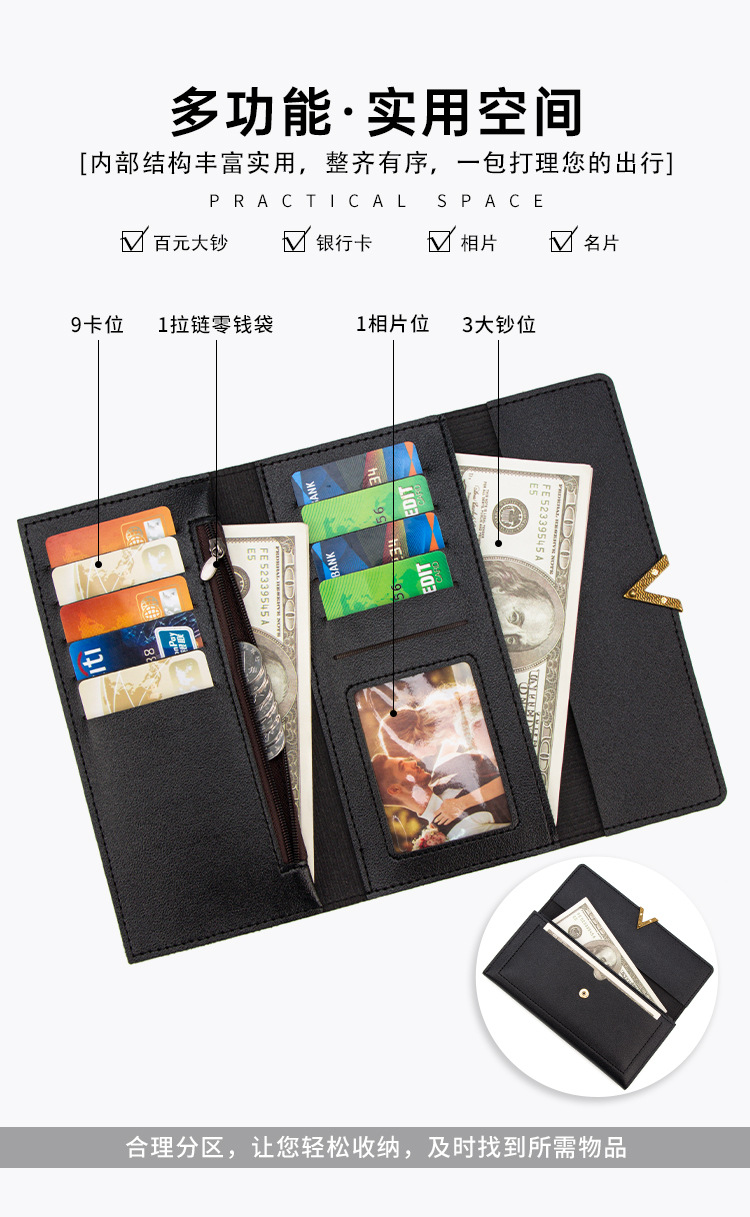 Nueva cartera de las mujeres de moda simple pu larga cartera multi-Tarjeta titular de la tarjeta de embrague al por mayor