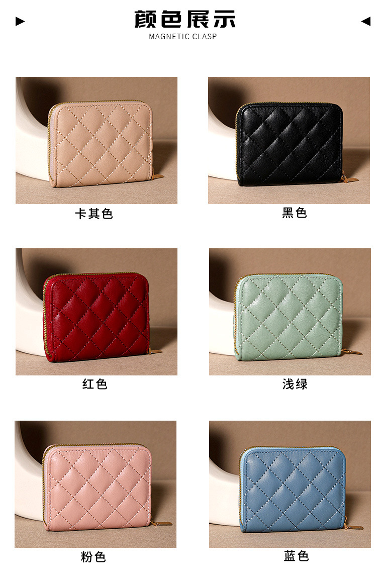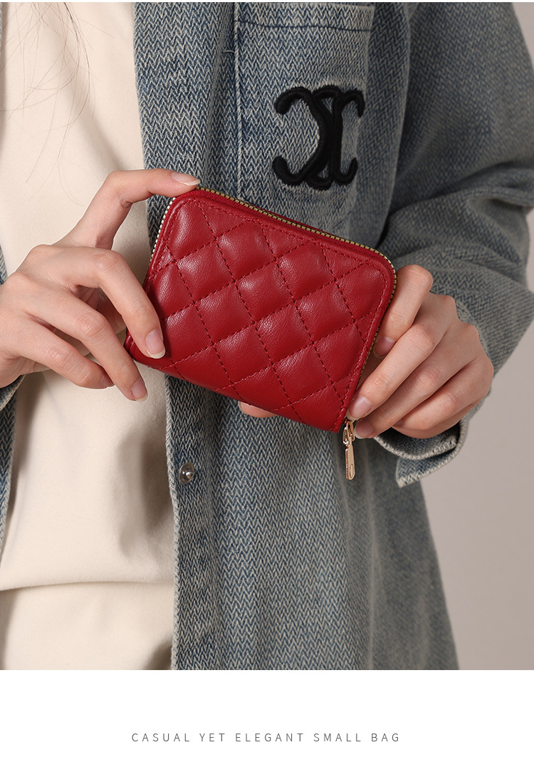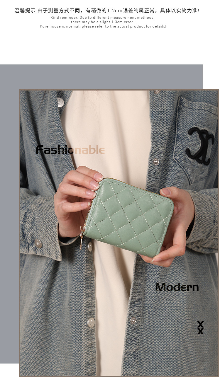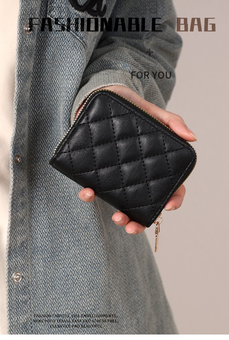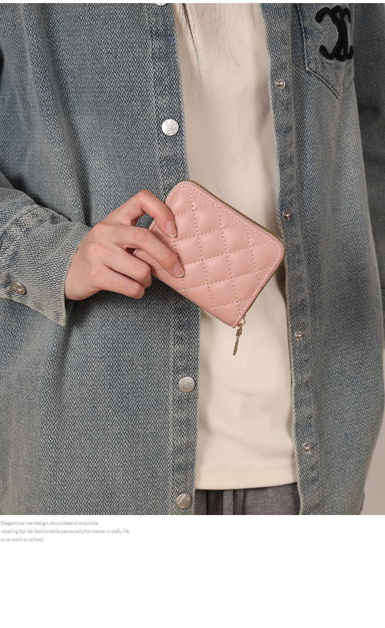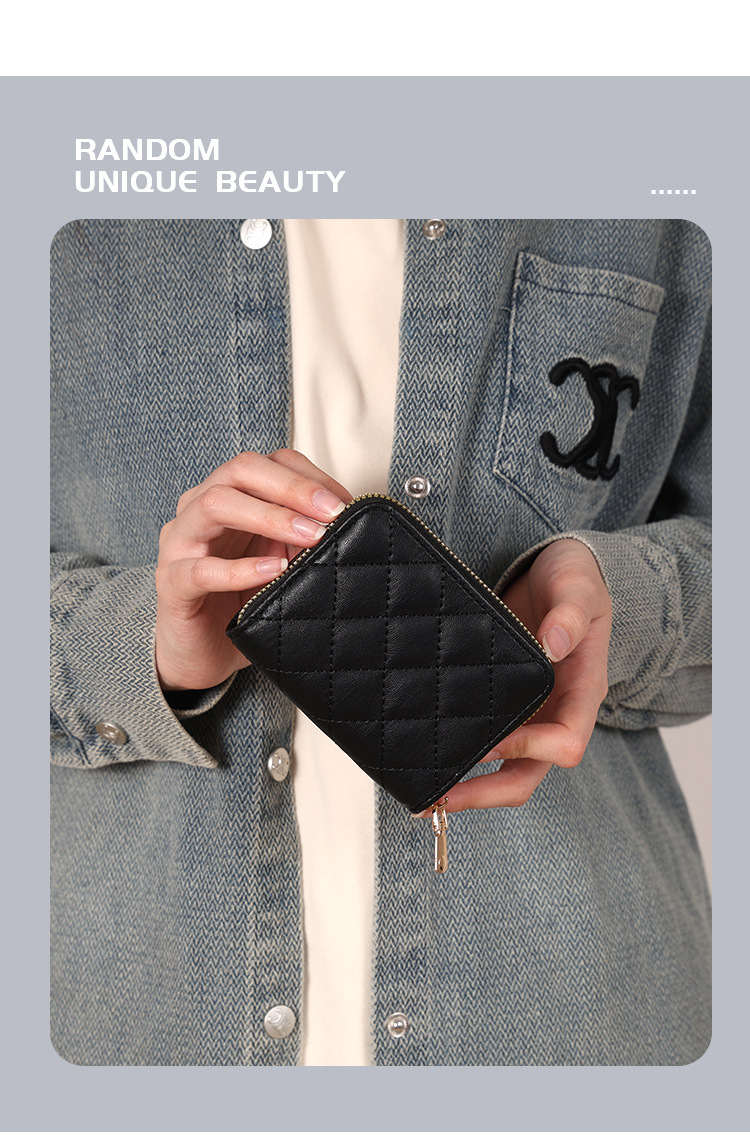 Venta directa de fábrica personalizada, estilo explosivo, moda europea y americana, bolso de tarjeta de rombo corto, monedero con cremallera para mujer, tarjetero de gran capacidad