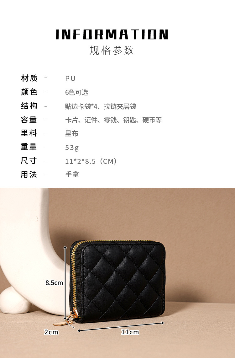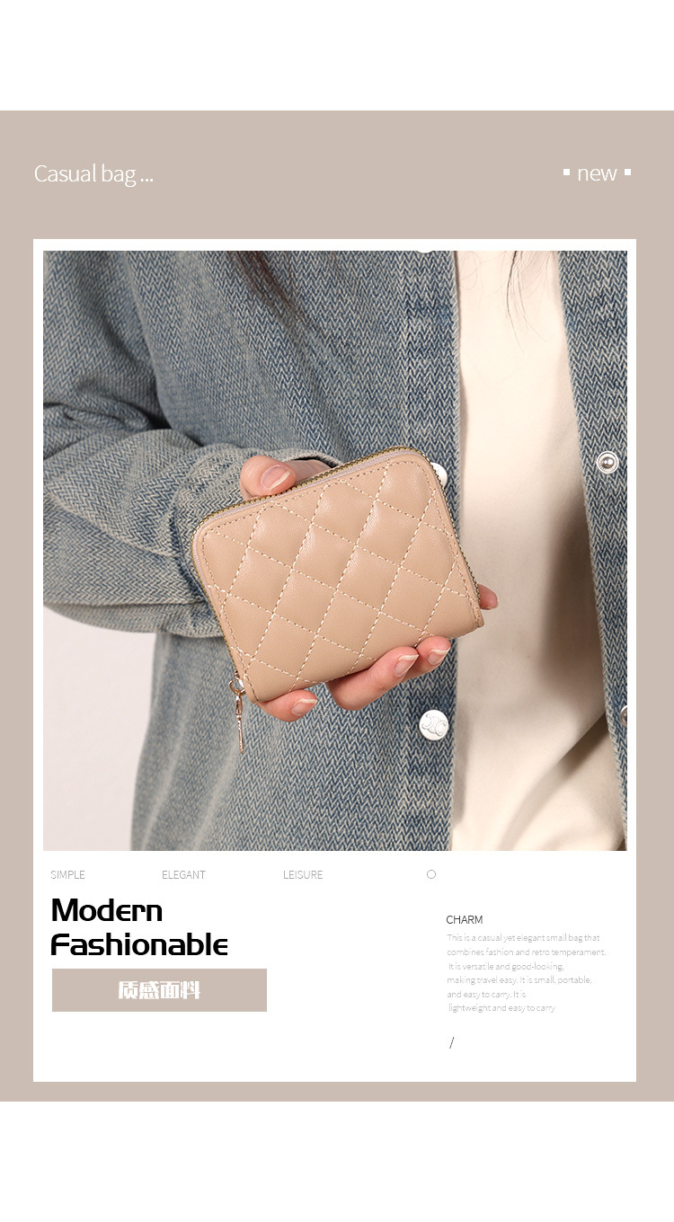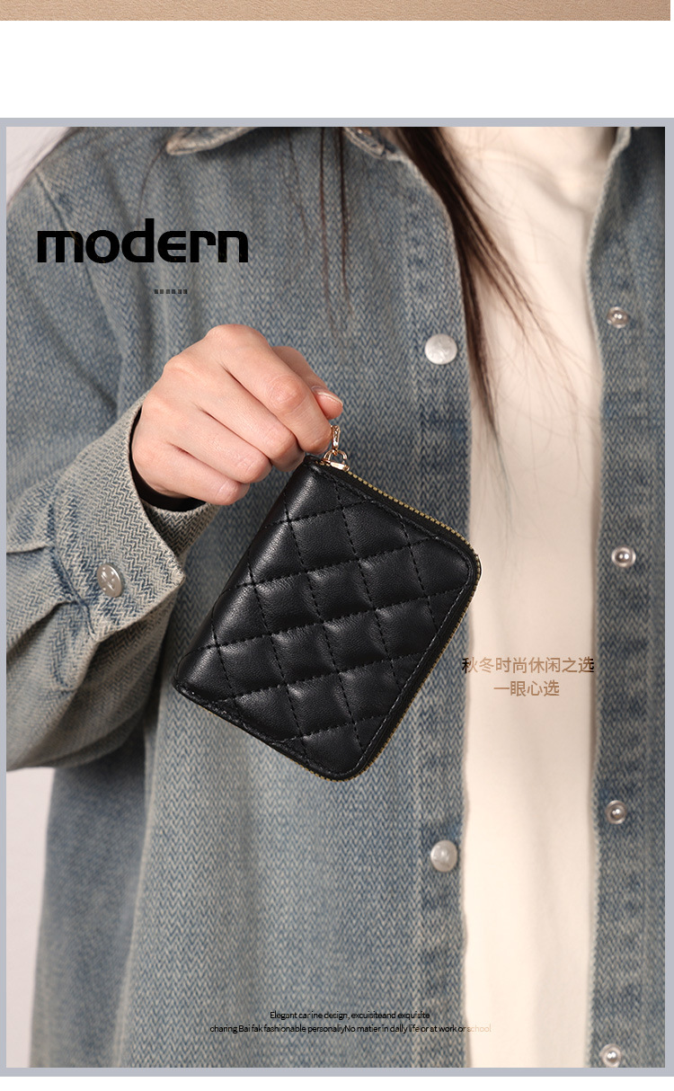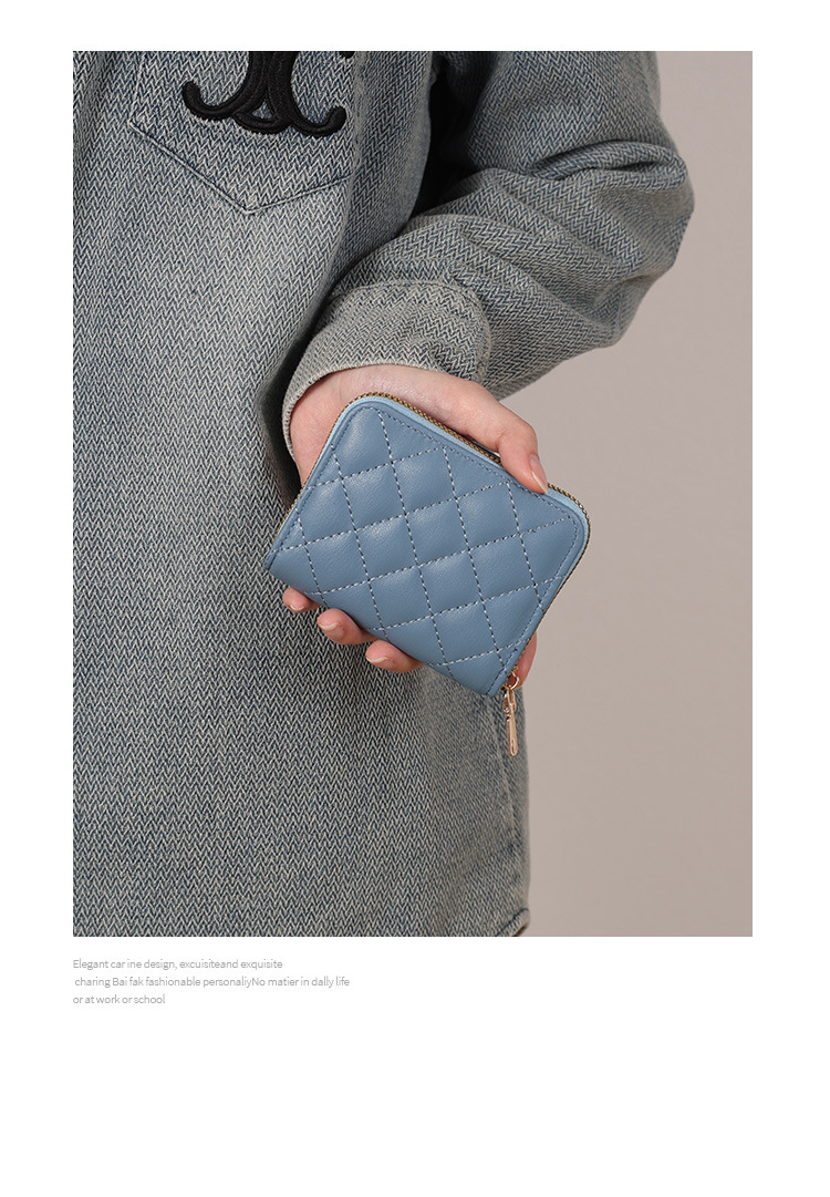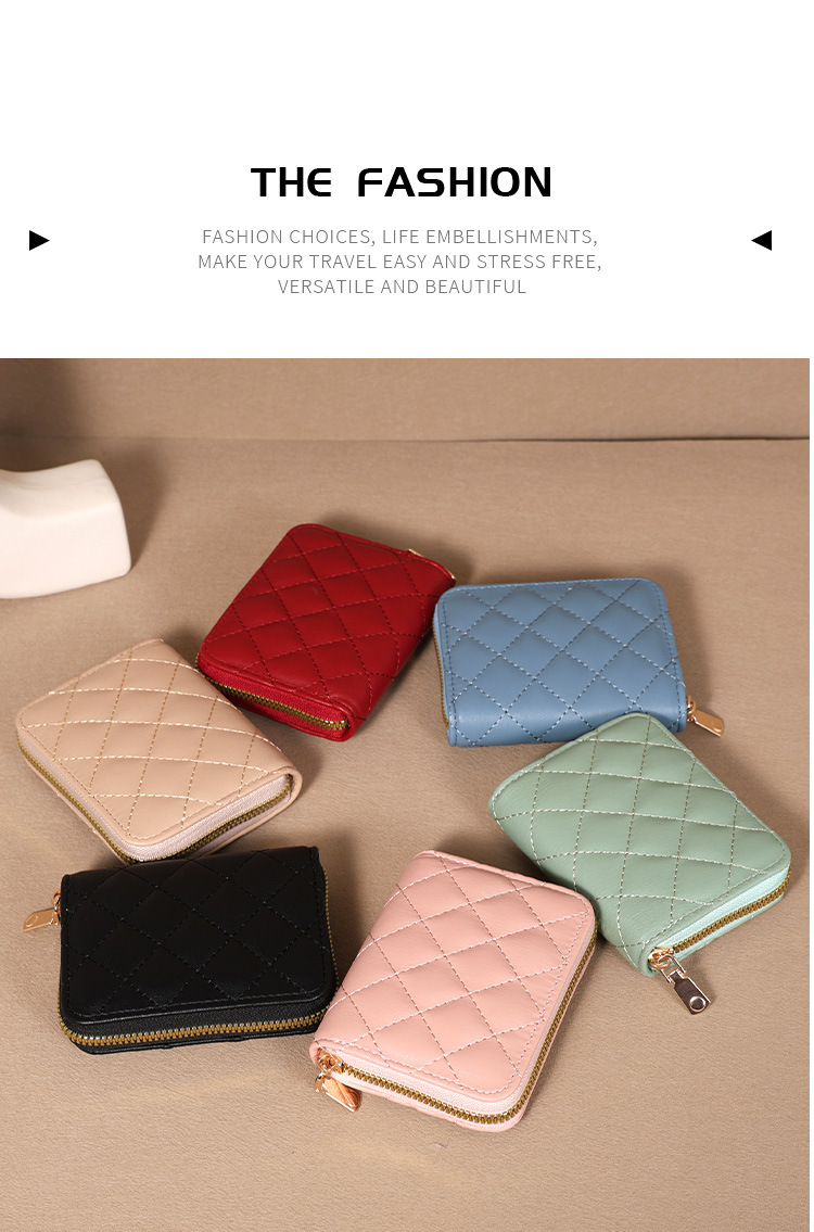 Venta directa de fábrica personalizada, estilo explosivo, moda europea y americana, bolso de tarjeta de rombo corto, monedero con cremallera para mujer, tarjetero de gran capacidad