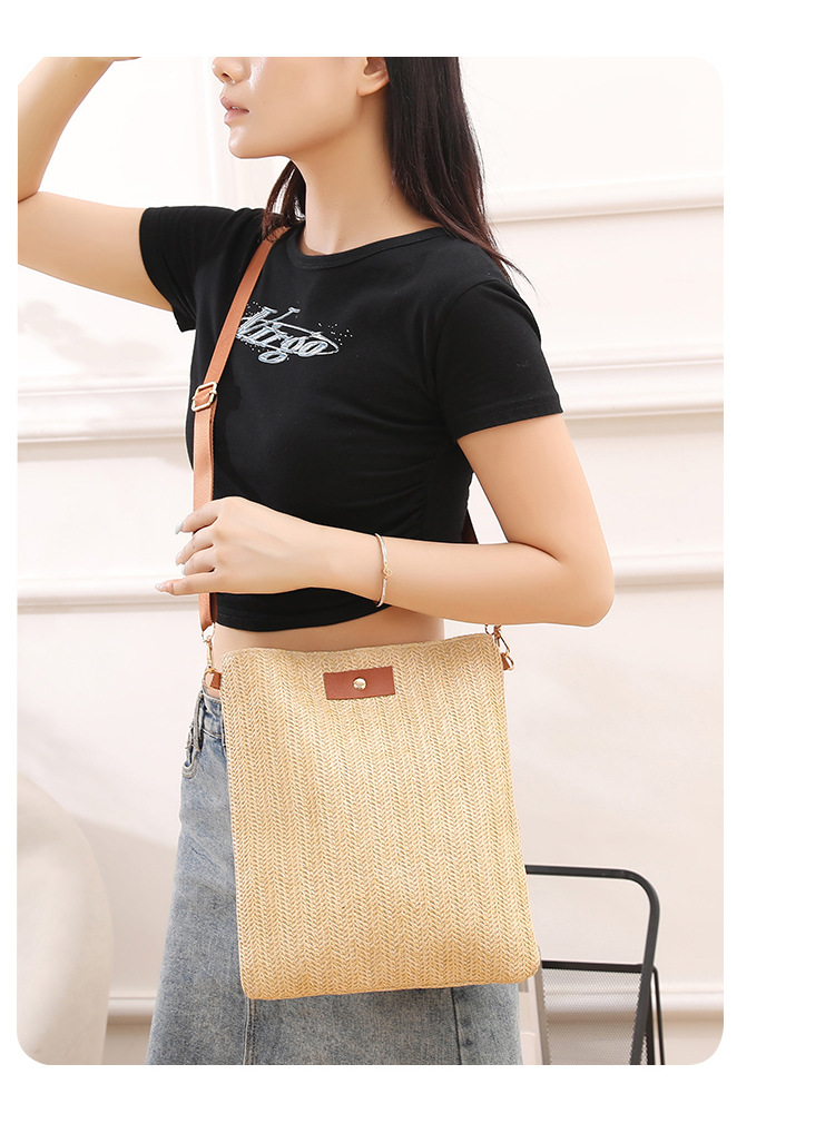 Bolsa de mujer en stock, bolsa de paja transfronteriza, bolsa de hombro, bolsa de balde, bolsa de playa, bolsa de tote, correa de hombro ancha ajustable, estilo de vacaciones portátil