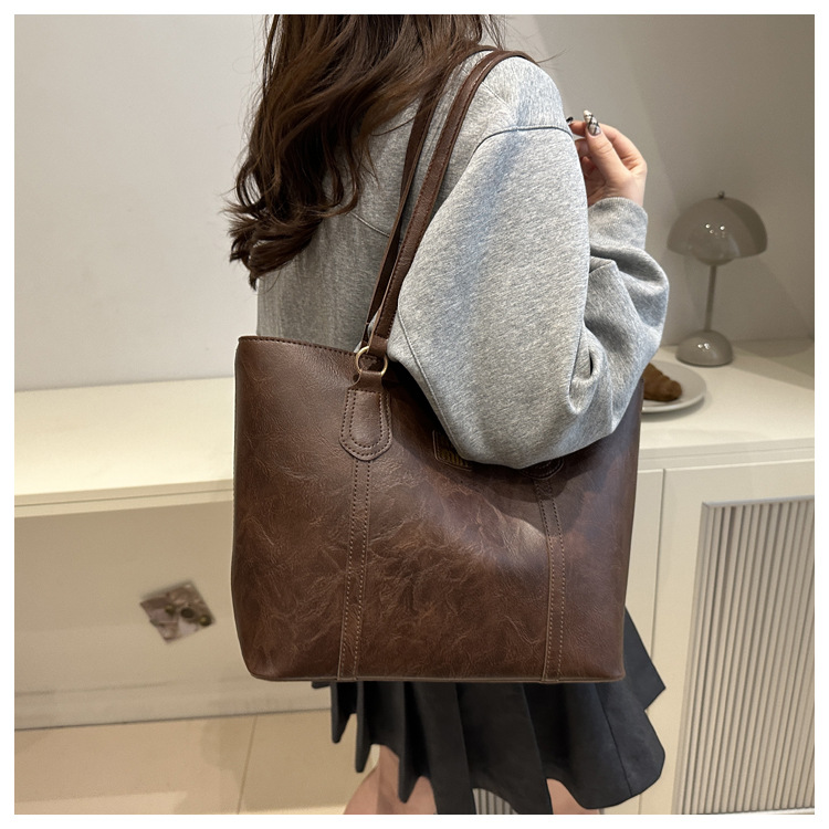 Pu bolsa de aire de gran capacidad para mujeres otoño y invierno 2025, nueva bolsa de hombro de moda, nicho, bolsa de viaje retro, moda