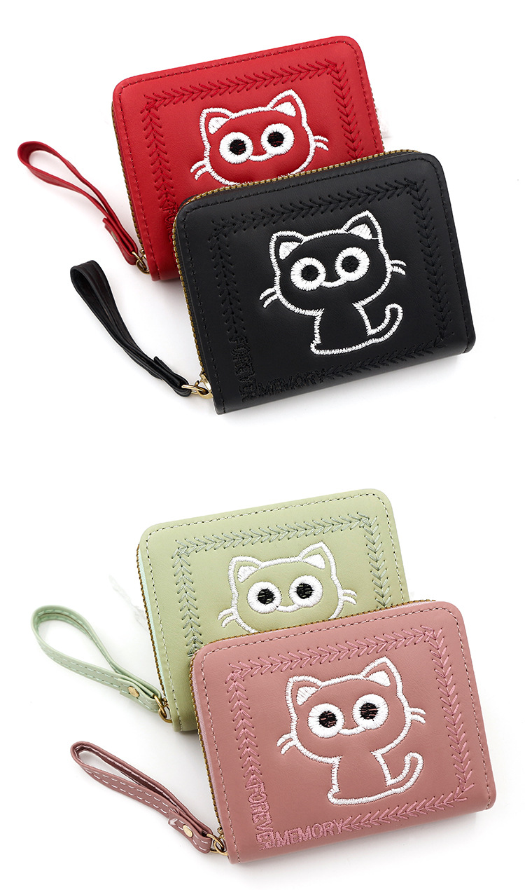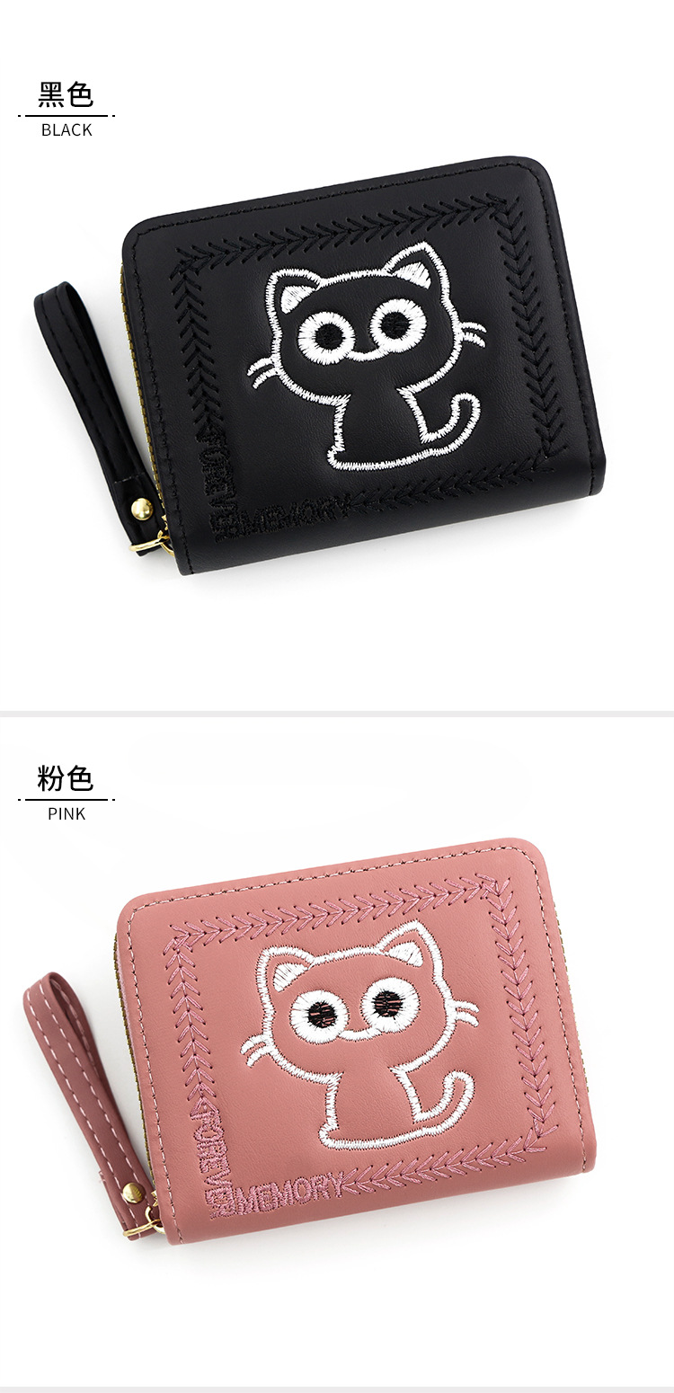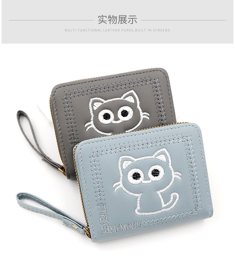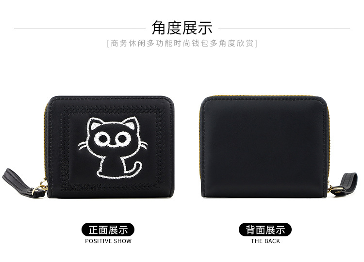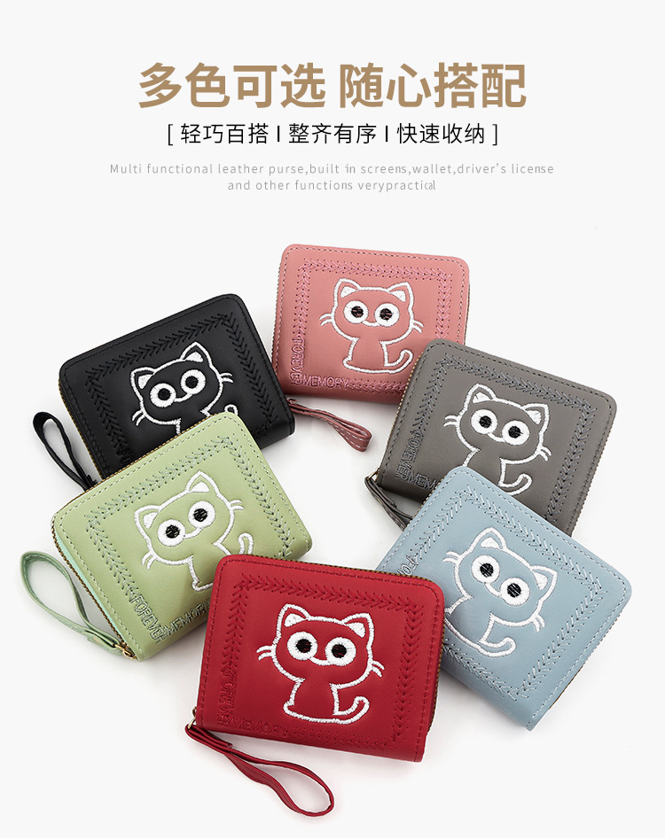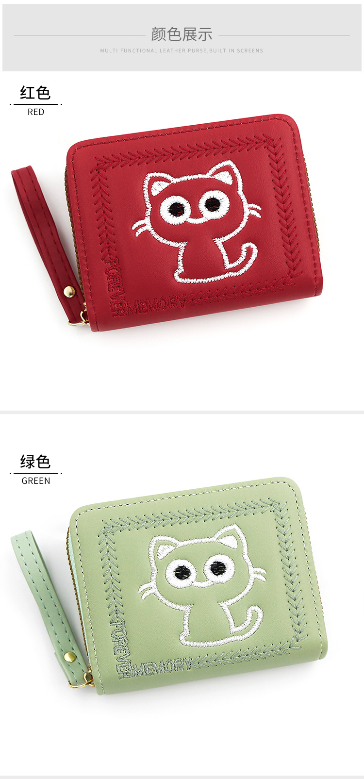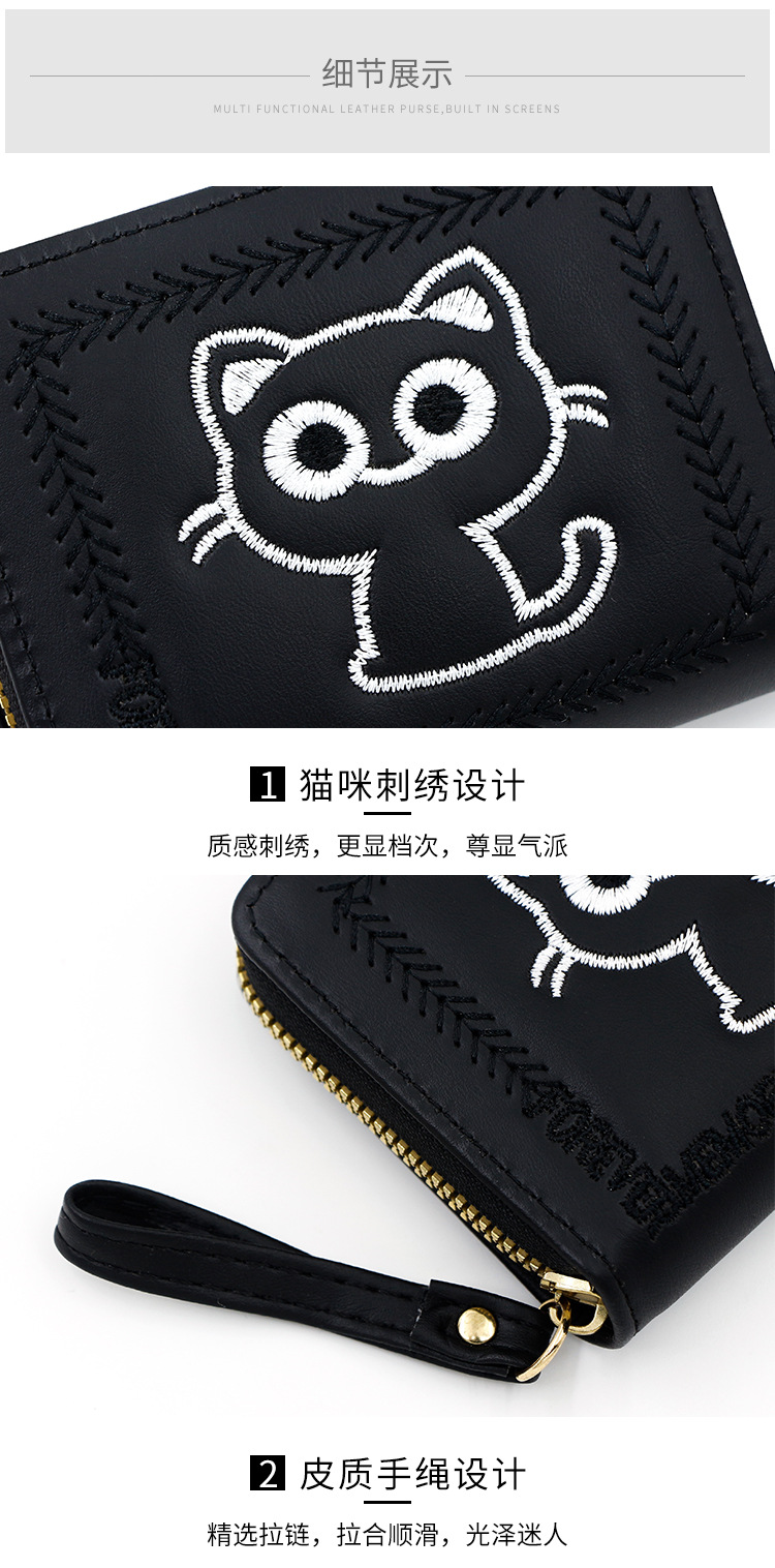 Nuevo bordado gatito damas cartera corta multi-tarjeta billetera de cambio con cremallera cartera de tarjetas de mano al por mayor