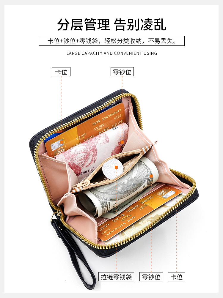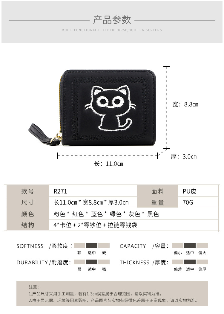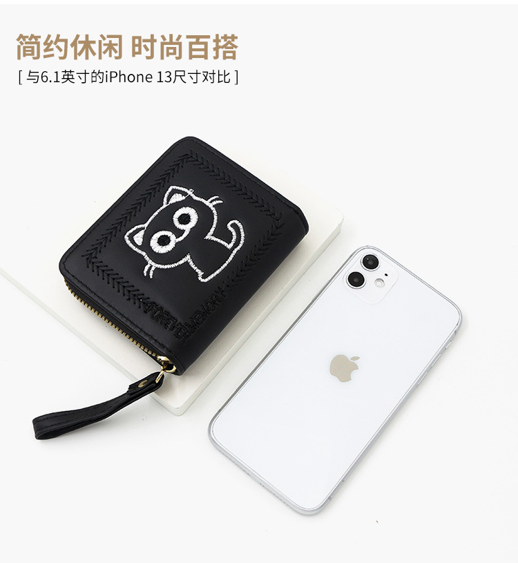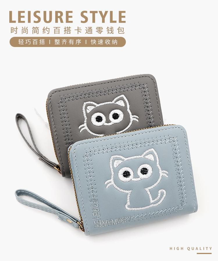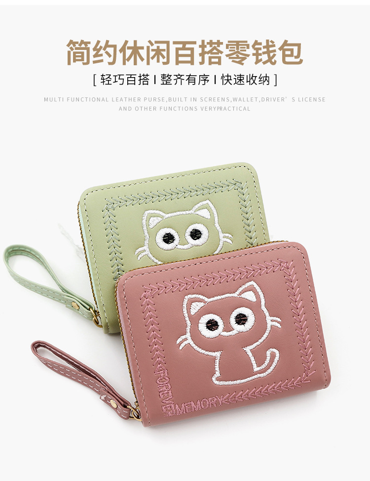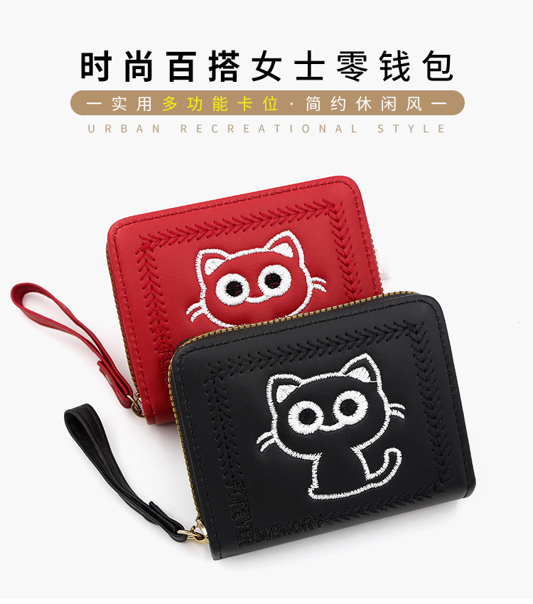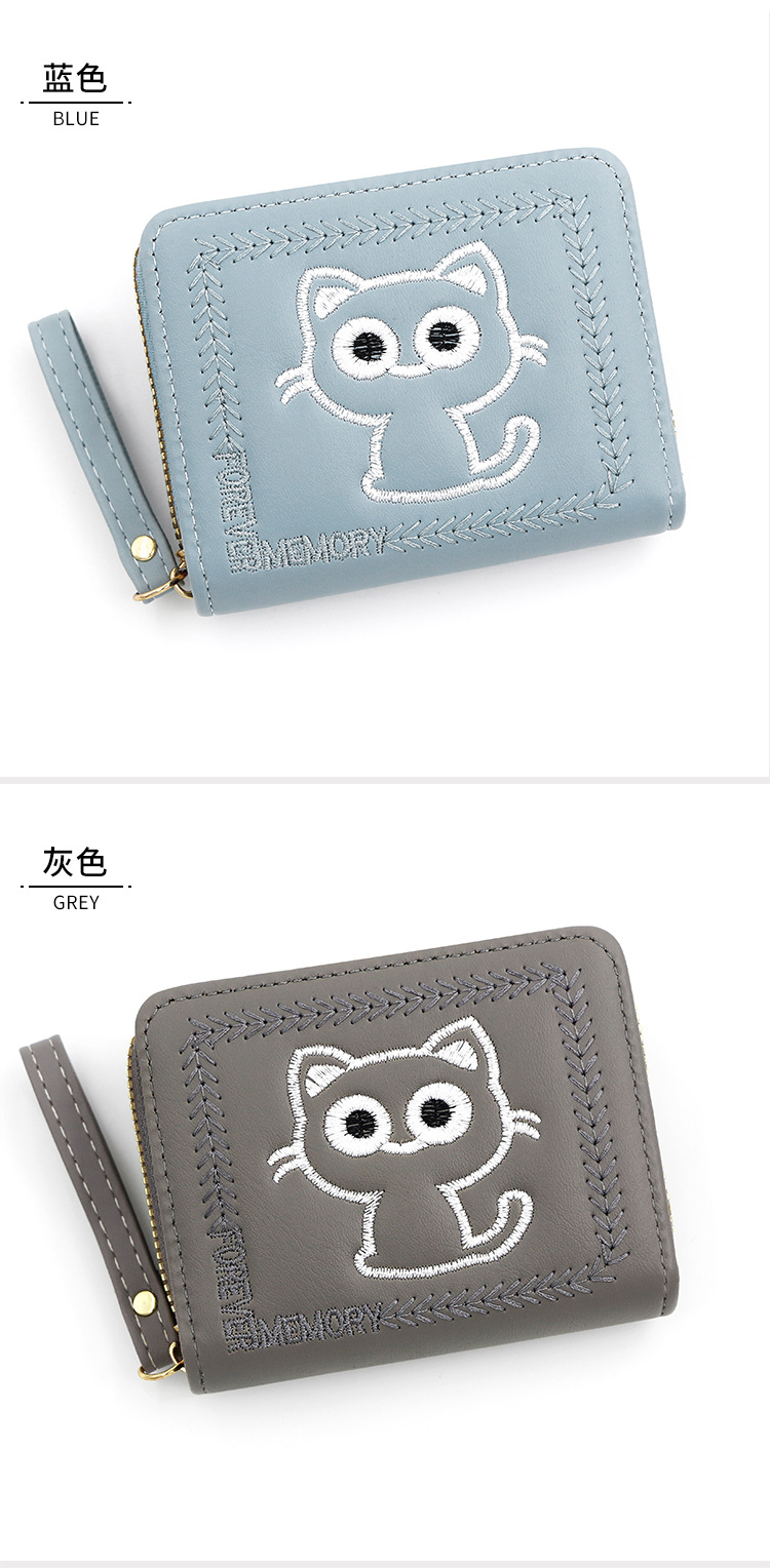 Nuevo bordado gatito damas cartera corta multi-tarjeta billetera de cambio con cremallera cartera de tarjetas de mano al por mayor