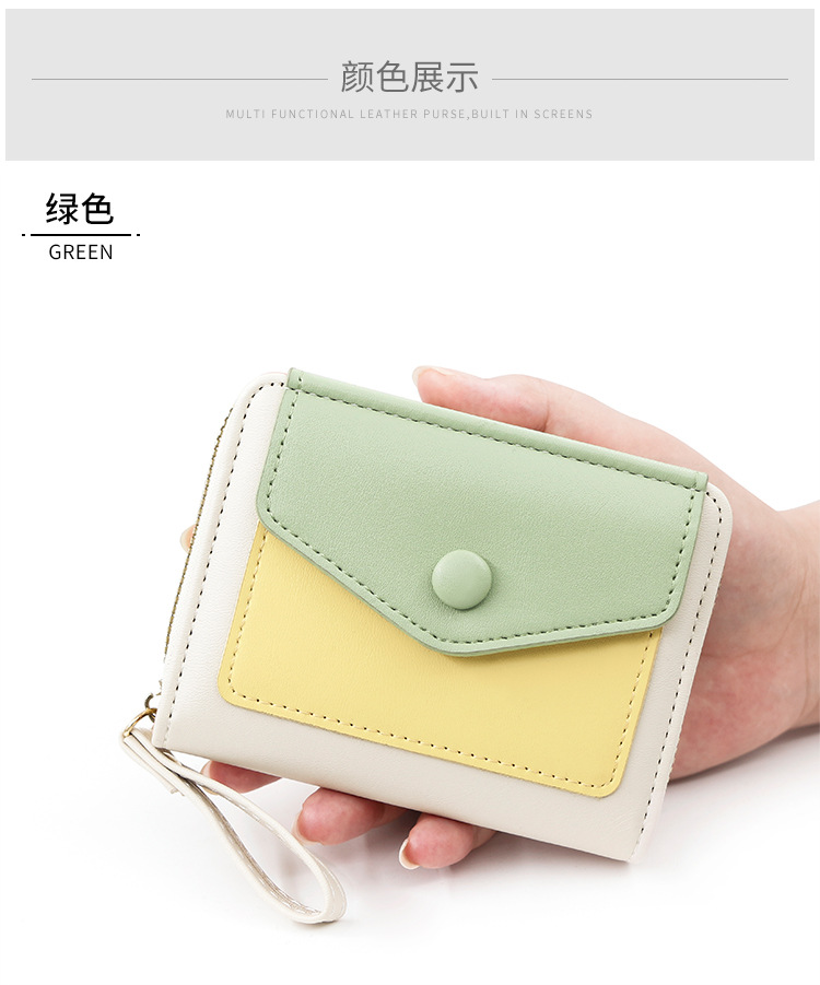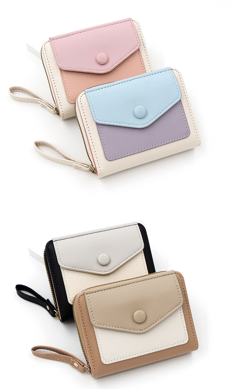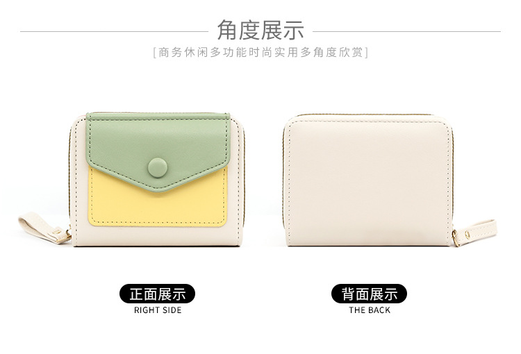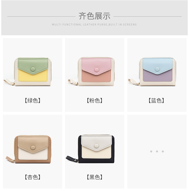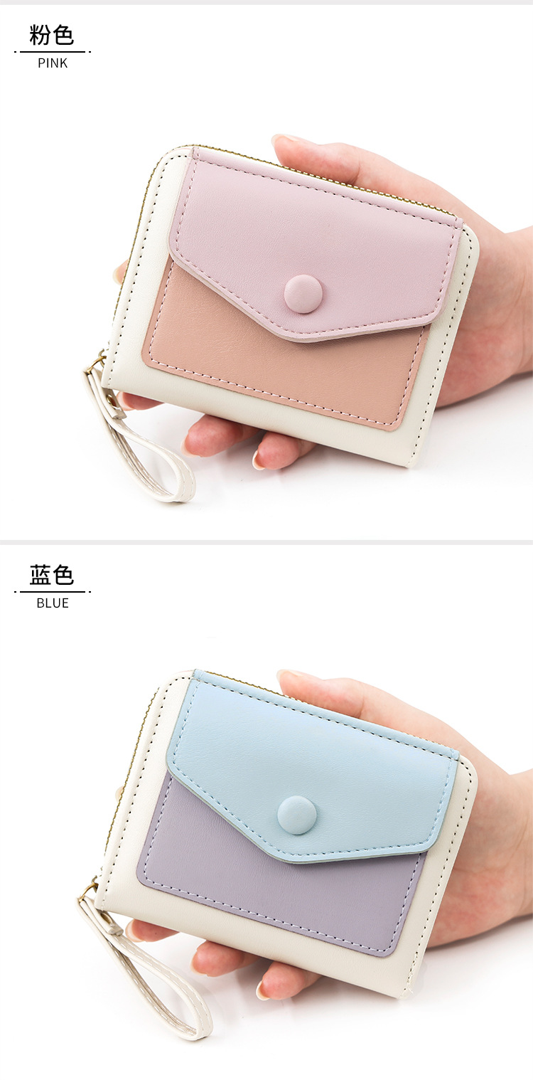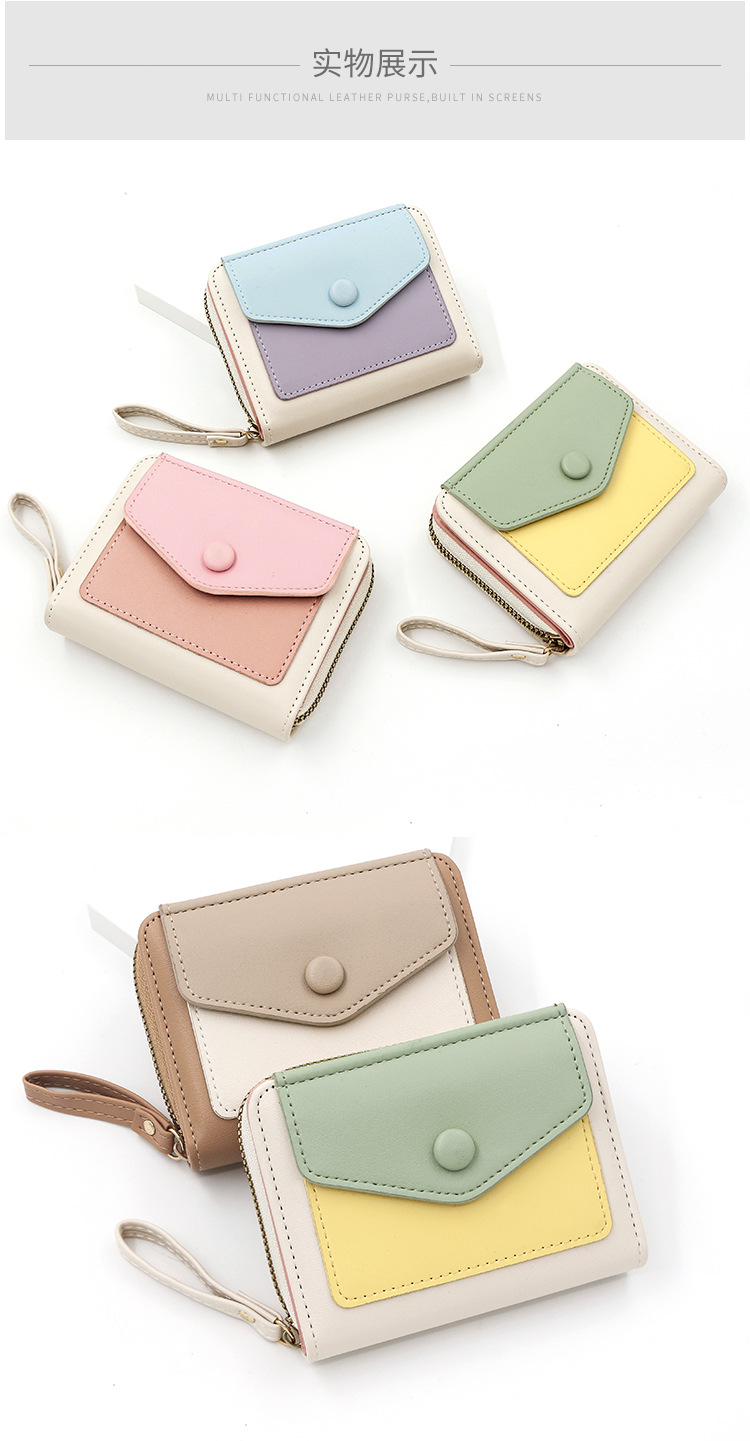 Cartera corta de mujer fresca y simple pu color contrapeso bolsa de tarjetas de órgano macarón bolsa de mano bolsa de cambio bolsa de cremallera