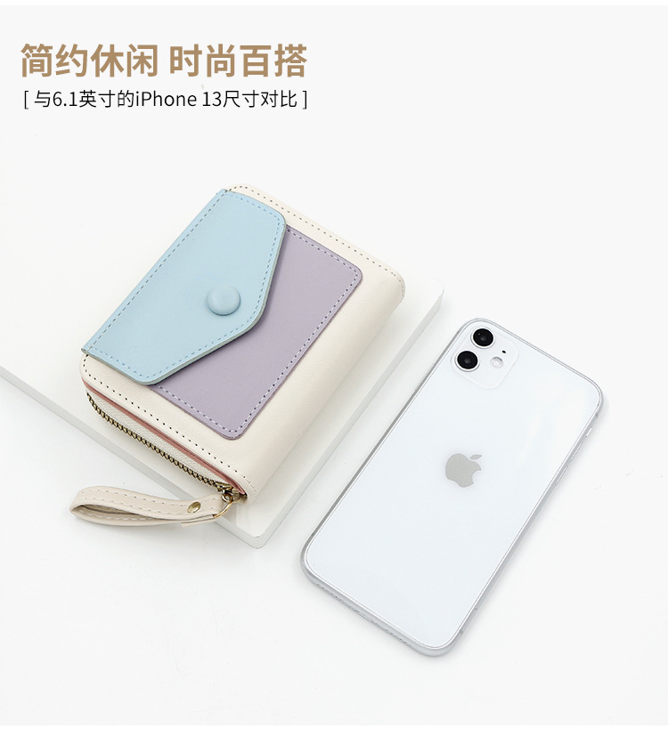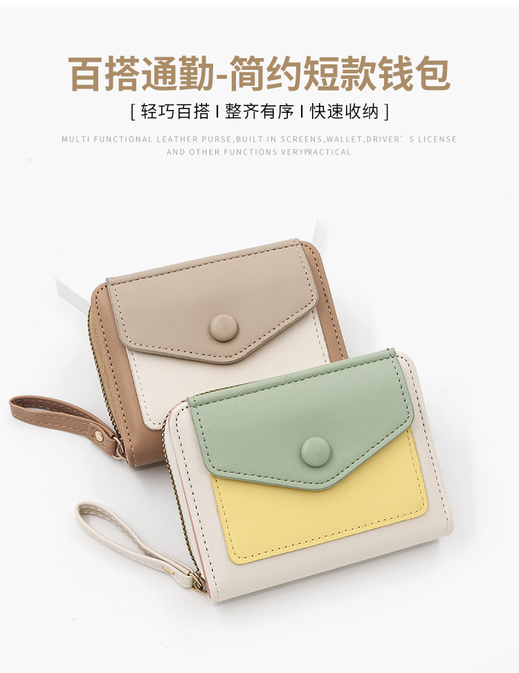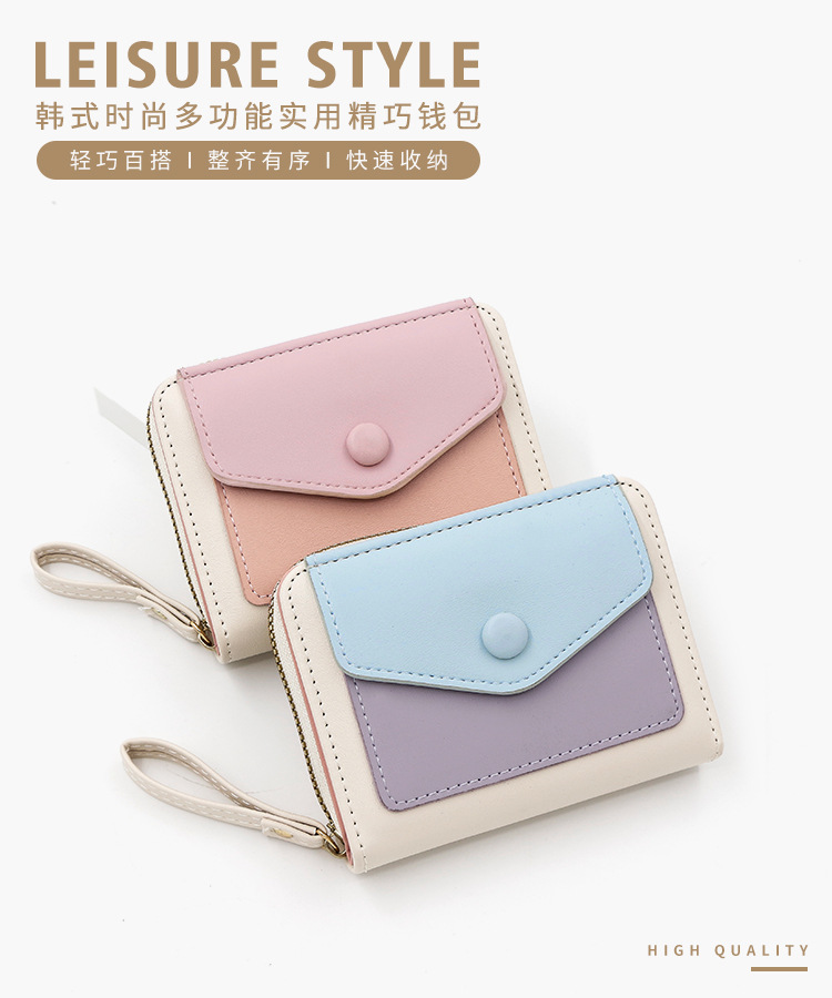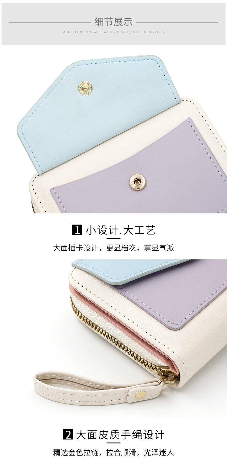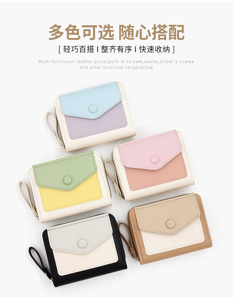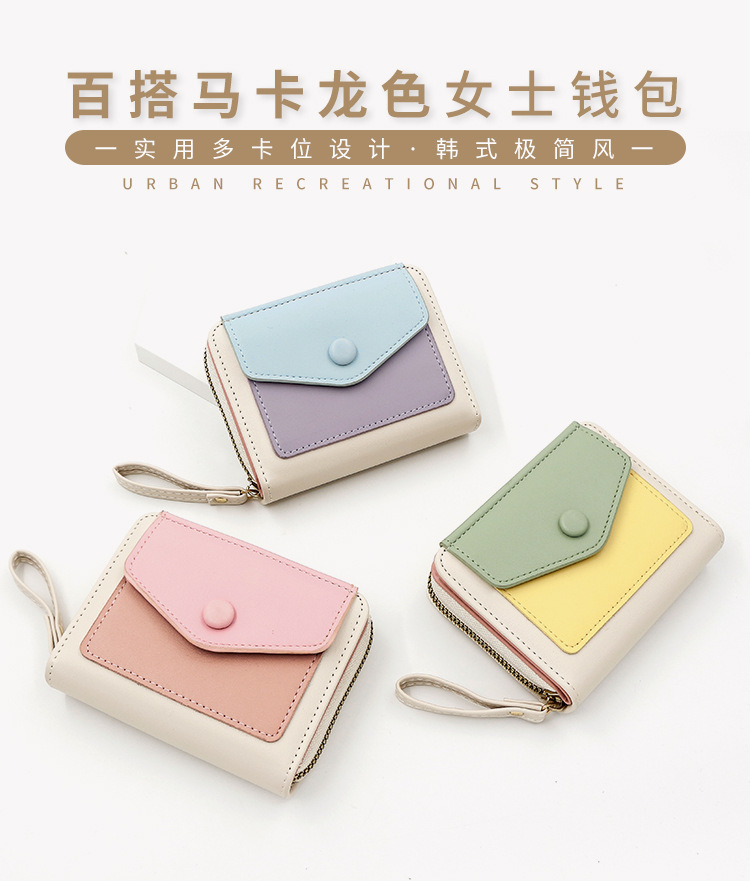 Cartera corta de mujer fresca y simple pu color contrapeso bolsa de tarjetas de órgano macarón bolsa de mano bolsa de cambio bolsa de cremallera