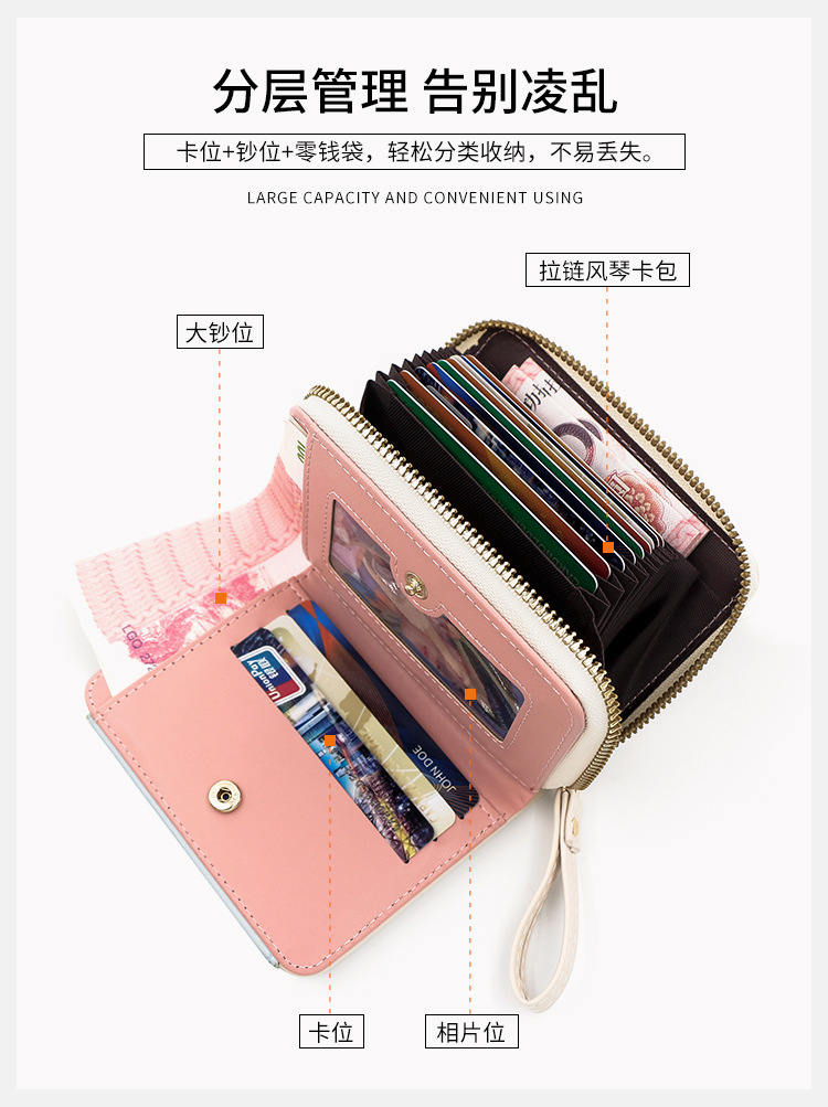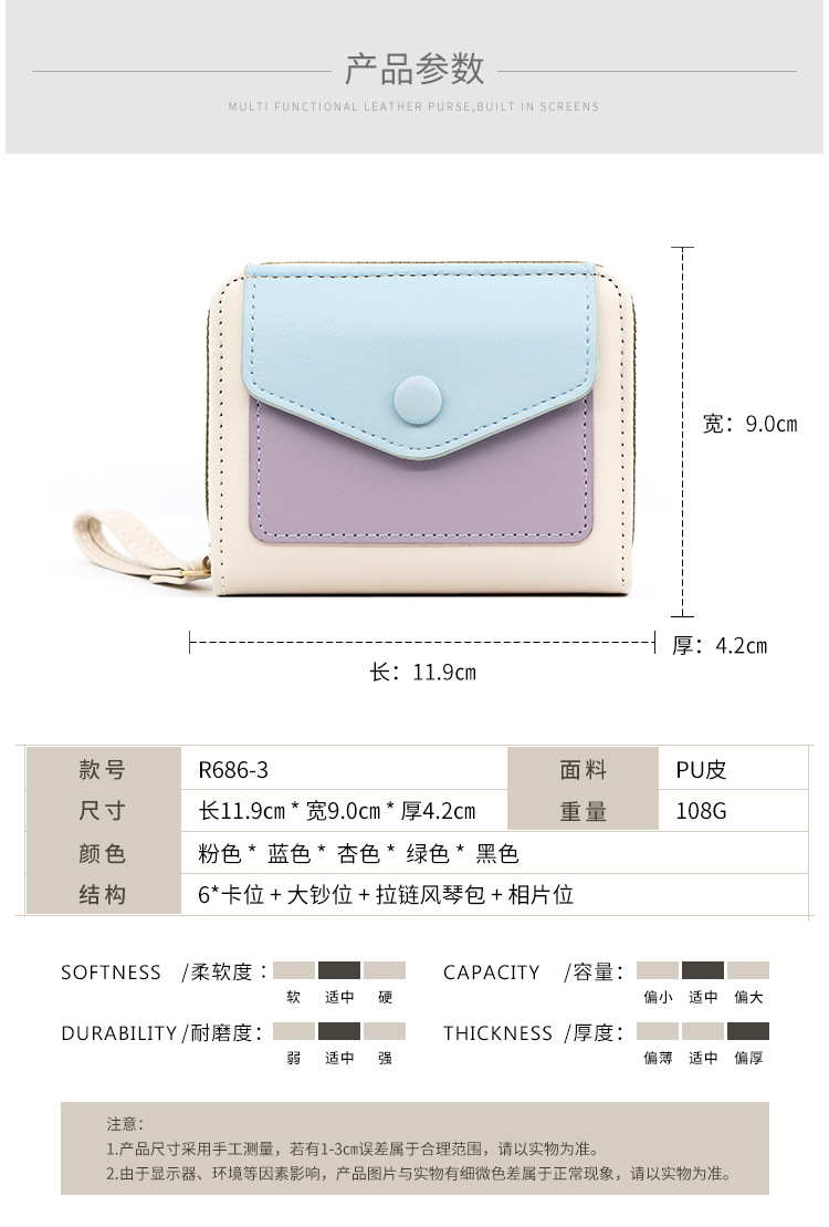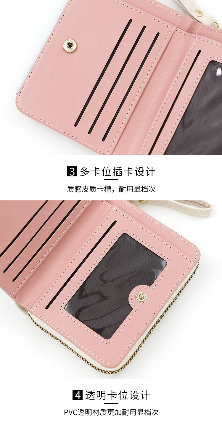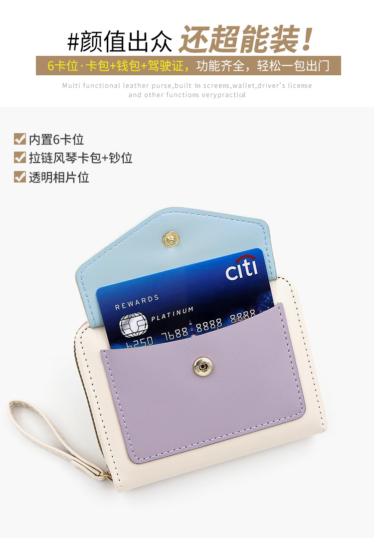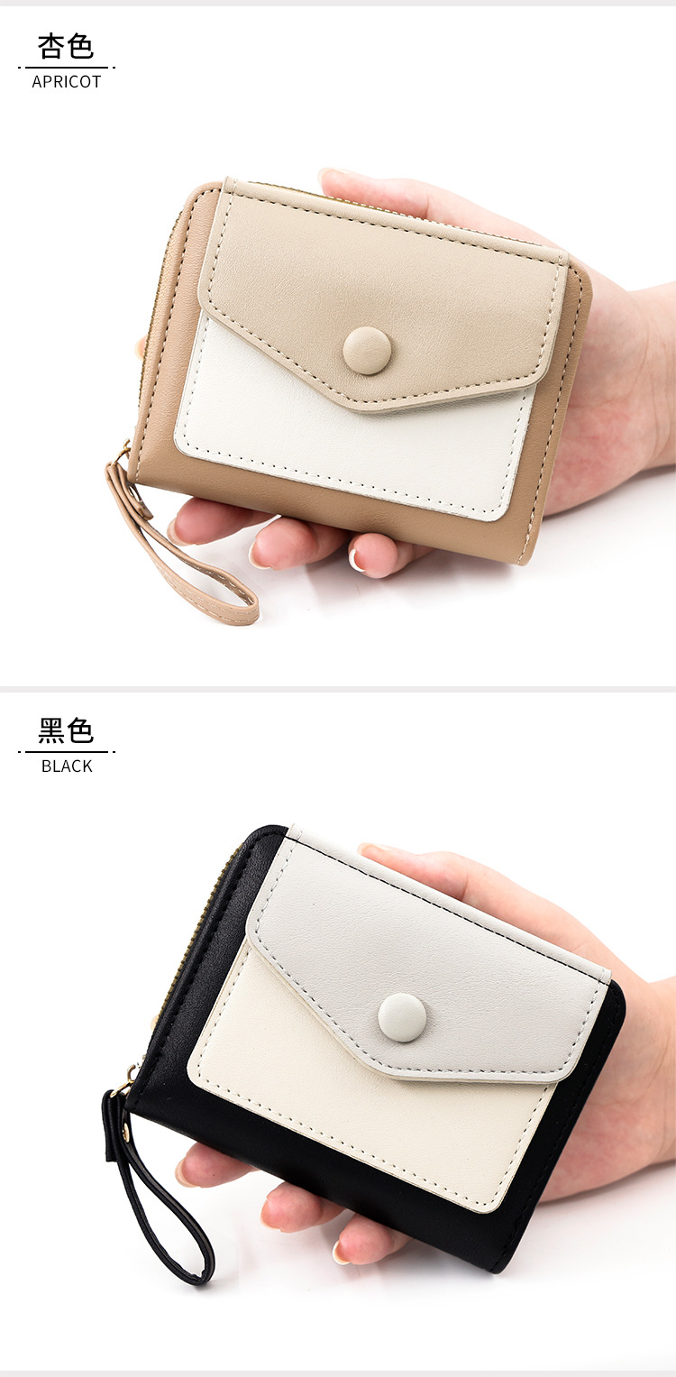 Cartera corta de mujer fresca y simple pu color contrapeso bolsa de tarjetas de órgano macarón bolsa de mano bolsa de cambio bolsa de cremallera
