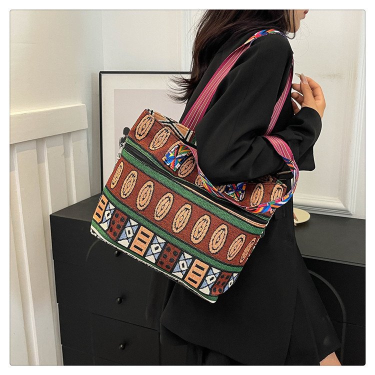 Nuevas bolsas transfronterizas, bolsas de mano de mujer, bolsas de tela de gran capacidad, bolsas de hombro de otoño 2024 nuevas bolsas de estilo nacional