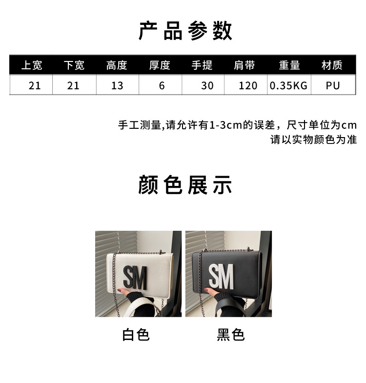 Bolso de moda moda de estilo 2025 primavera y verano nueva moda personalidad simple letras bolso de hombro de cadena casual