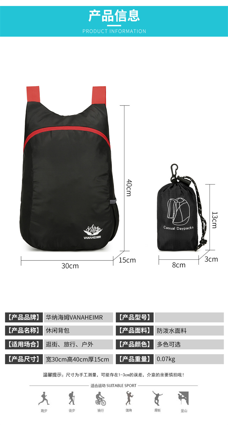 Nueva mochila plegable bolsa de viaje bolsa de deporte al aire libre de gran capacidad para hombres y mujeres mochila impermeable portátil ligero