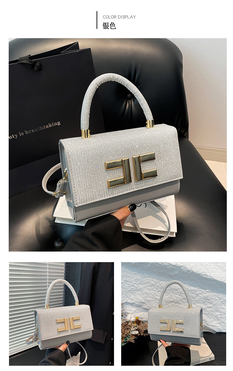 Bolso femenino 2024 nuevo otoño e invierno bolso de axila de un solo hombro de diamantes brillantes Bolso bandolera europeo y americano Bolso cuadrado pequeño literario de moda