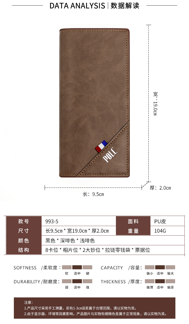 Nueva transfronteriza de Los Hombres de la cartera urbana simple 3 veces de color sólido larga cartera de los hombres billetera titular de la tarjeta billetera al por mayor