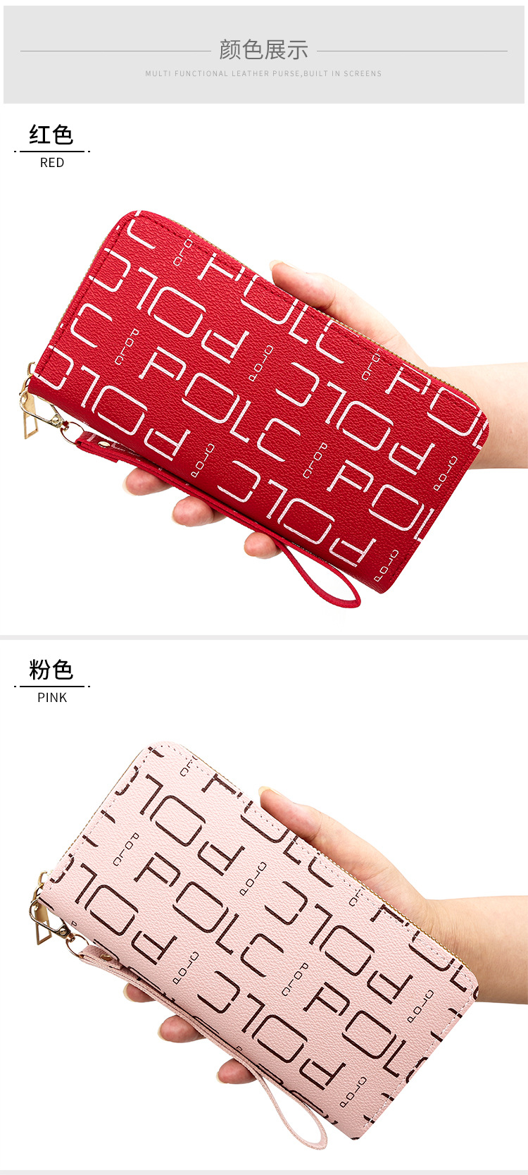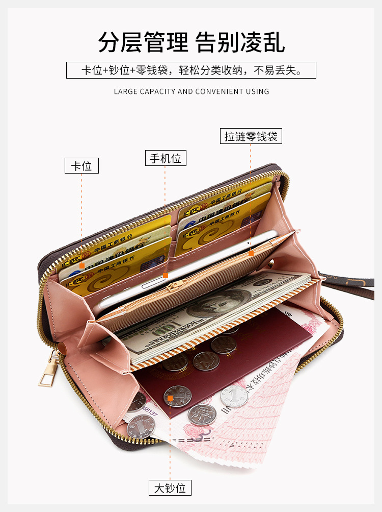 Nueva billetera para mujer, impresión de tendencia, billetera larga para mujer, monedero, embrague, billetera de gran capacidad de cuero de pu