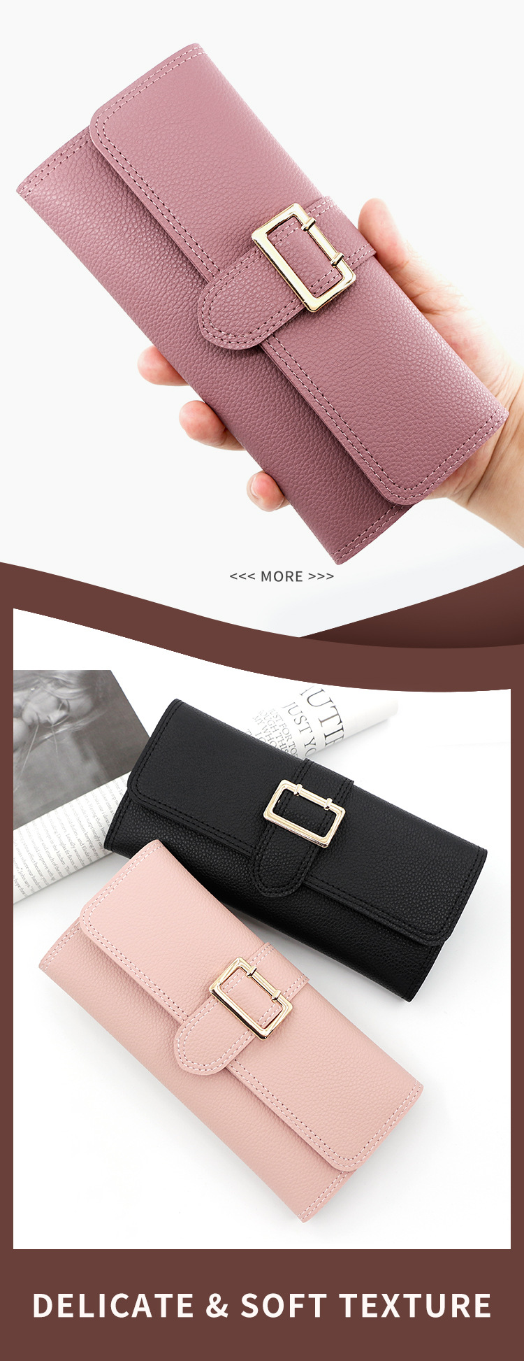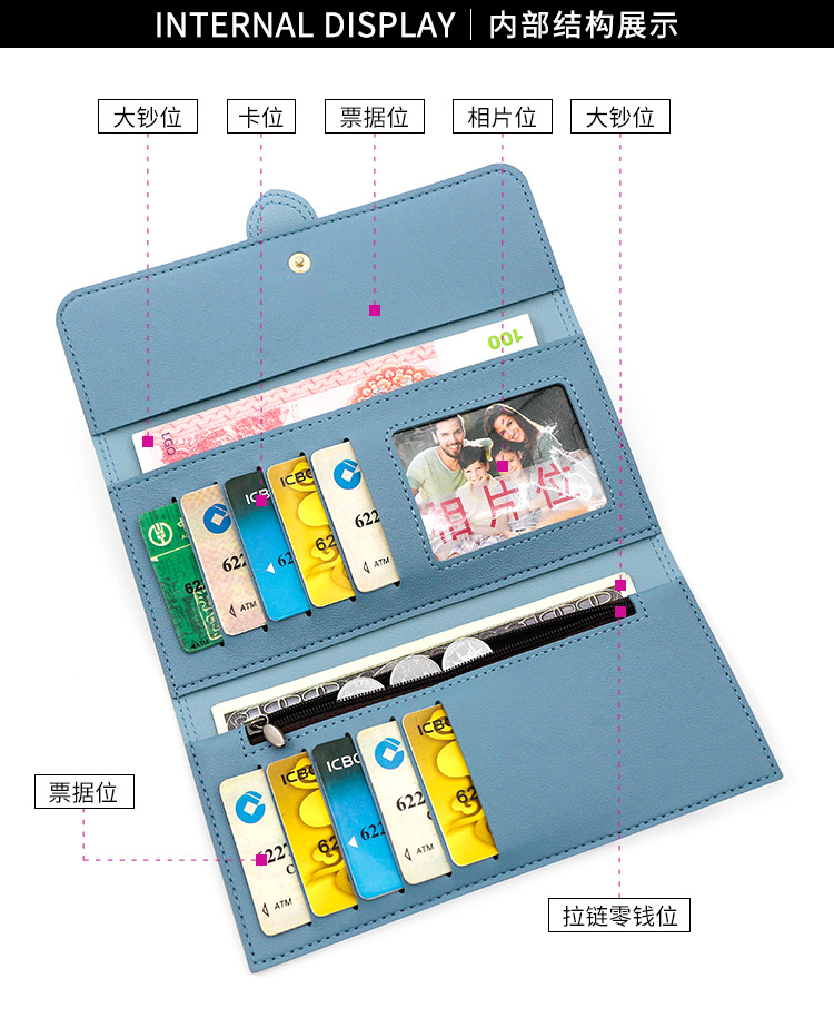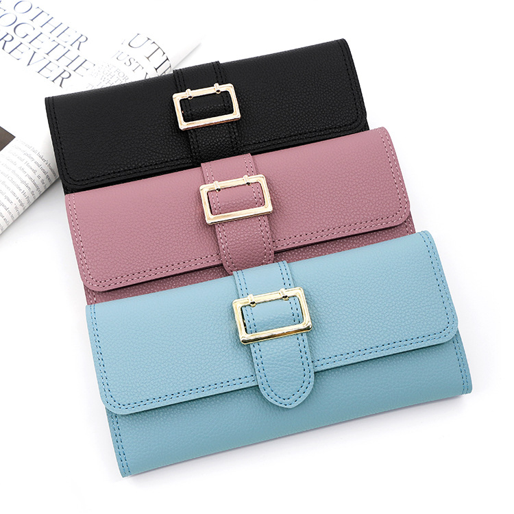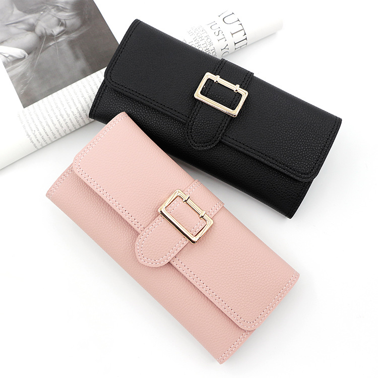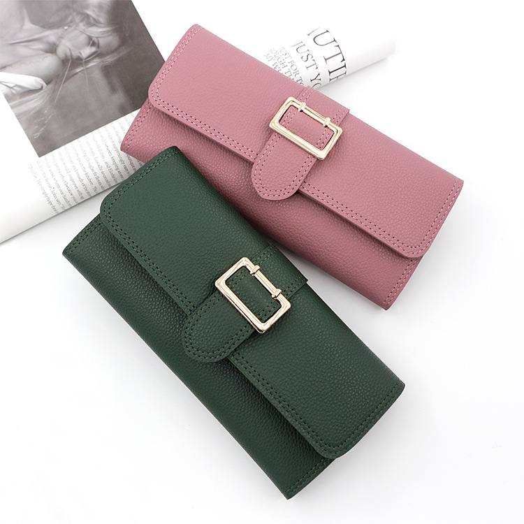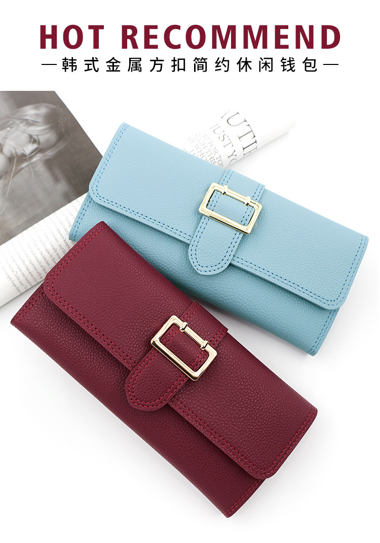 Nueva cartera larga de las mujeres simple fresco pu tríptico bolsa monedero multi-Tarjeta titular embrague al por mayor
