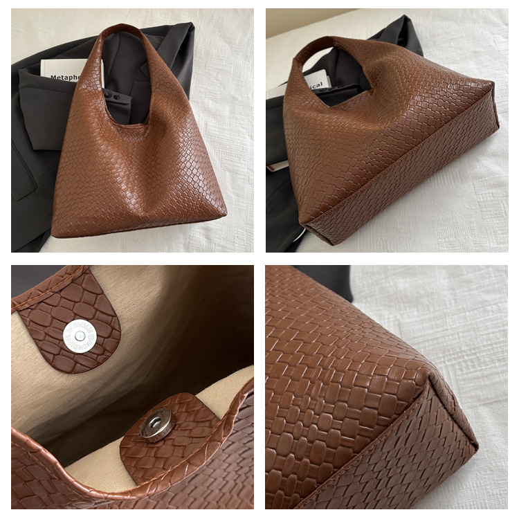 Casual diseño de gran capacidad de estilo extranjero bolso de hombro 2025 moda trenzado bolso de viaje simple retro bolso de brazo