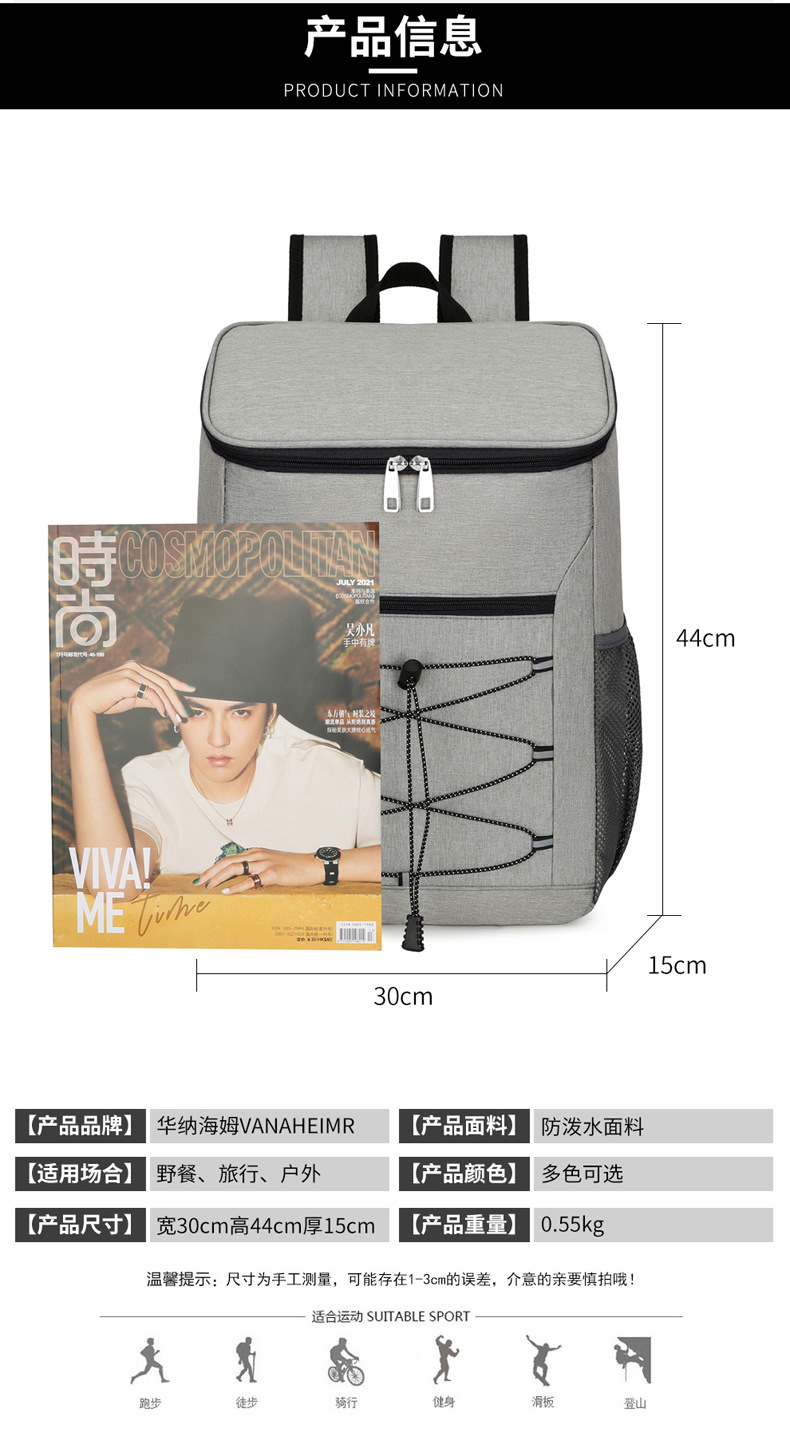 Mochila transfronteriza Bolsa de aislamiento de gran capacidad simple Bolsa de agua de picnic al aire libre Bolsa de bolsa de aislamiento de mochila grande