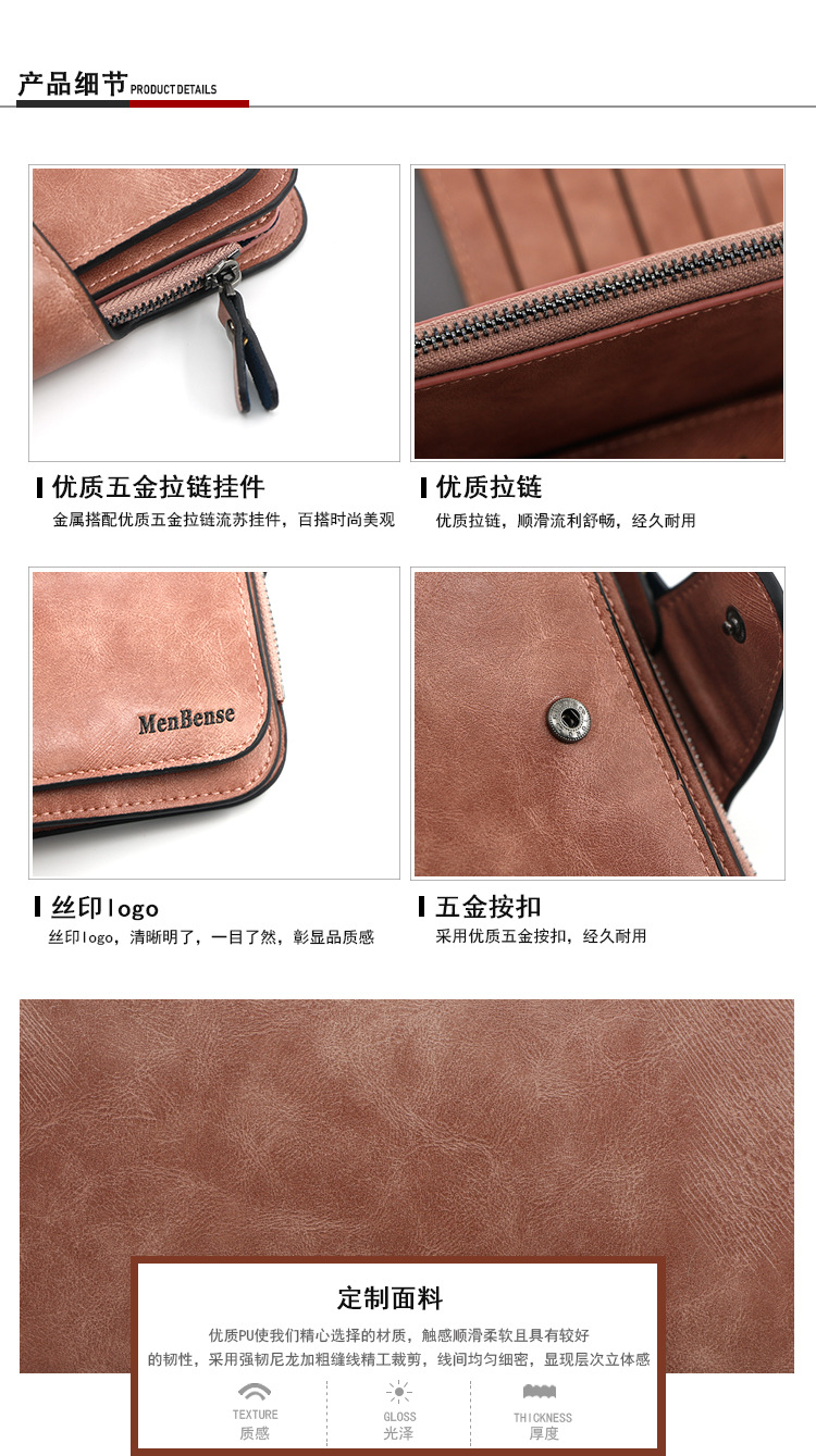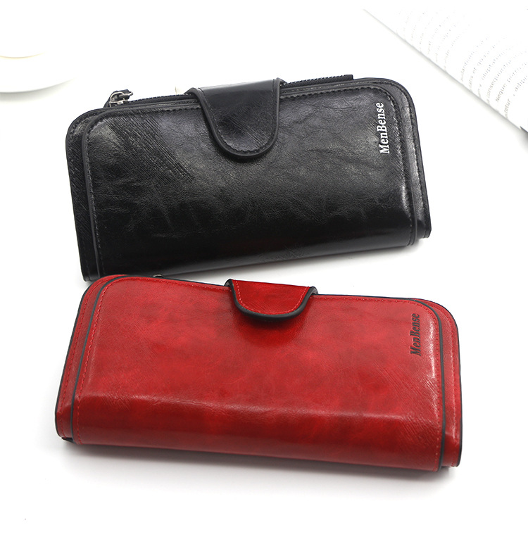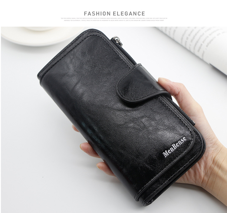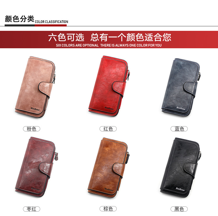 Cartera de nuevo estilo, billetera larga para mujer de moda, billetera, monedero de color sólido de cuero de cera de aceite simple, embrague al por mayor