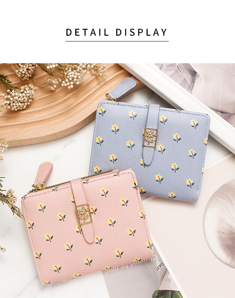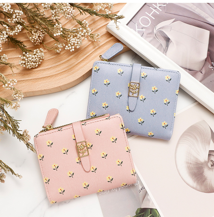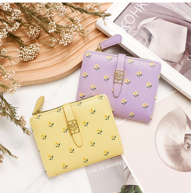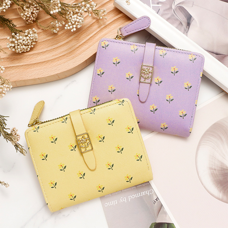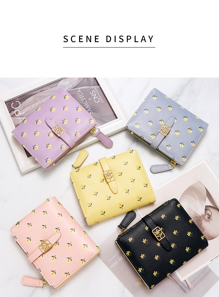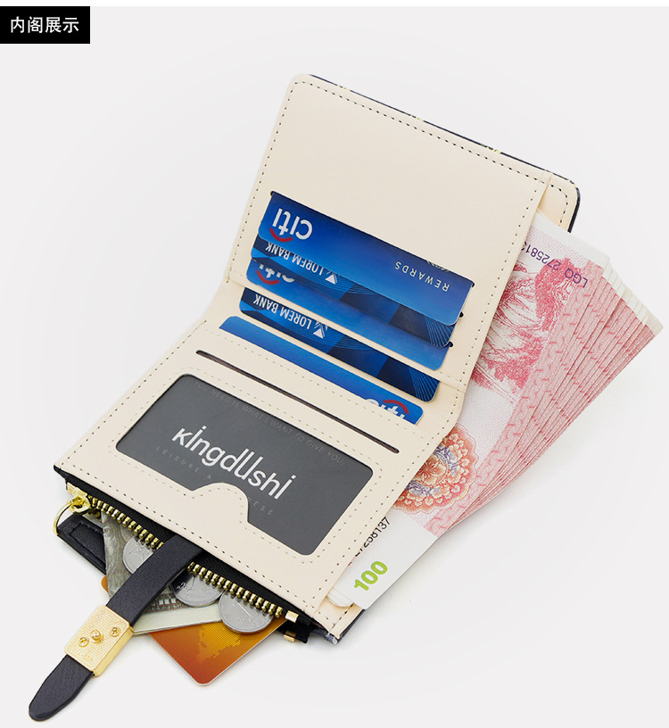 Nuevas bolsas cortas de dama impresión dulce de alta calidad dos plegables billetera cremallera bolsas de cambio bolsas de tarjetas comercio exterior al por mayor
