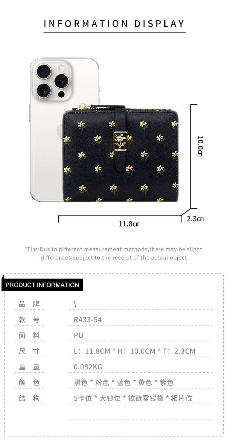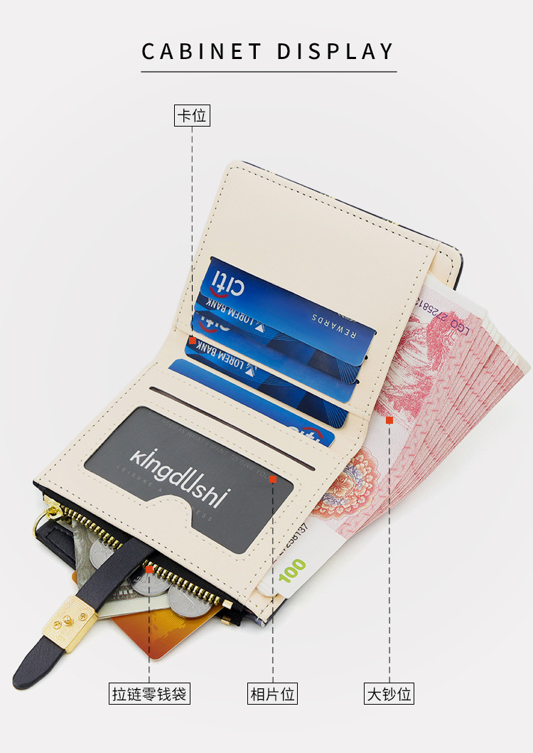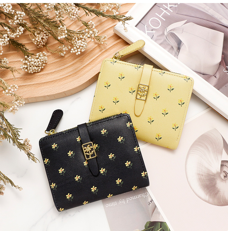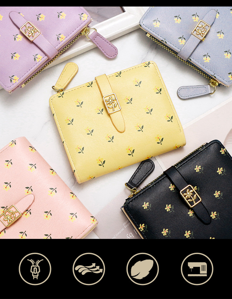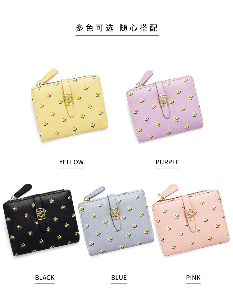 Nuevas bolsas cortas de dama impresión dulce de alta calidad dos plegables billetera cremallera bolsas de cambio bolsas de tarjetas comercio exterior al por mayor