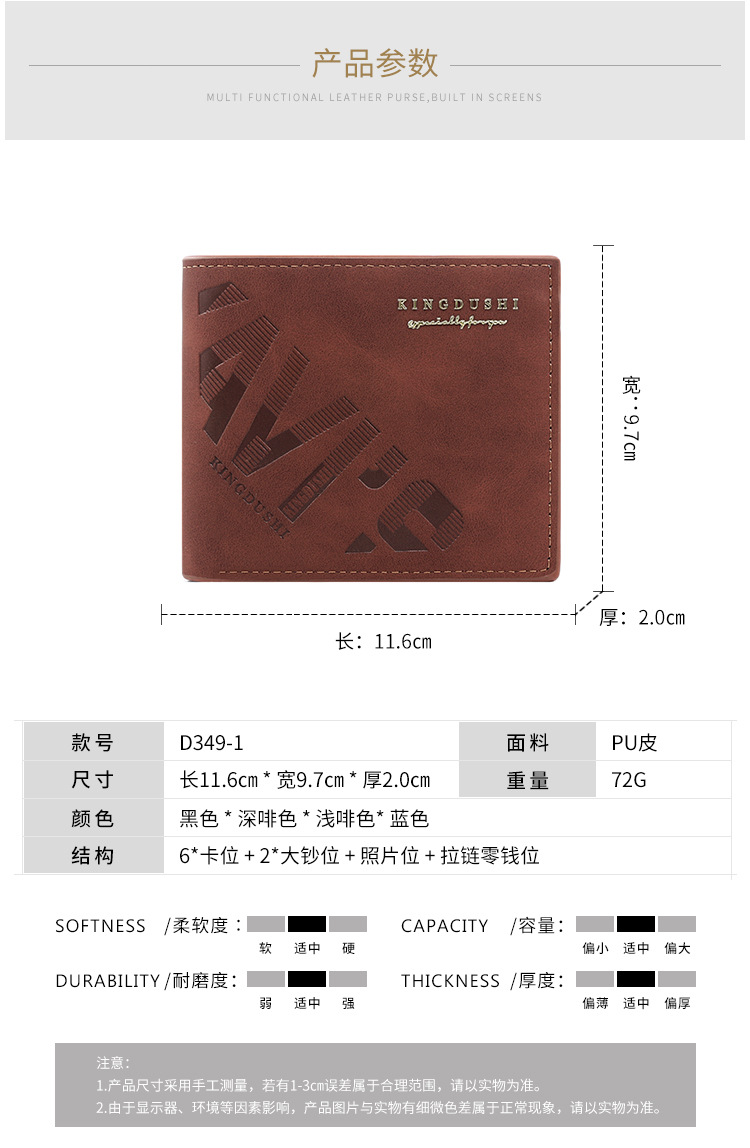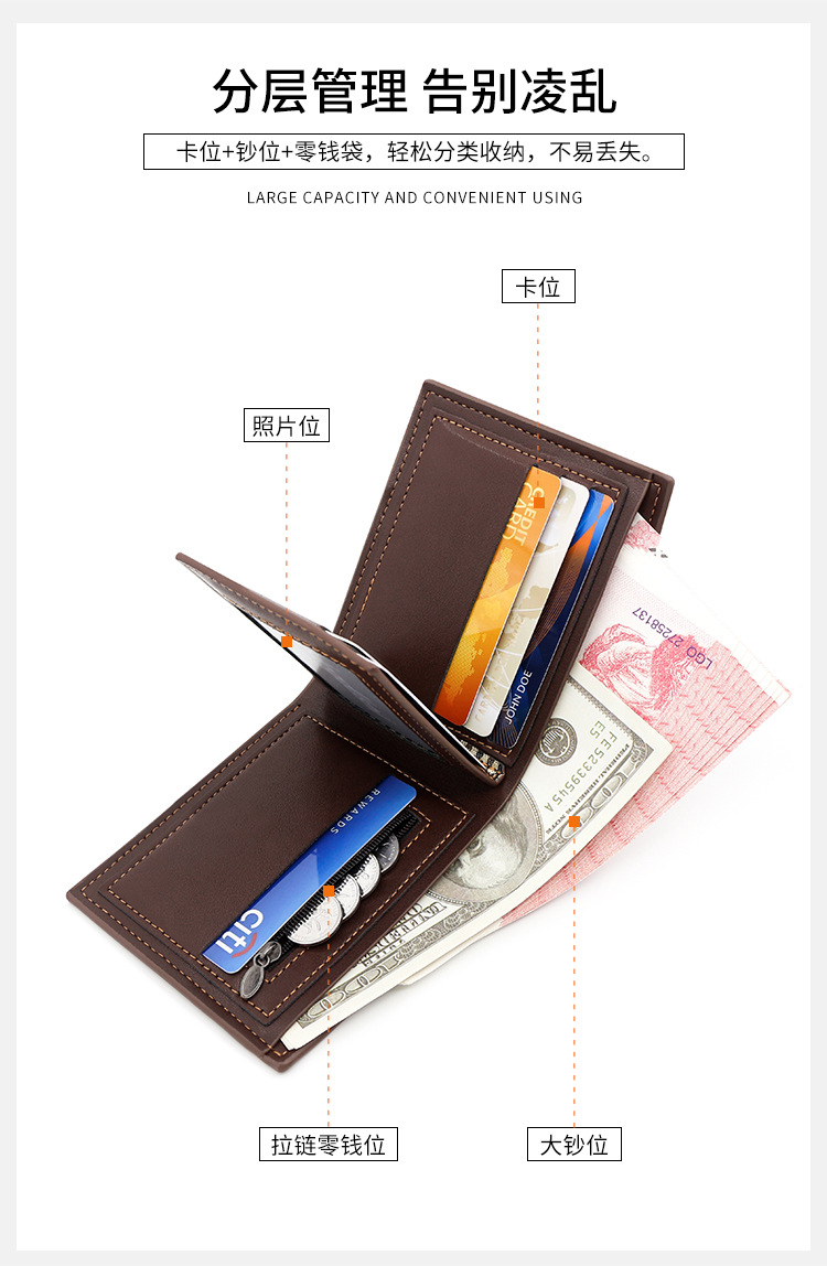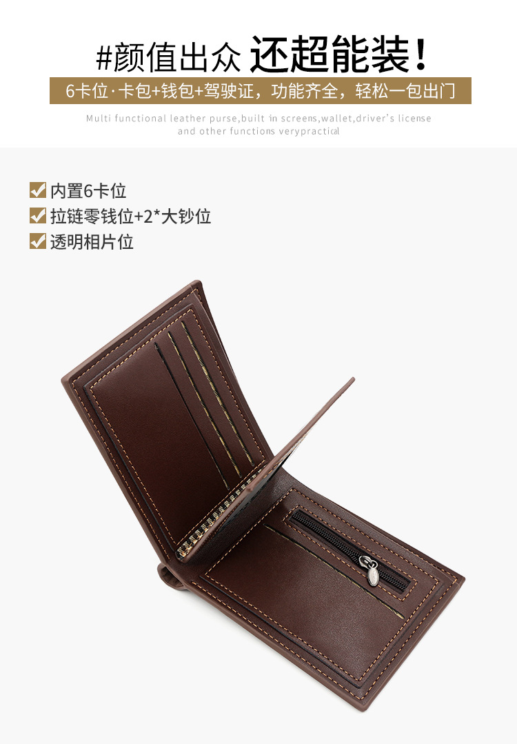 Nueva cartera de hombre corta tendencia bisagra en relieve tres bolsas plegables multi-tarjeta bolsas de cambio bolsas de identificación bolsas de dinero para hombres