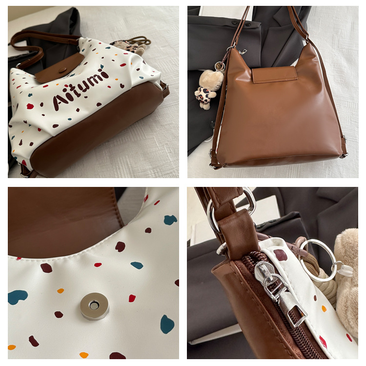 Bolso de mujer 2024 nuevo otoño y invierno retro gran capacidad de hombro único punto de onda de moda universal bolso suave