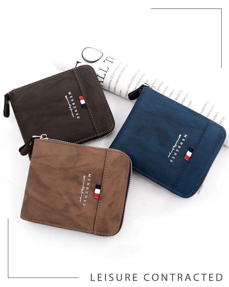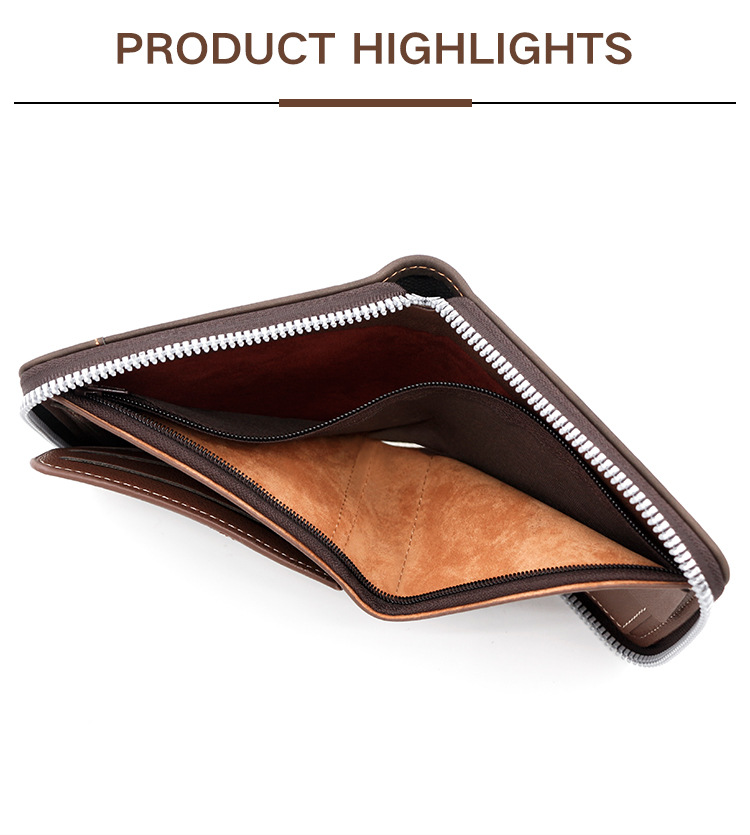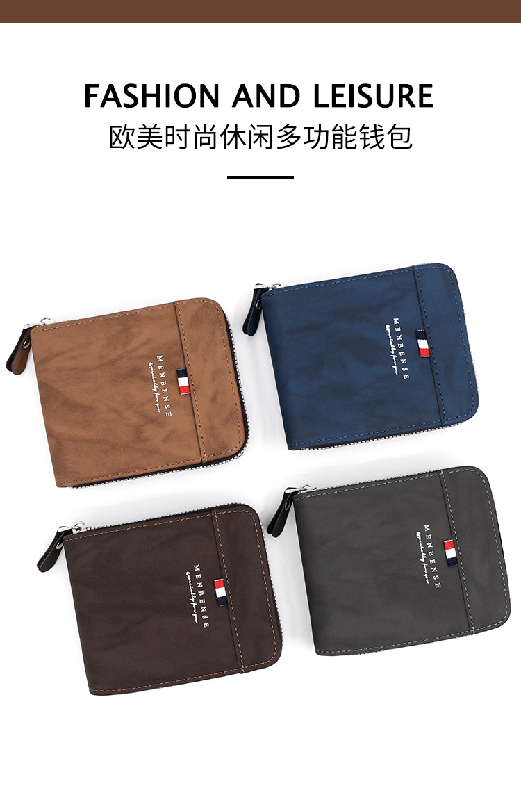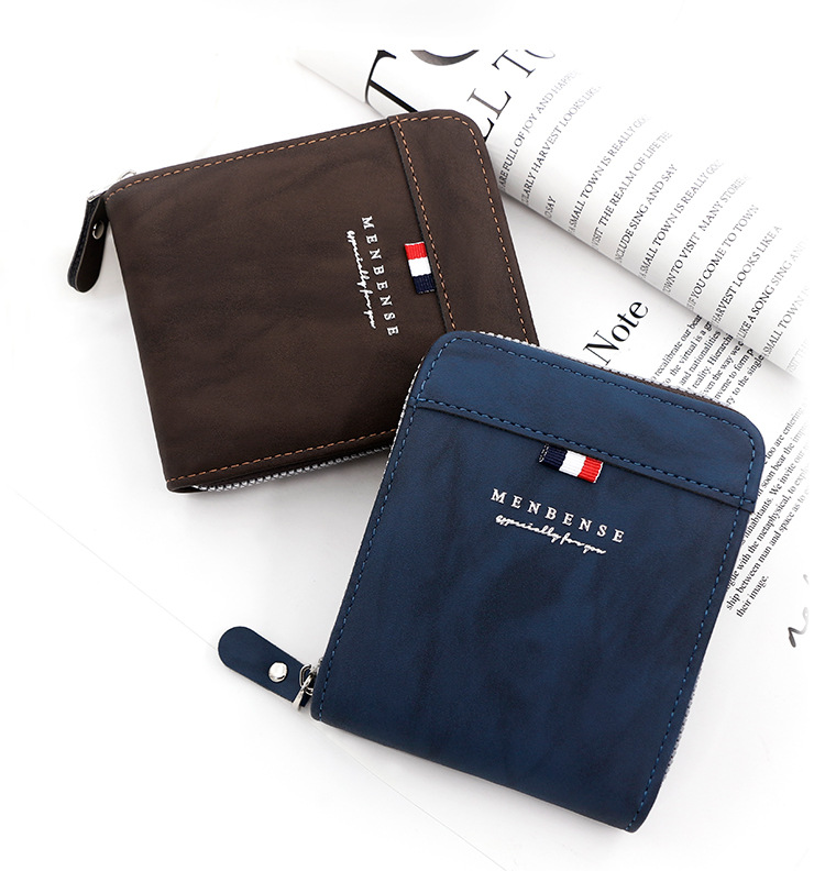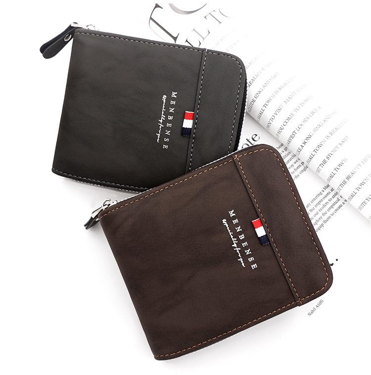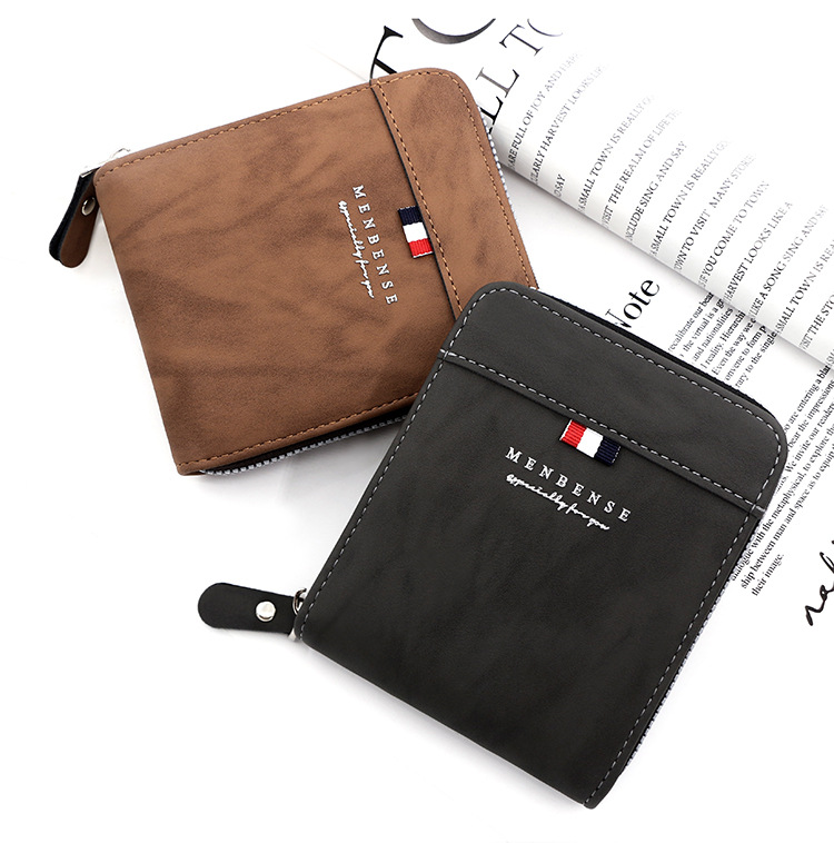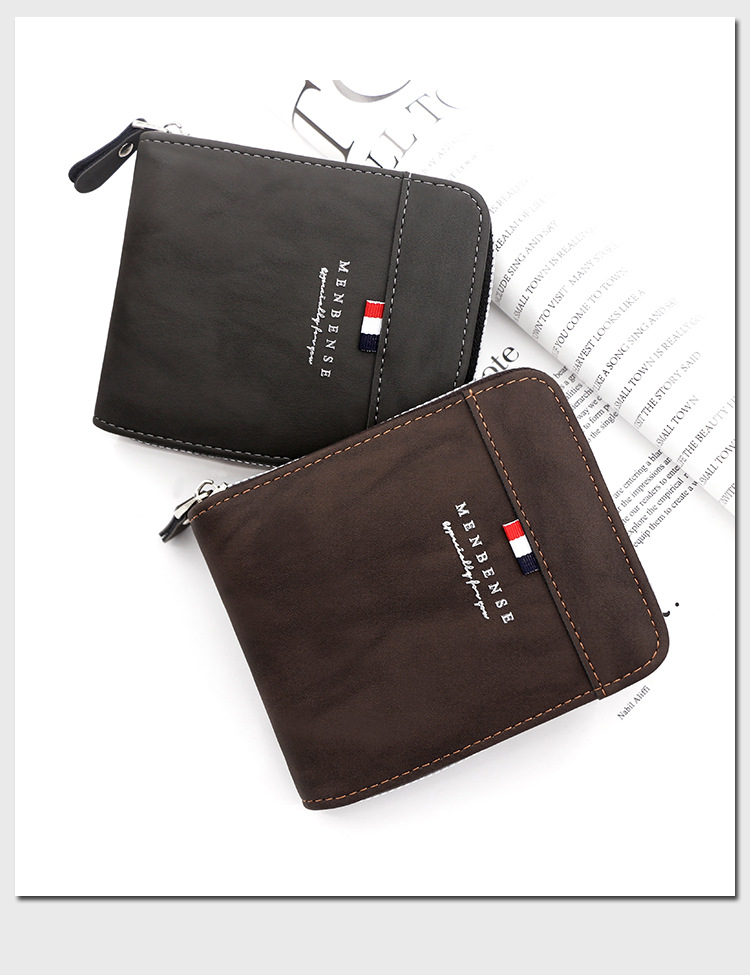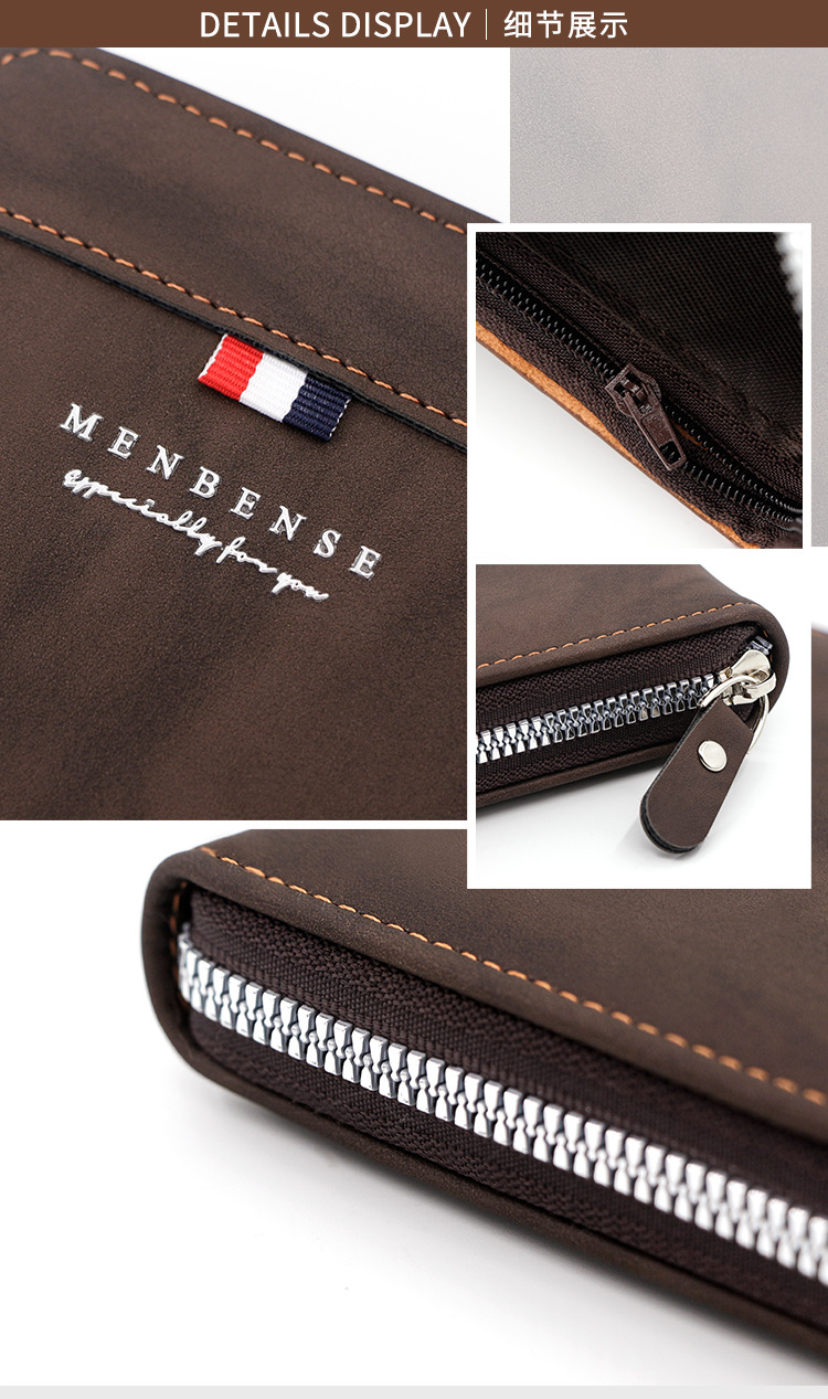 MenBense nueva cartera de los hombres de gran capacidad bolsa de cremallera monedero de los hombres esmerilado bufanda corta cartera bolsa