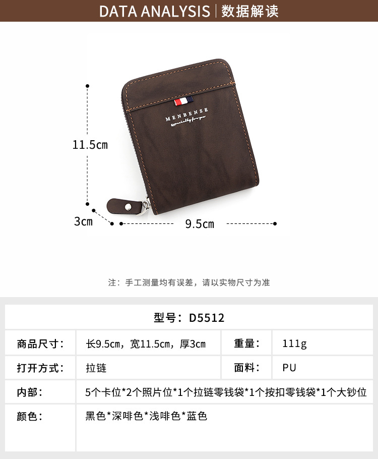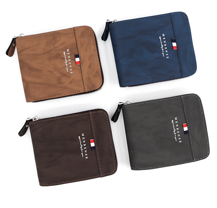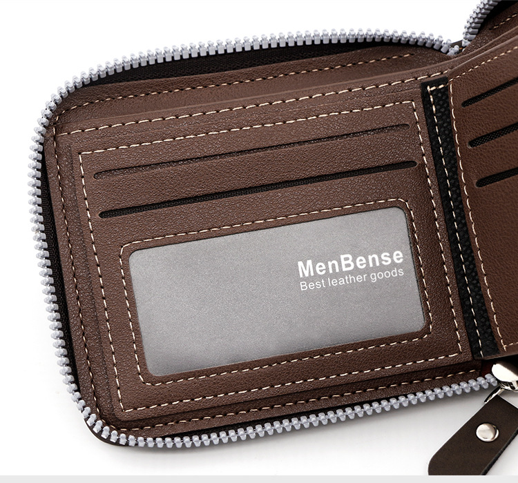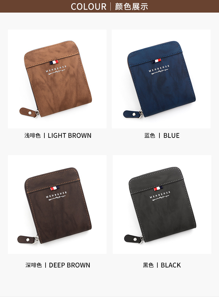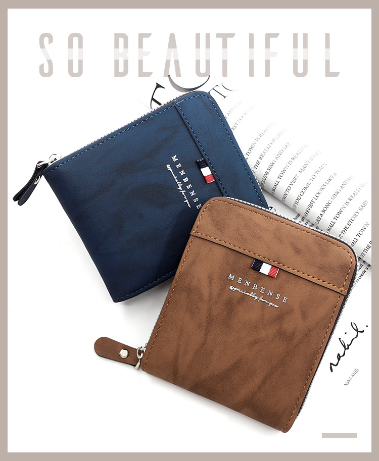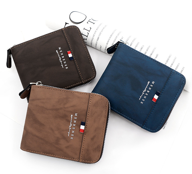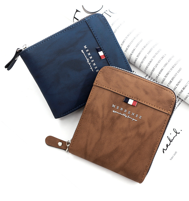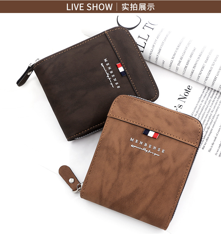MenBense nueva cartera de los hombres de gran capacidad bolsa de cremallera monedero de los hombres esmerilado bufanda corta cartera bolsa