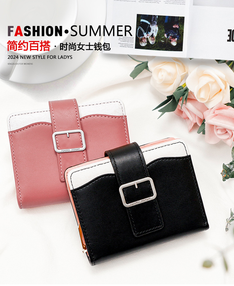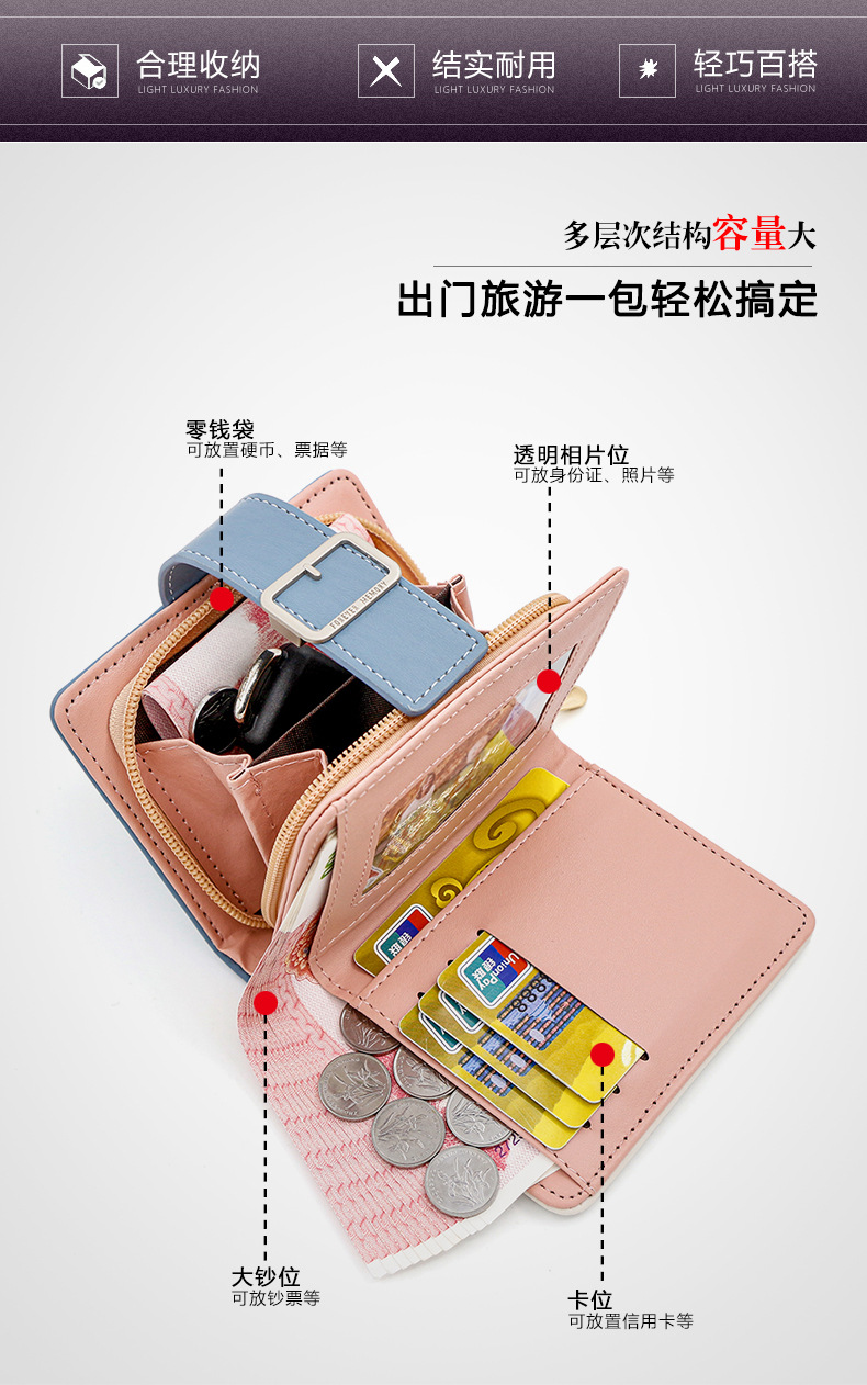 Nueva versión coreana de la billetera corta de mujeres, bolso de cambio simple de estudiantes, bolso de mano, bolso de tarjeta múltiple.