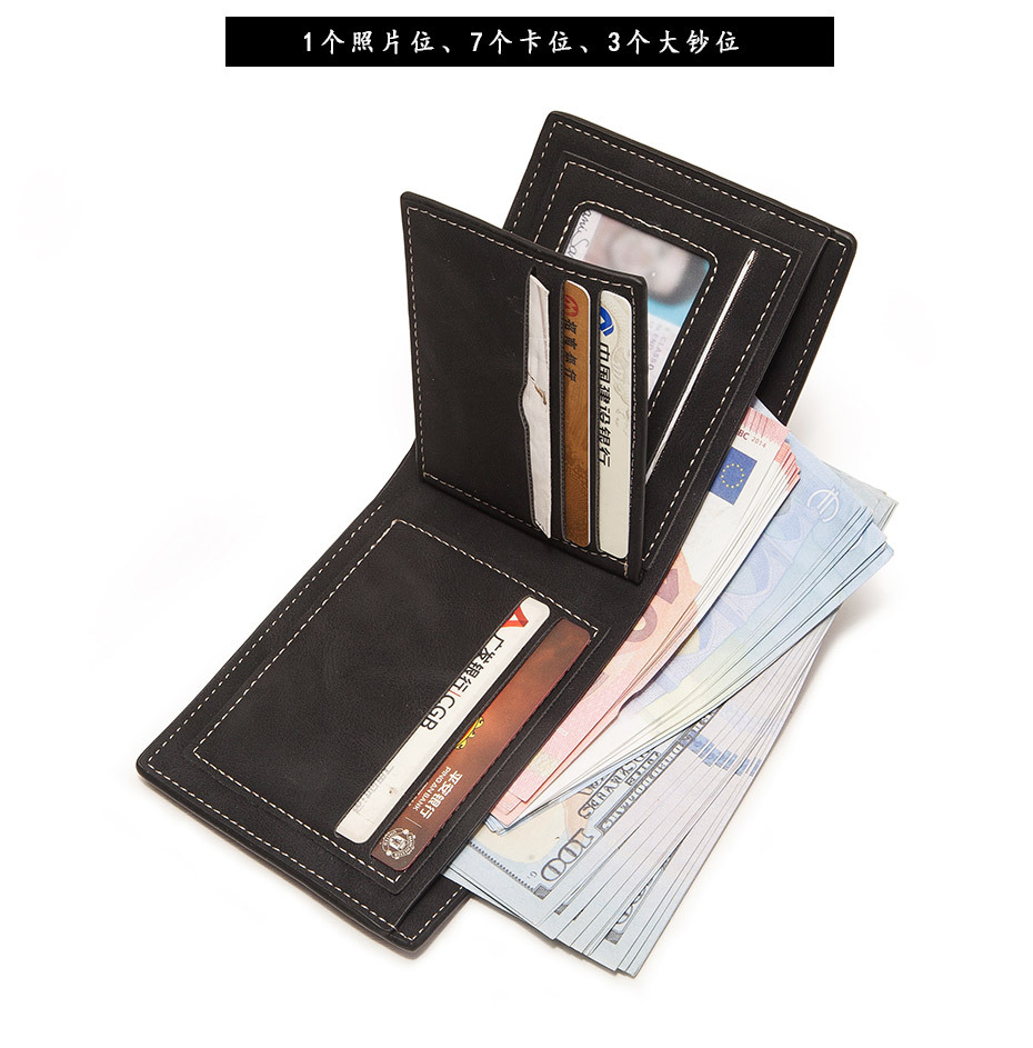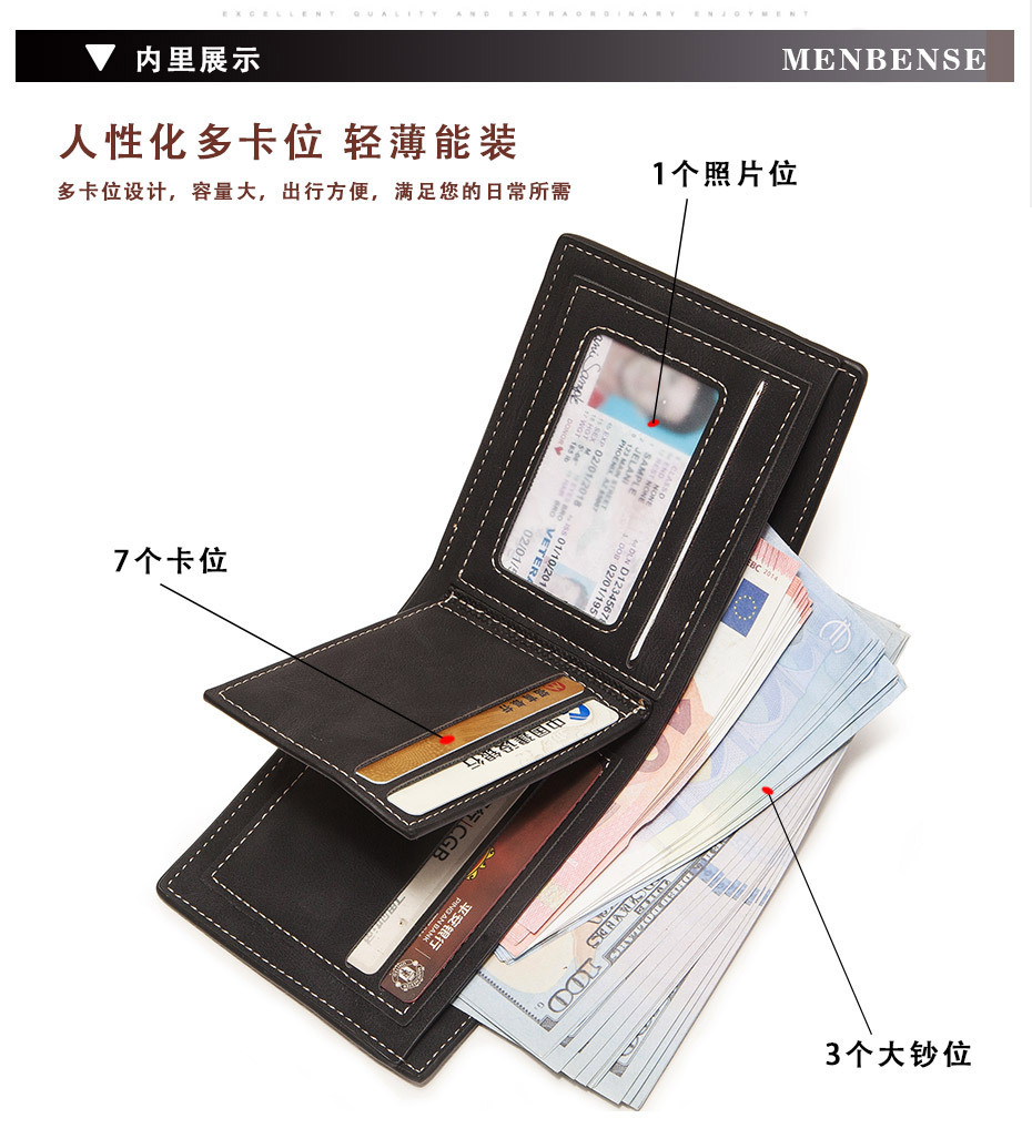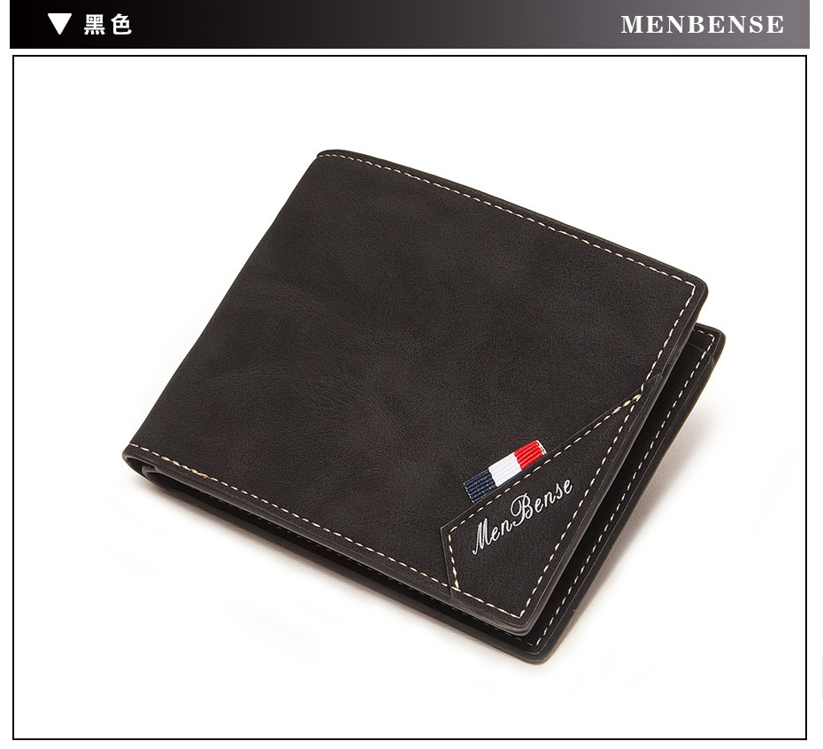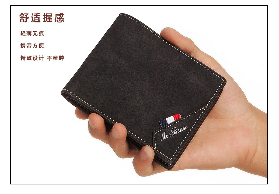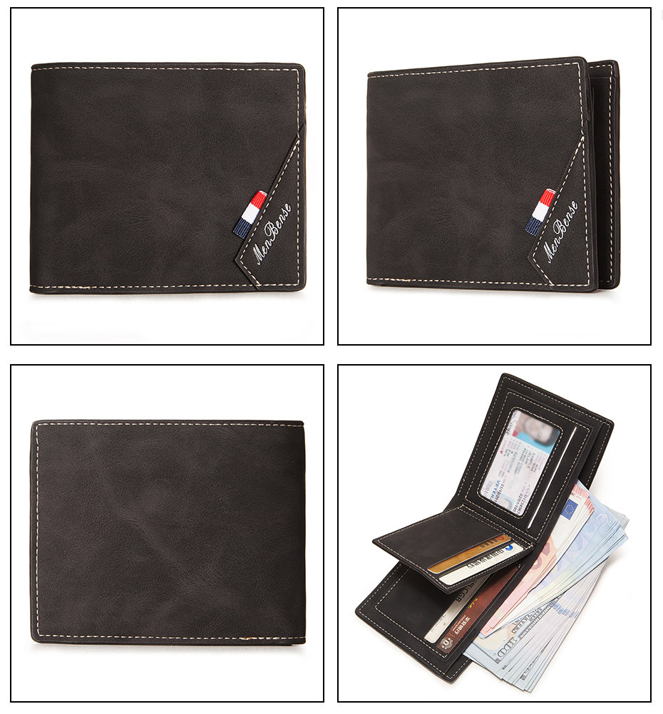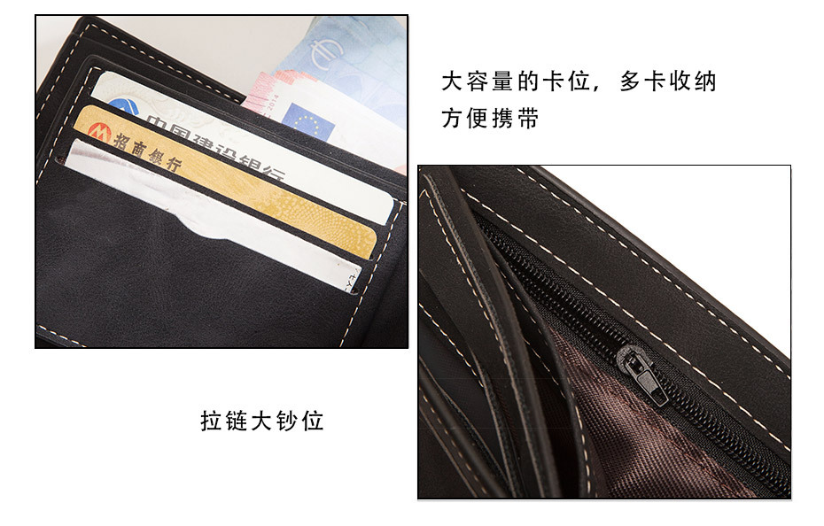 MenBense billetera horizontal de costura corta para hombres de gran capacidad titular de la tarjeta multi-Tarjeta billetera esmerilada Cambio de cremallera