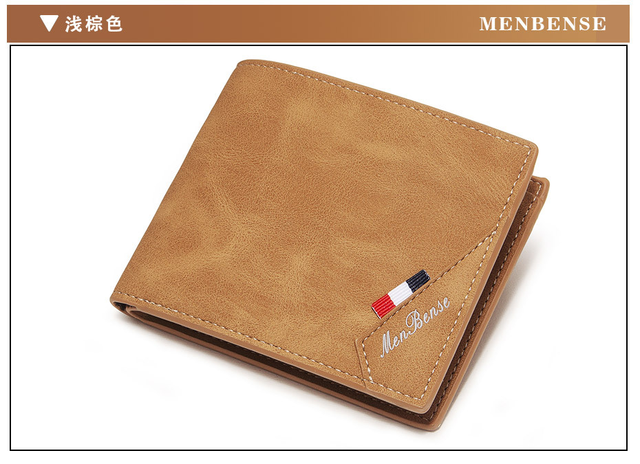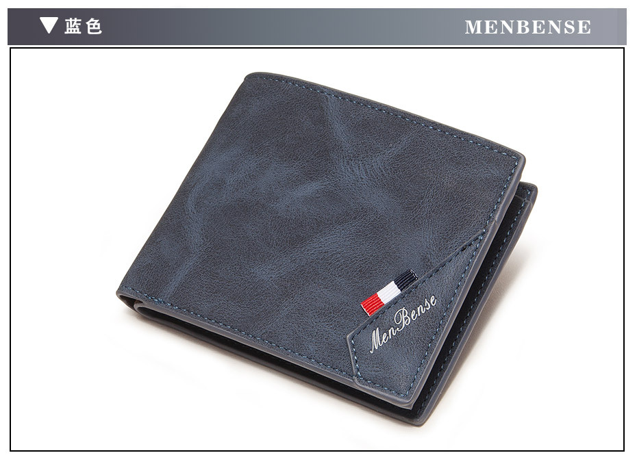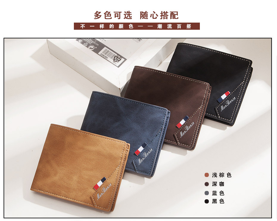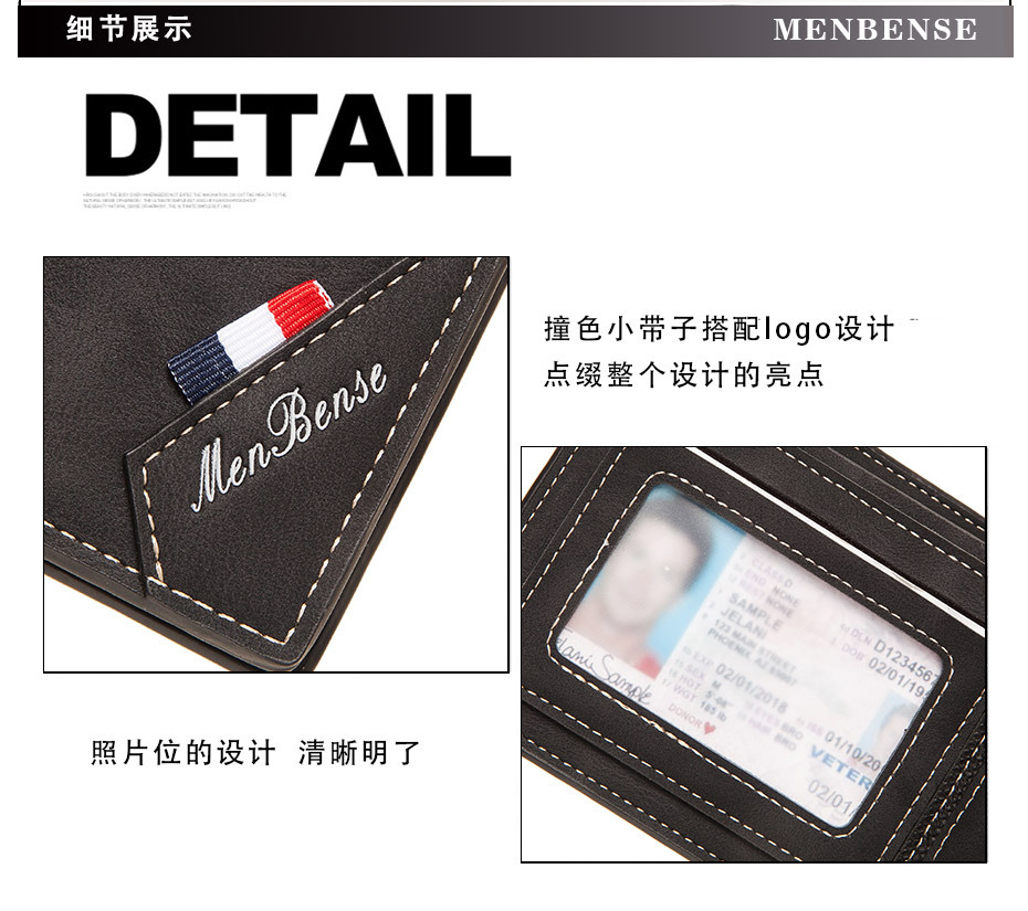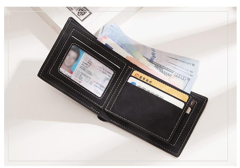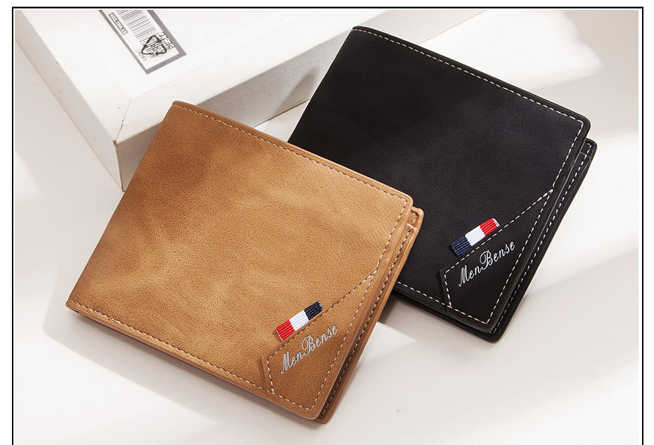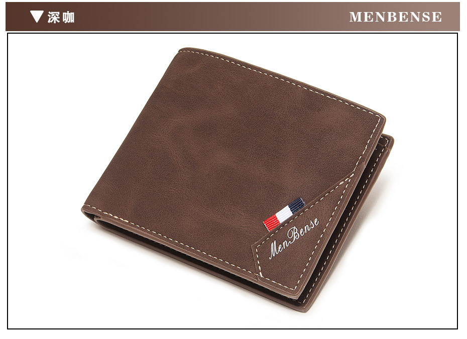 MenBense billetera horizontal de costura corta para hombres de gran capacidad titular de la tarjeta multi-Tarjeta billetera esmerilada Cambio de cremallera