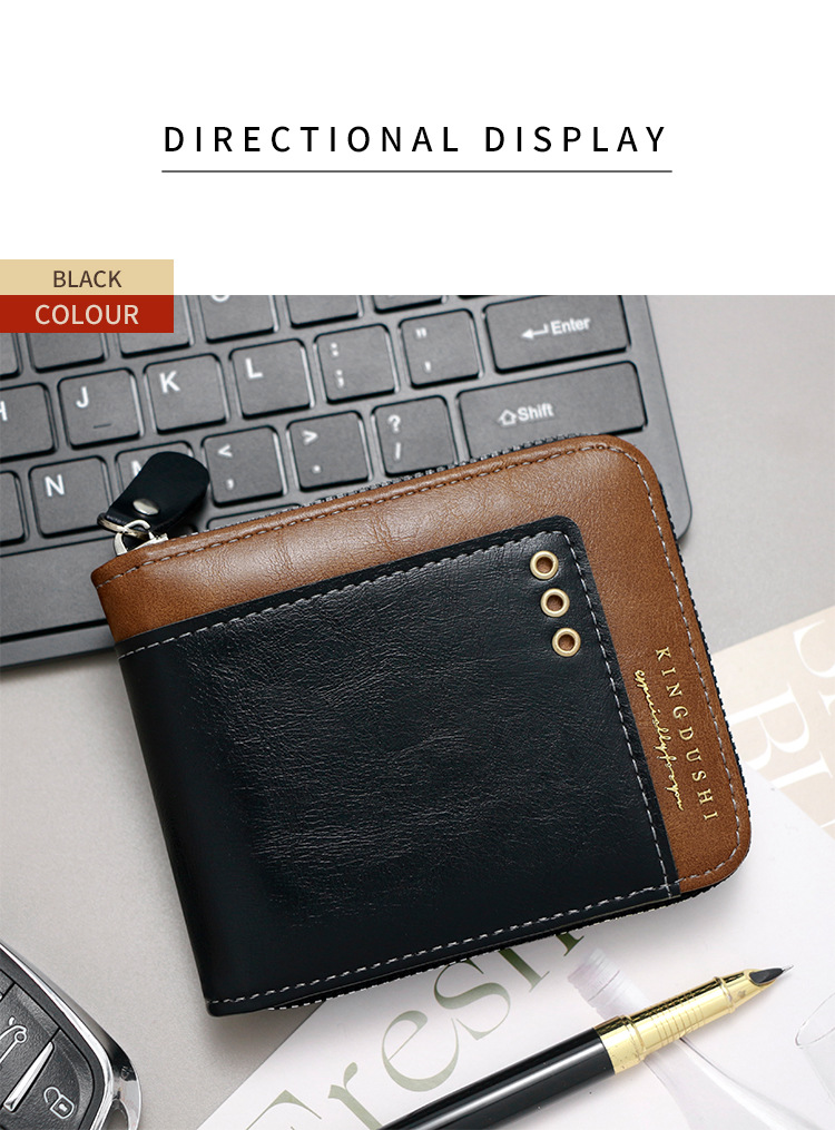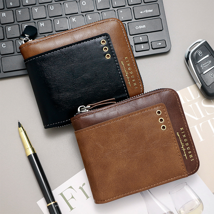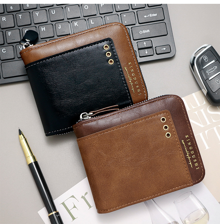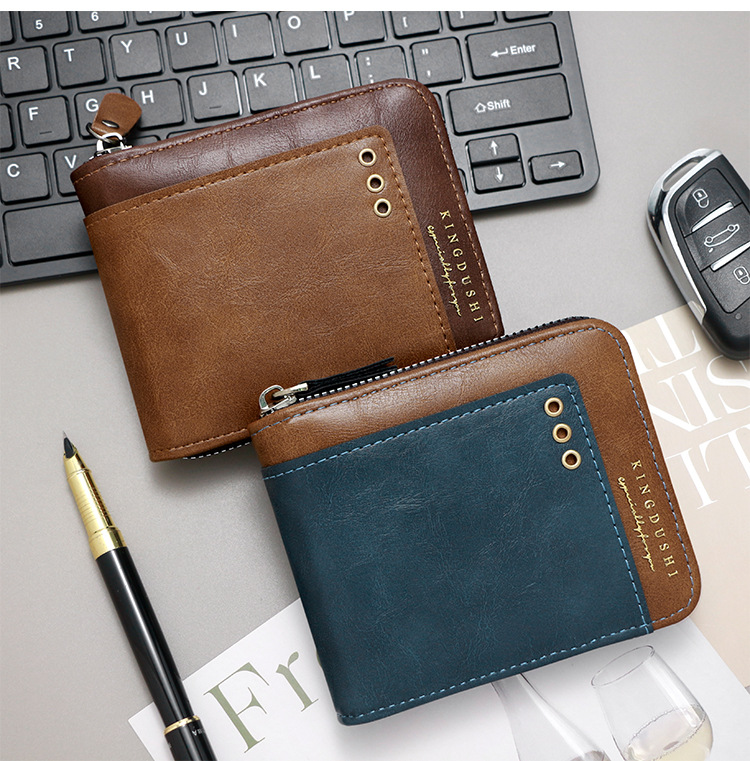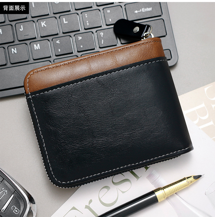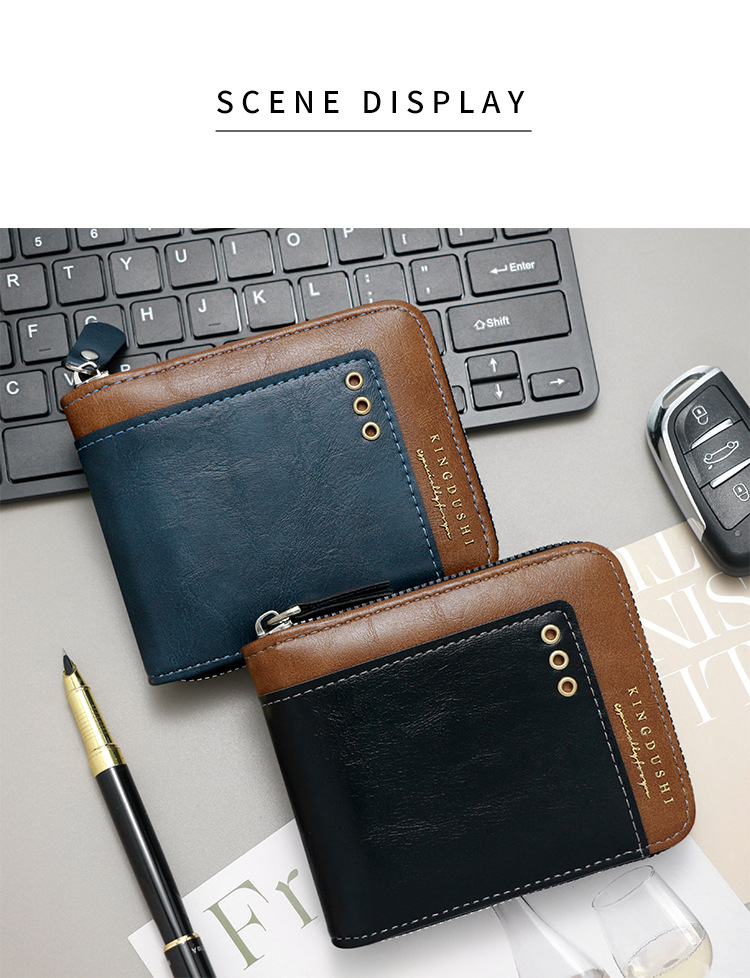 Comercio exterior nueva moda color de contraste billetera corta para hombres posición de múltiples tarjetas cerca de la bolsa de monedas de Bisagra billetera para hombres al por mayor