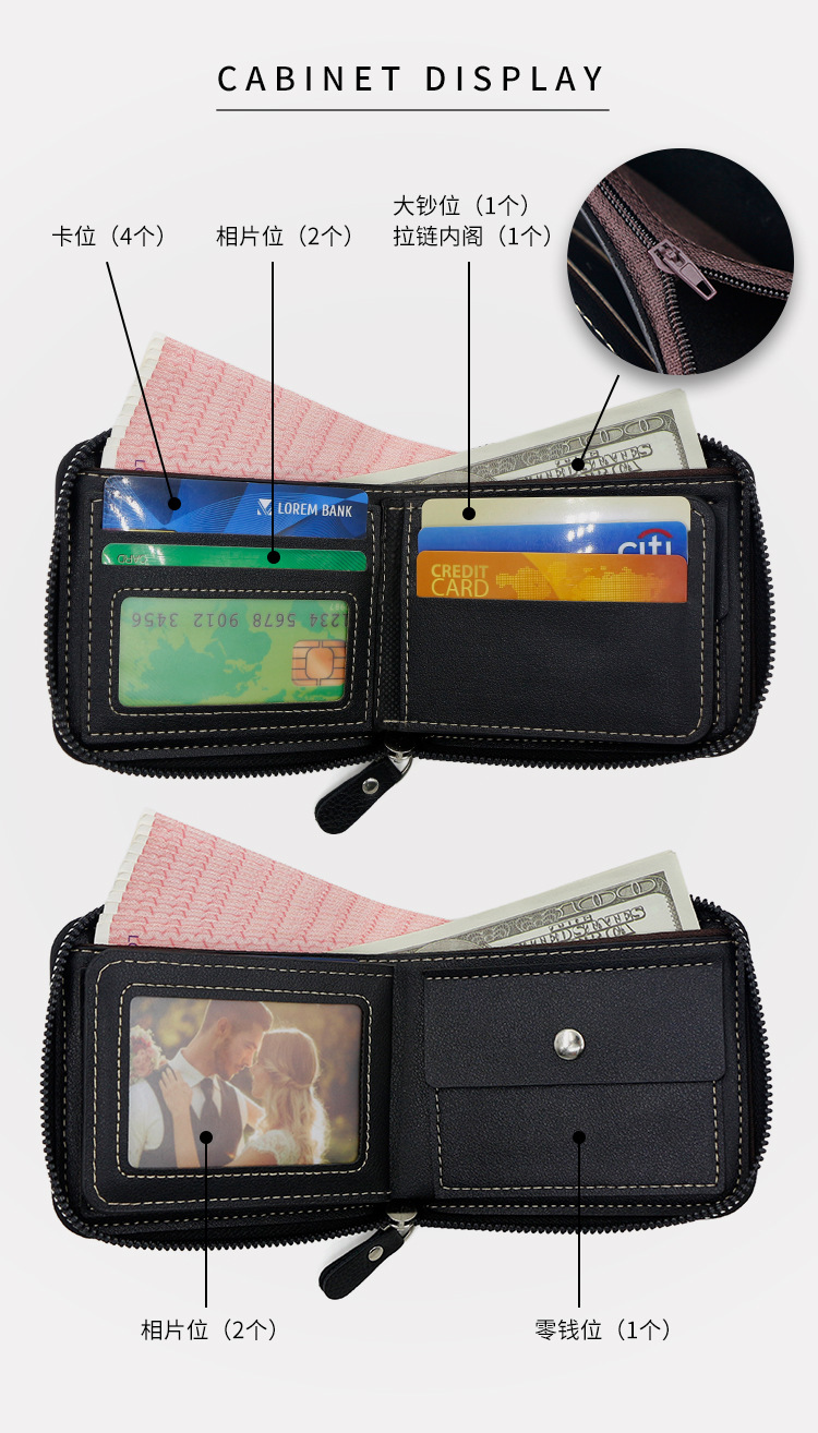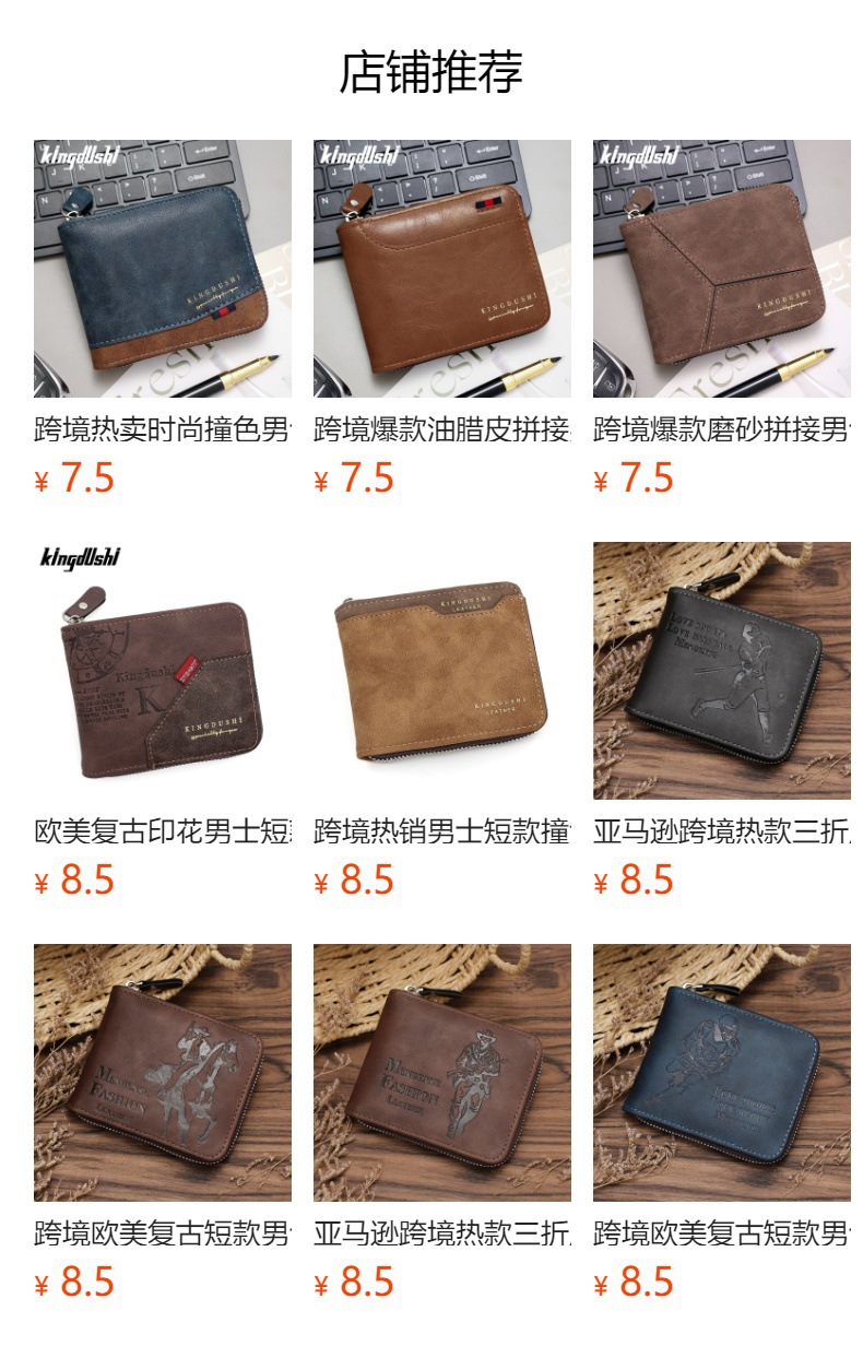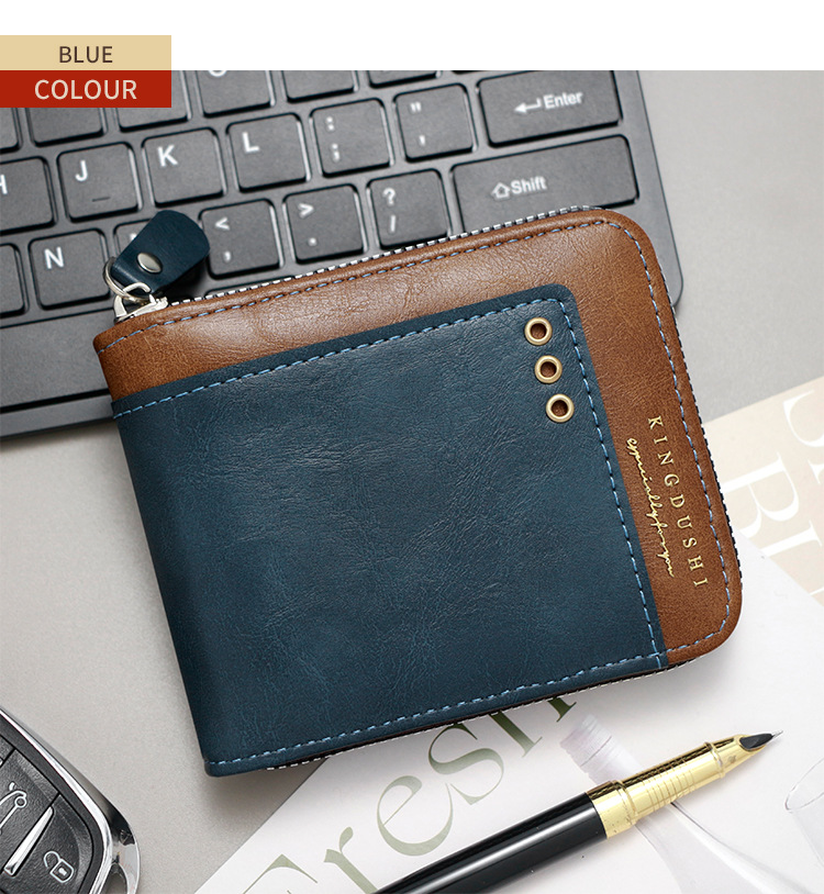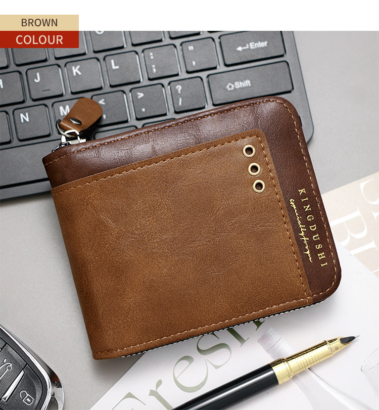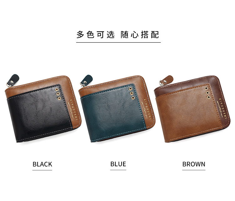 Comercio exterior nueva moda color de contraste billetera corta para hombres posición de múltiples tarjetas cerca de la bolsa de monedas de Bisagra billetera para hombres al por mayor