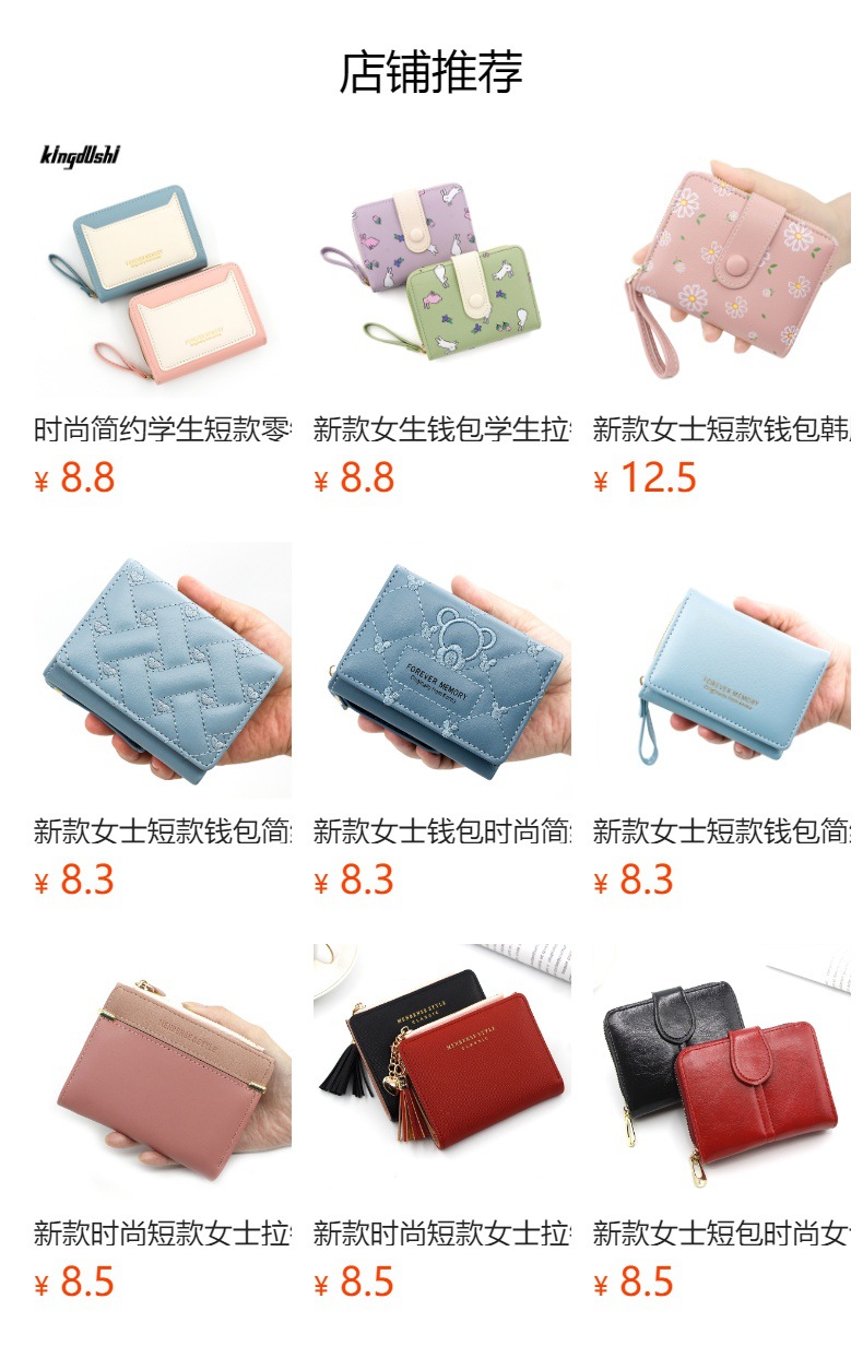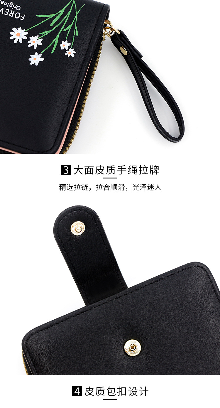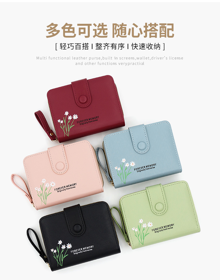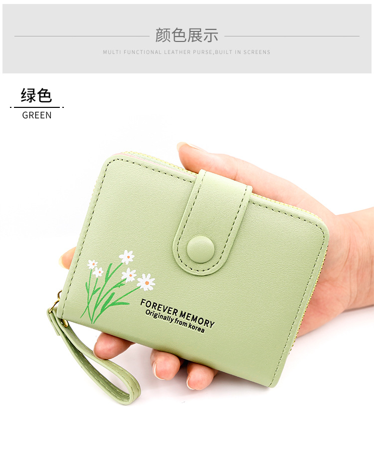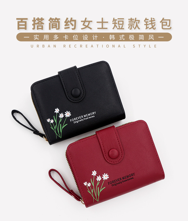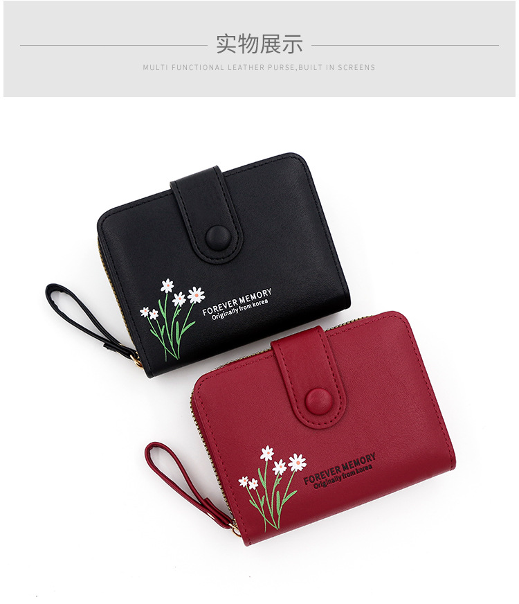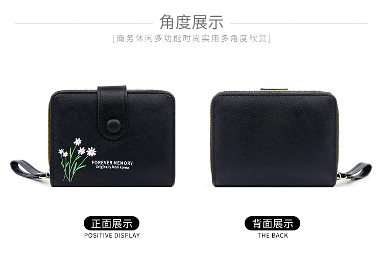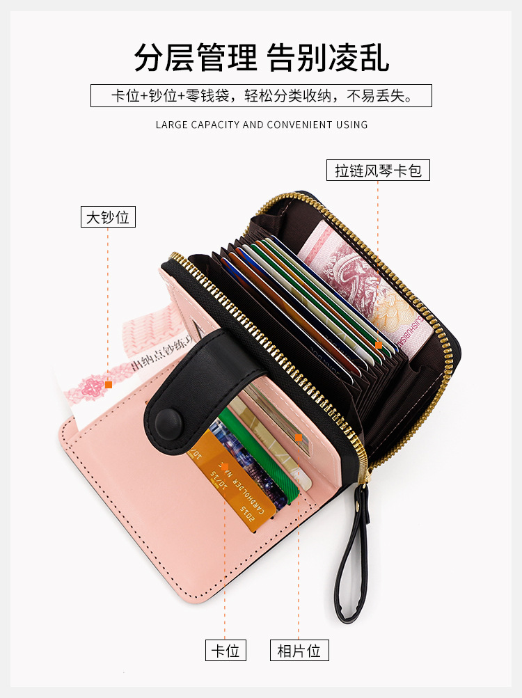 Nuevo cross-border cremallera billetera corta de moda de color sólido impresión multi-tarjeta billetera
