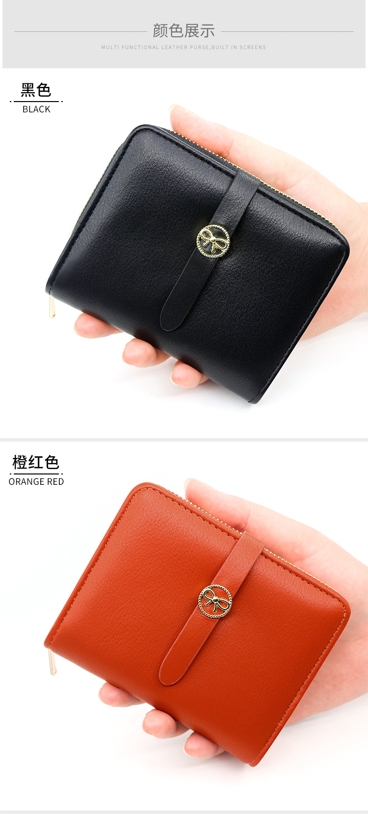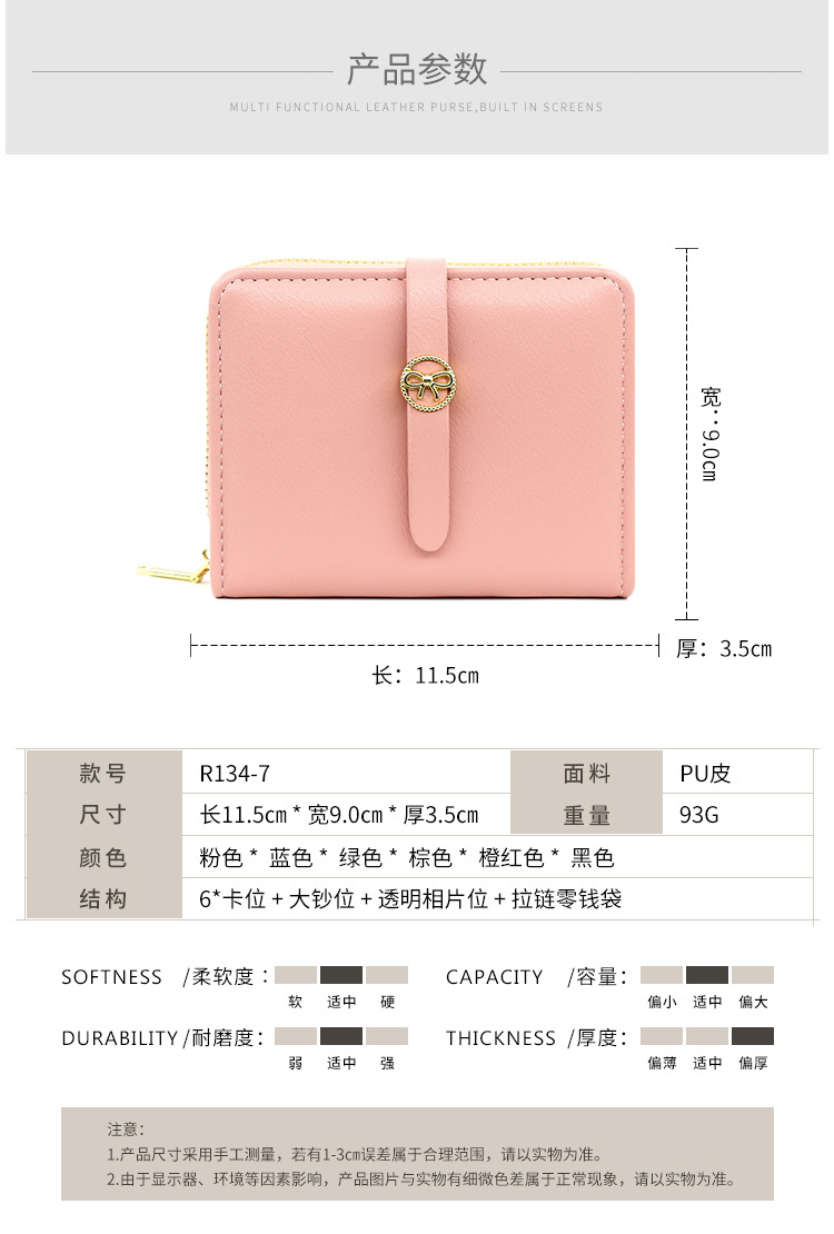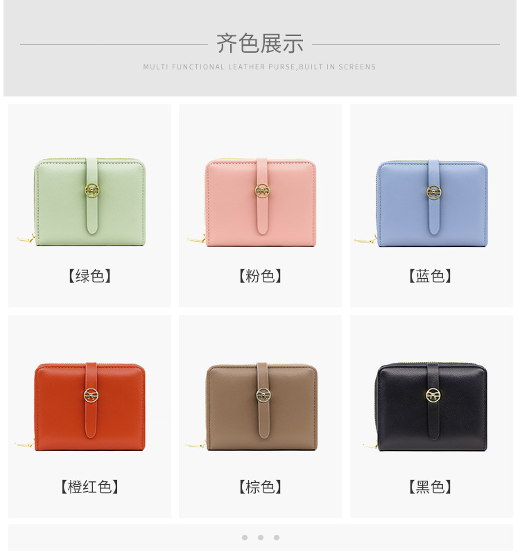 Nueva cartera de las mujeres simple corto cartera multi-Tarjeta titular japonés y coreano fresco moda pu cremallera monedero