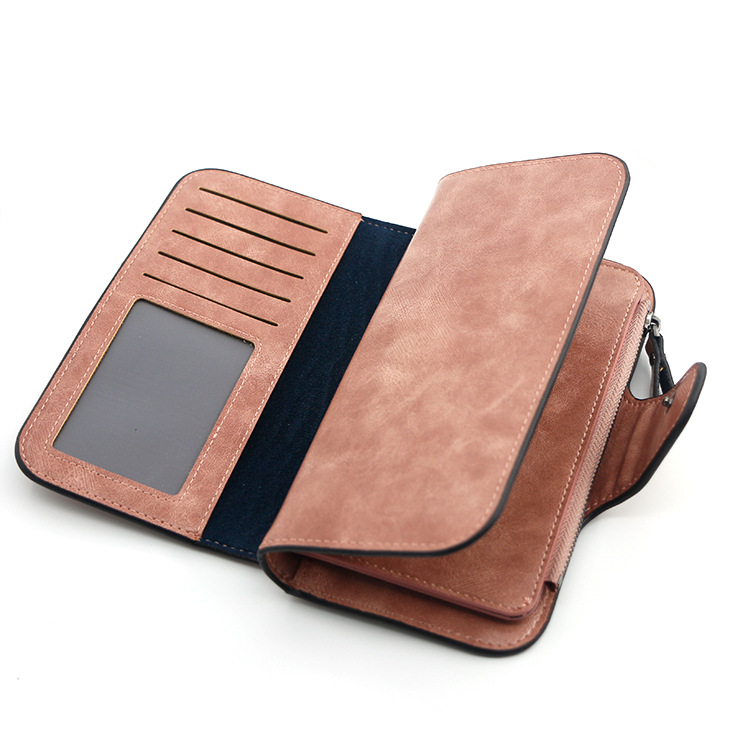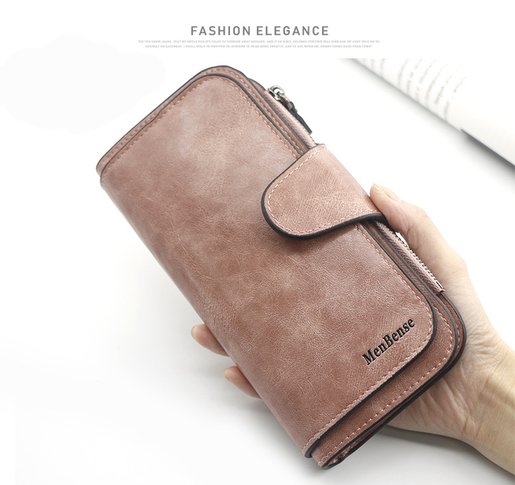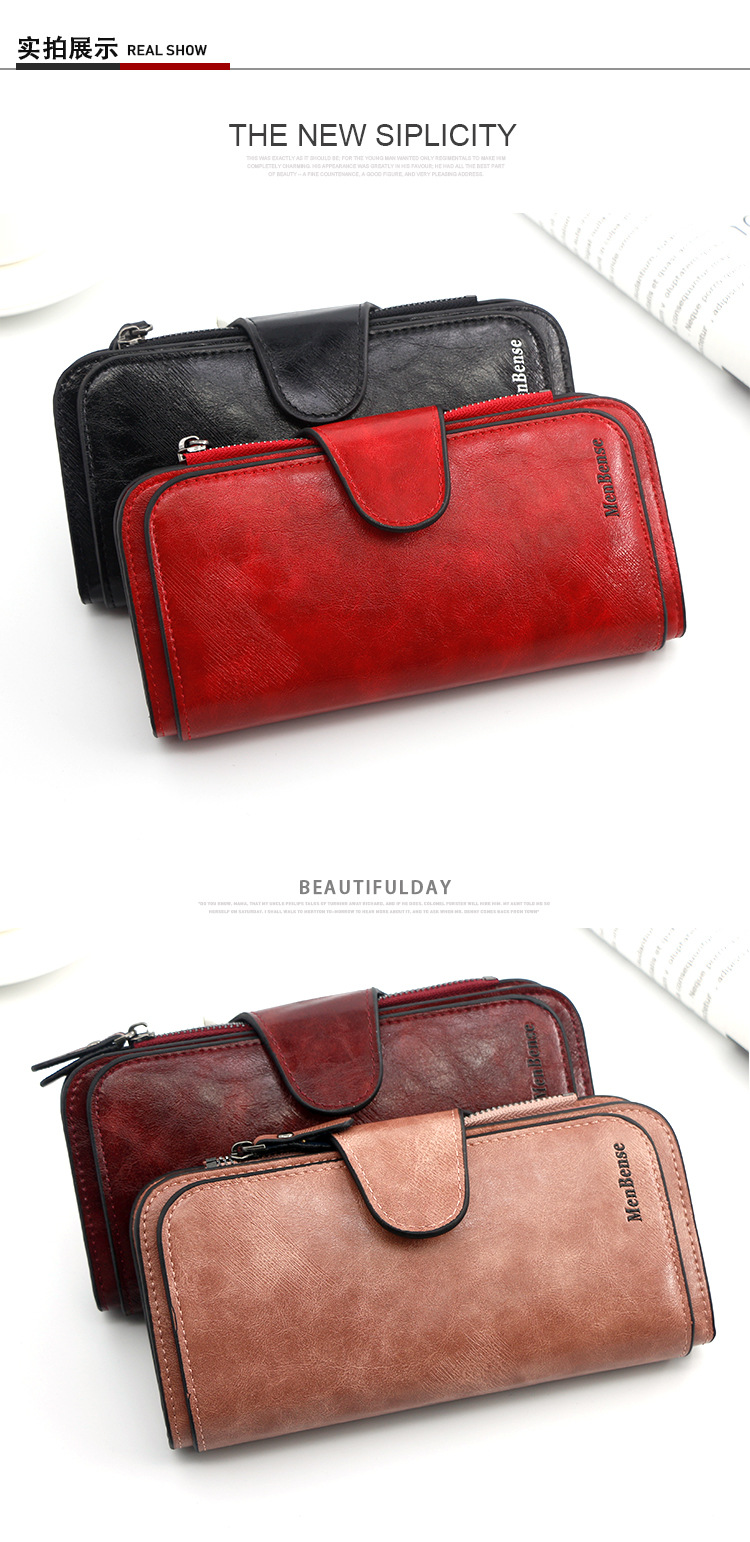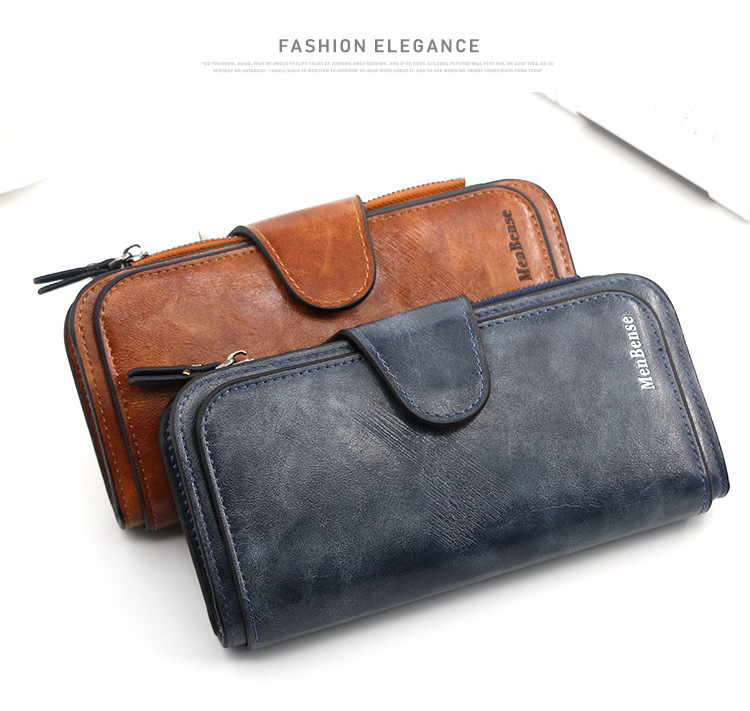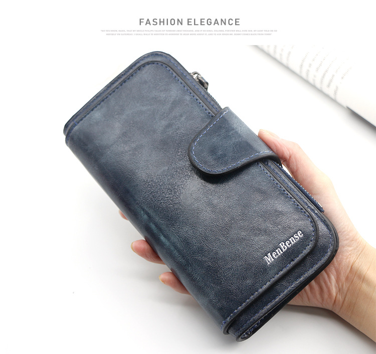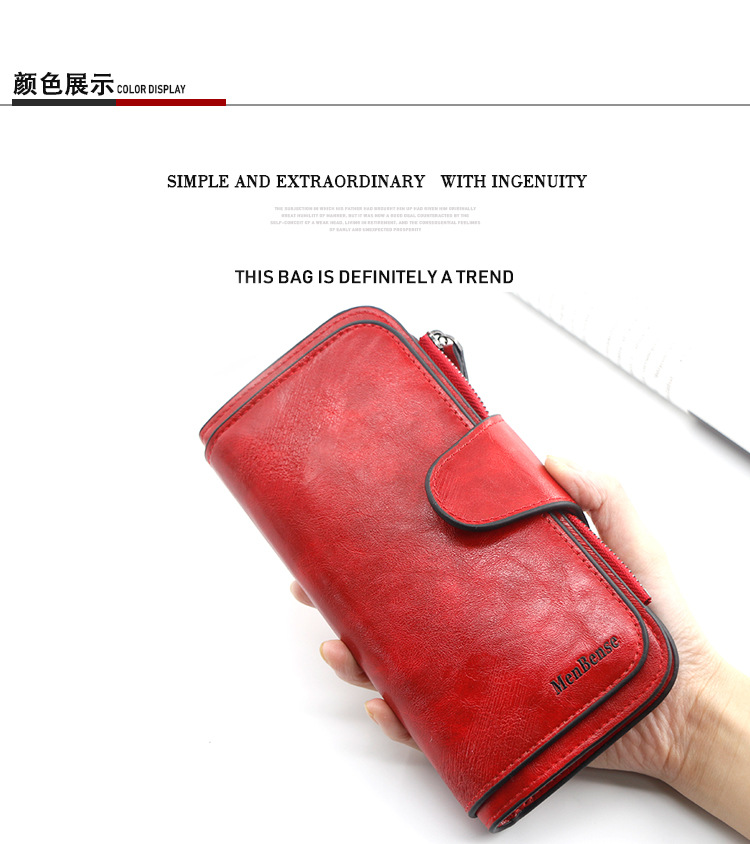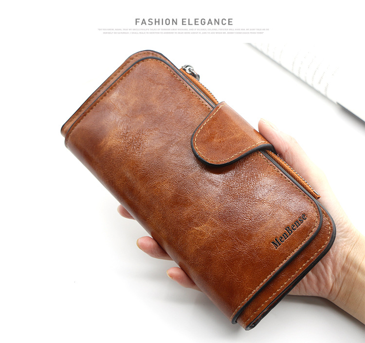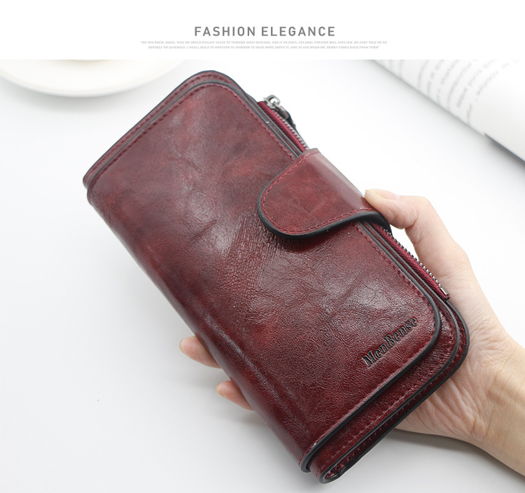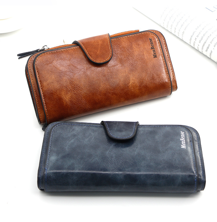 Venta caliente transfronteriza hebilla de cuero de cera de aceite retro billetera larga para mujer bolso para teléfono móvil bolso de embrague de monedero de posición de múltiples tarjetas