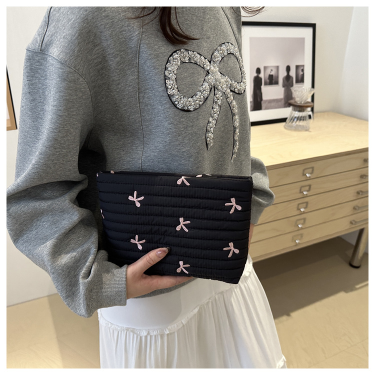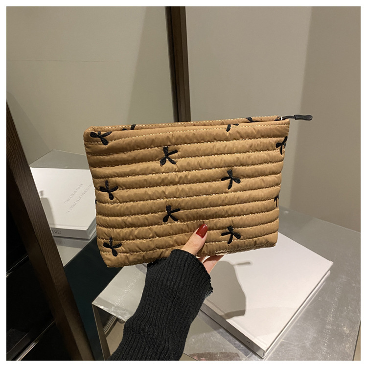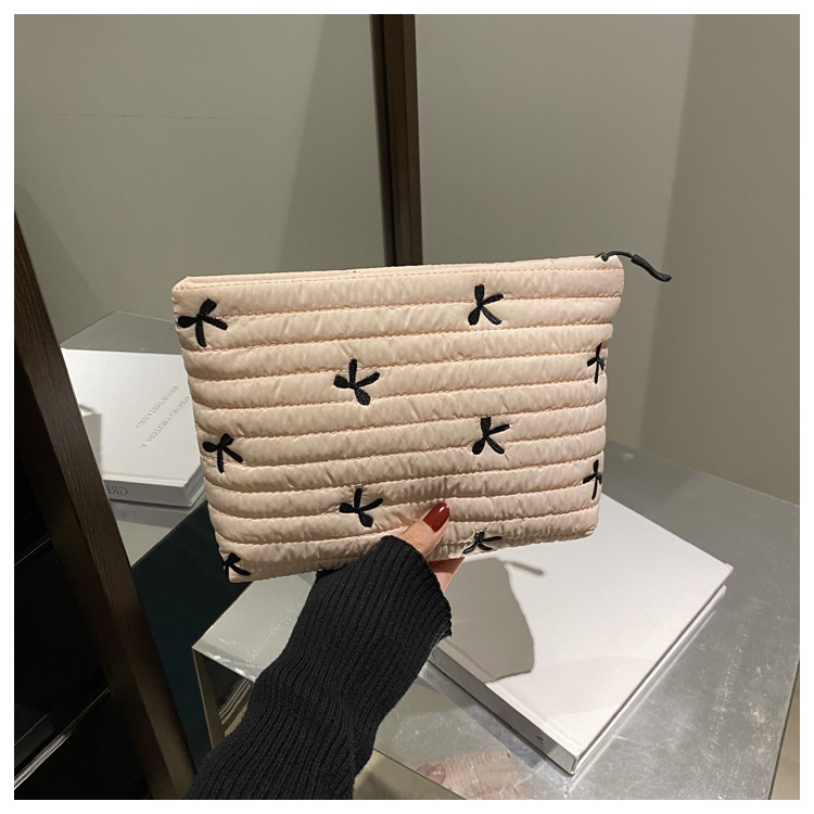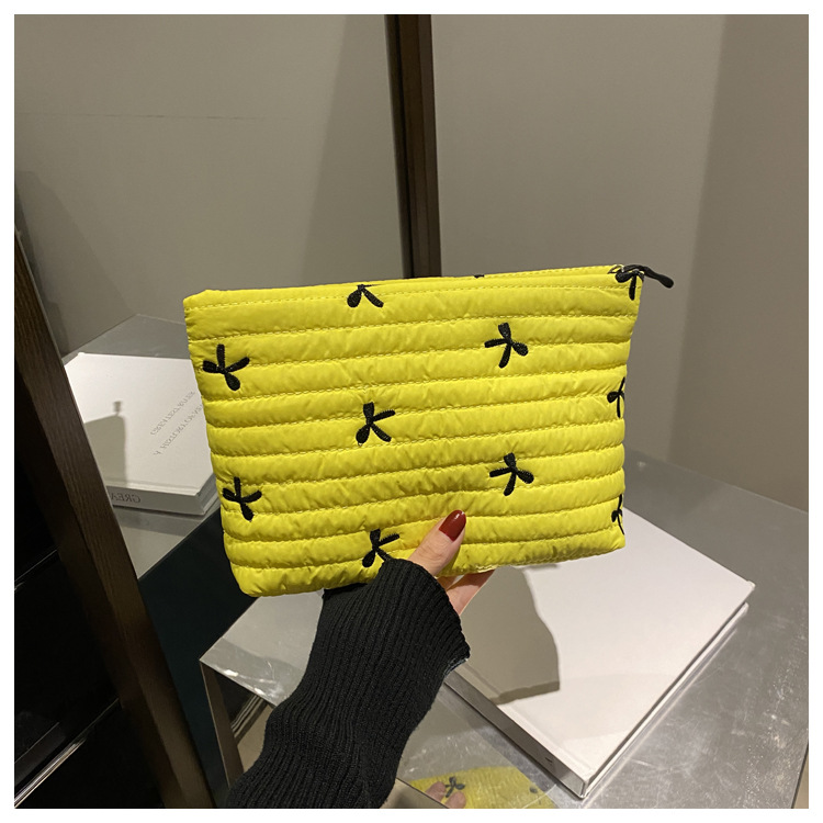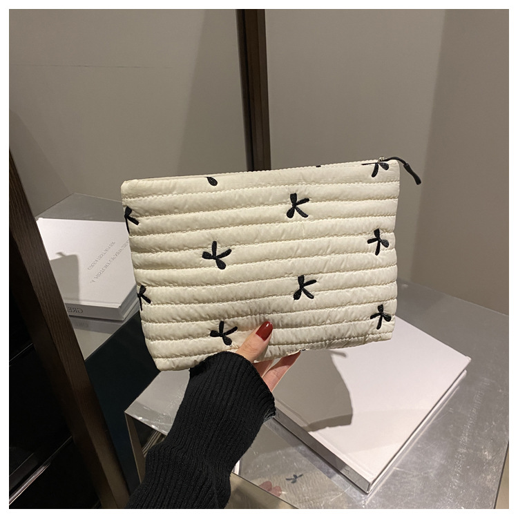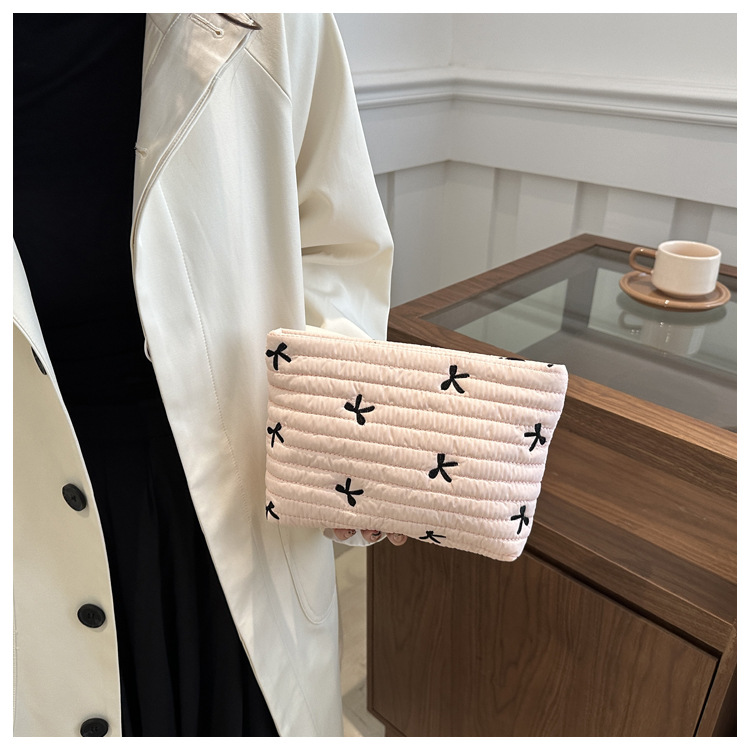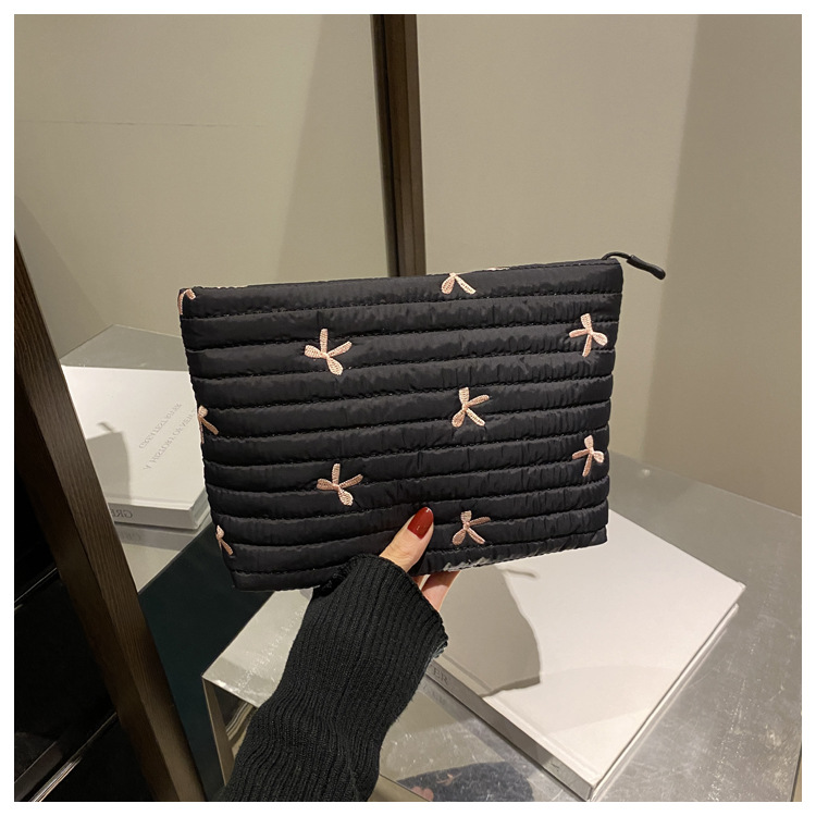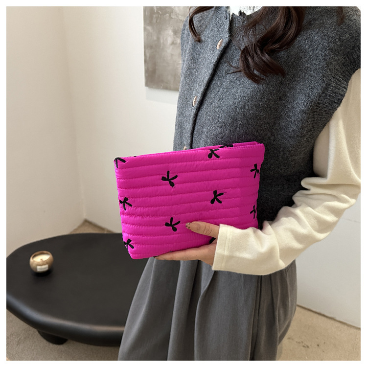 2024 invierno nuevo estilo ins moda portátil pana impresión de mariposa gran capacidad maquillaje embrague portátil