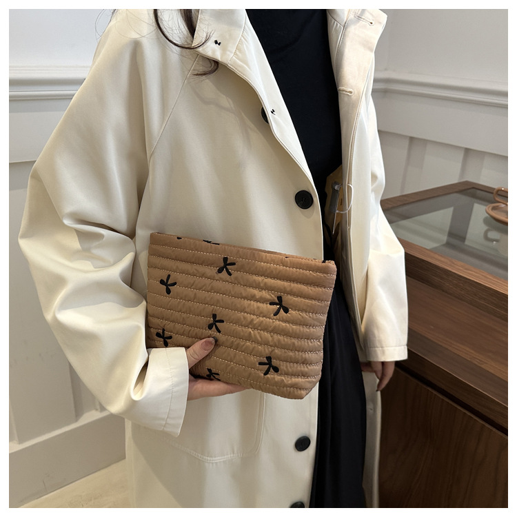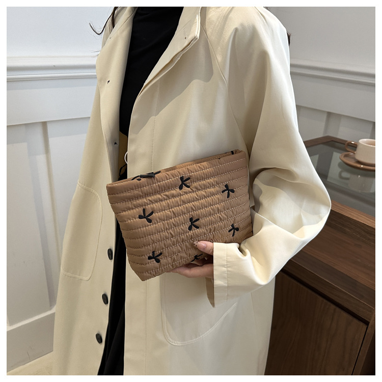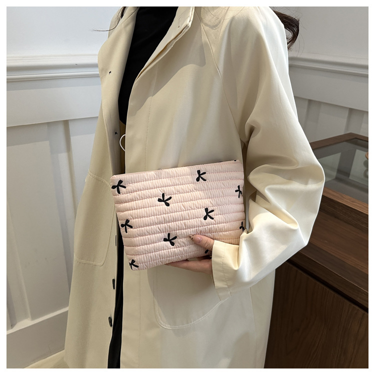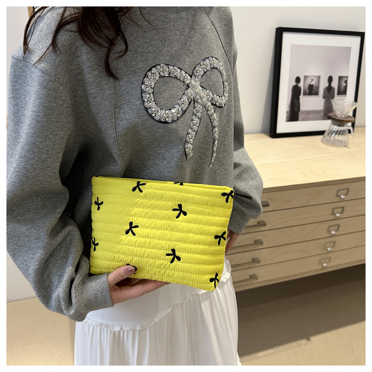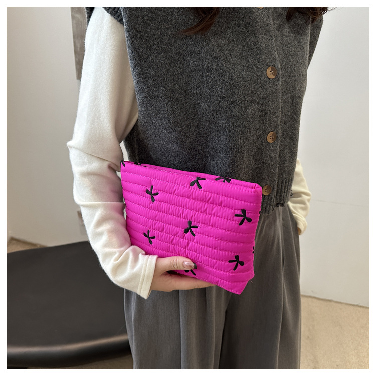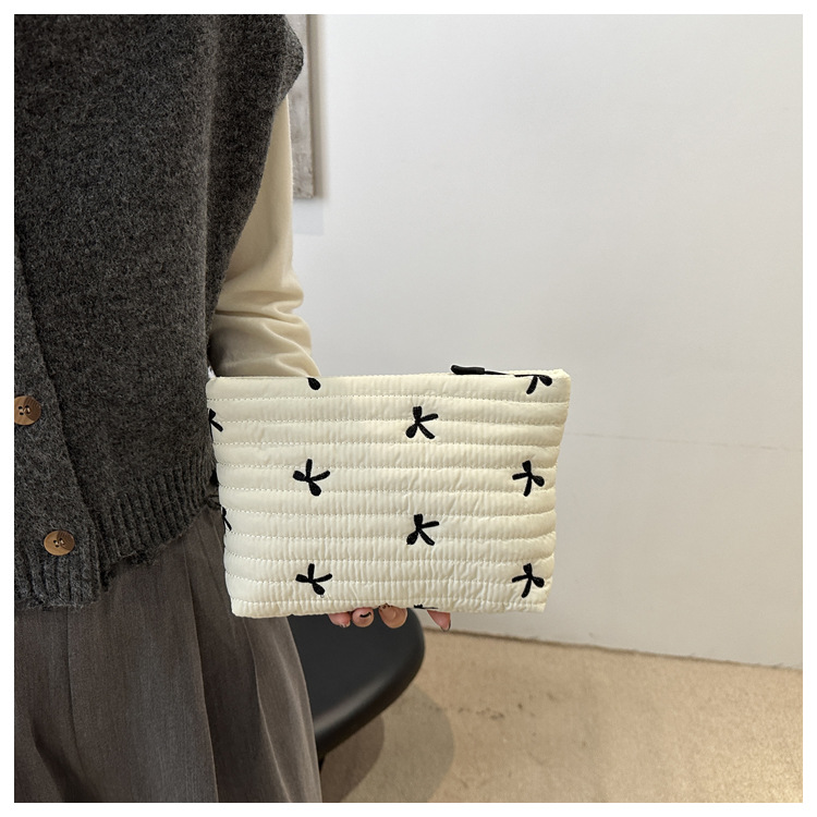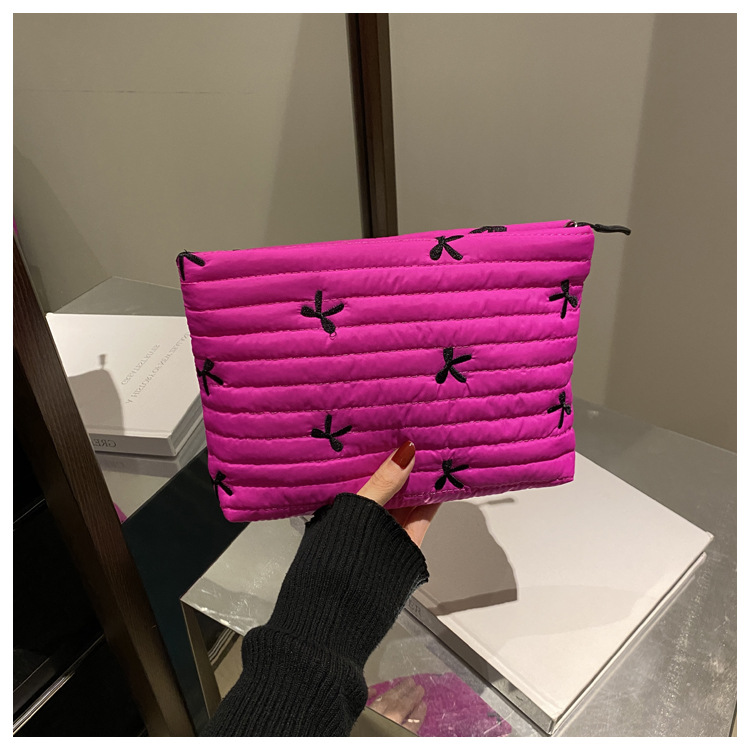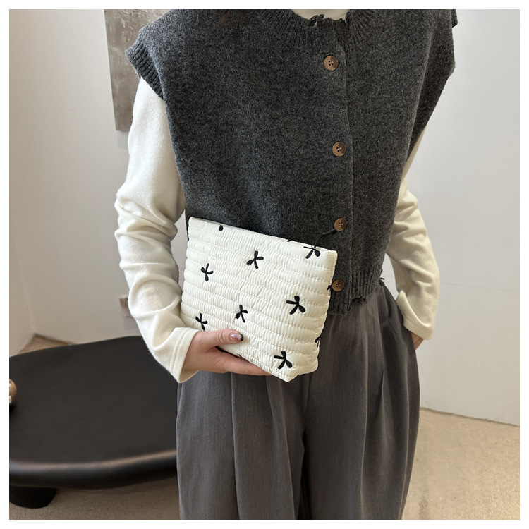 2024 invierno nuevo estilo ins moda portátil pana impresión de mariposa gran capacidad maquillaje embrague portátil