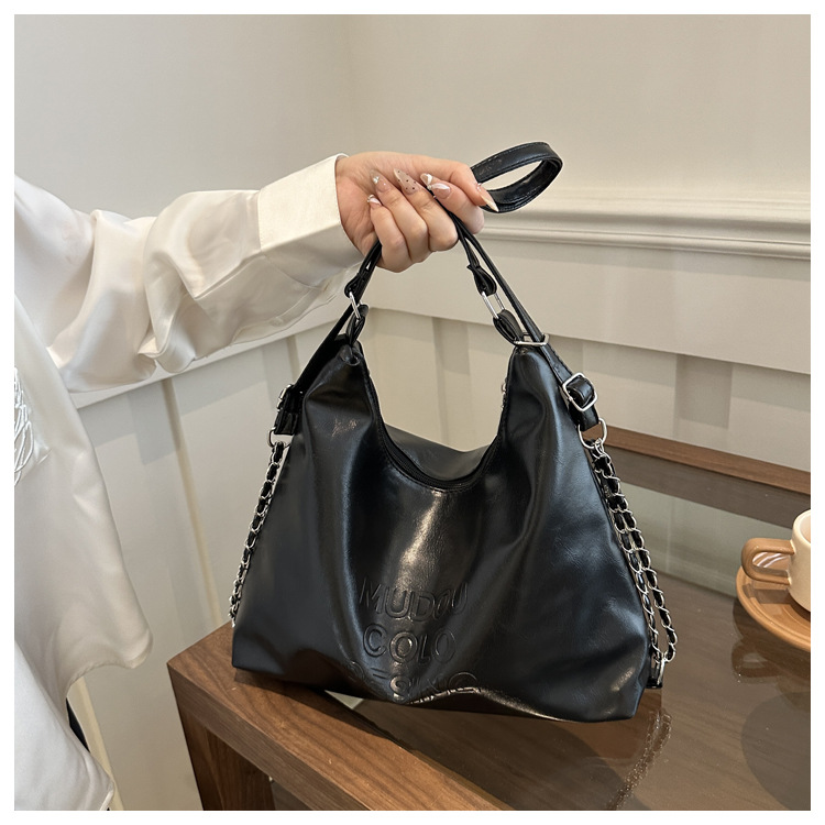 Bolso de moda portátil de gran capacidad para mujeres 2024 nuevo estilo de viaje al trabajo bolso de mano de piel de aceite simple bolso de hombro axilar
