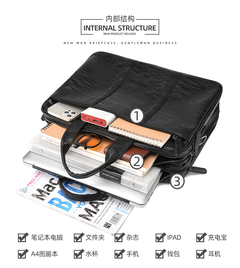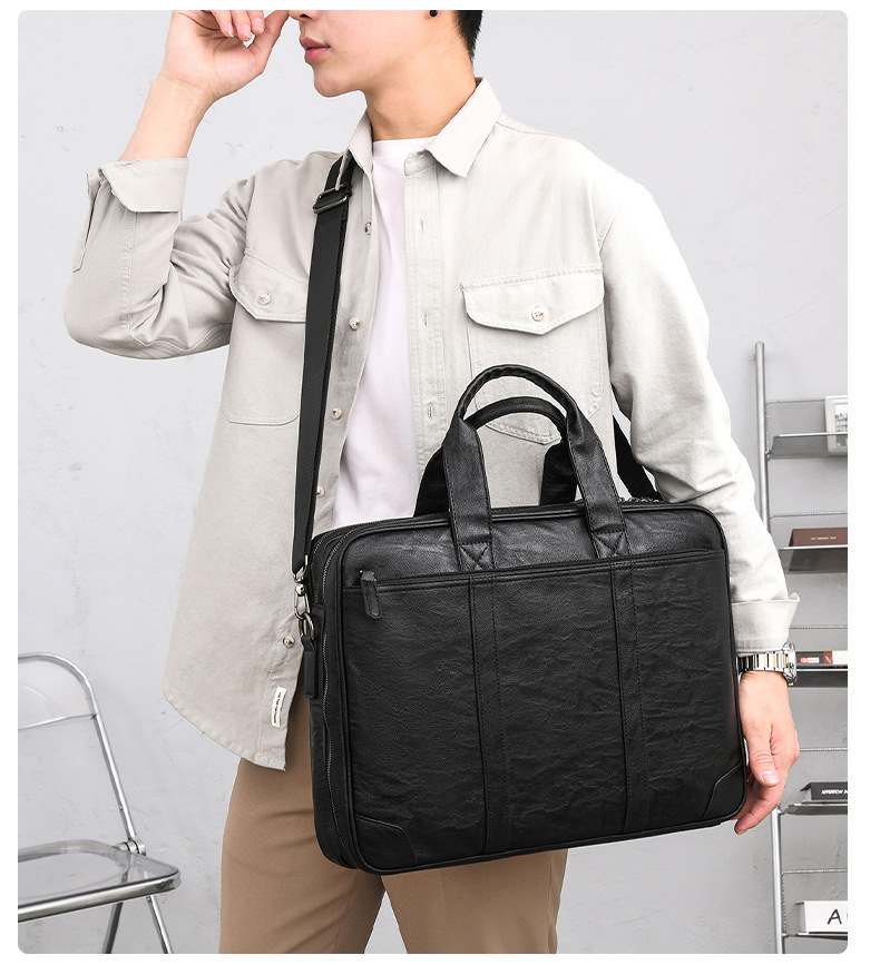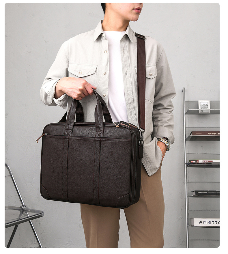 Nuevos hombres pu portátil maletín Oficina de conferencias de negocios gran capacidad 15,6 pulgadas Bolsa de computadora de una sola pieza entrega