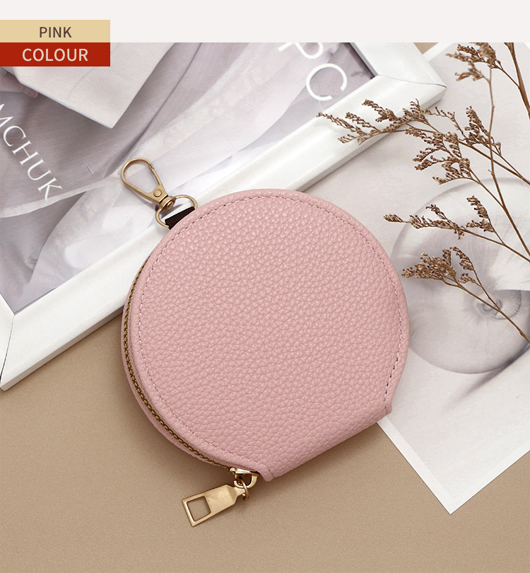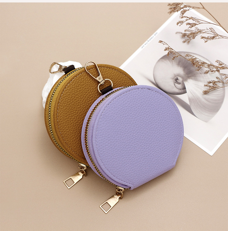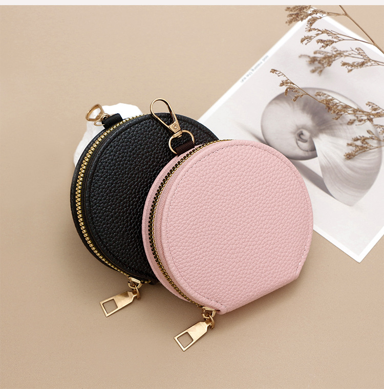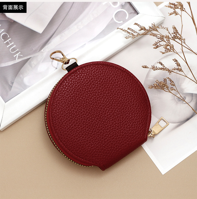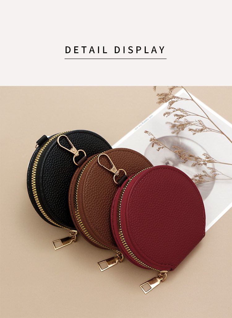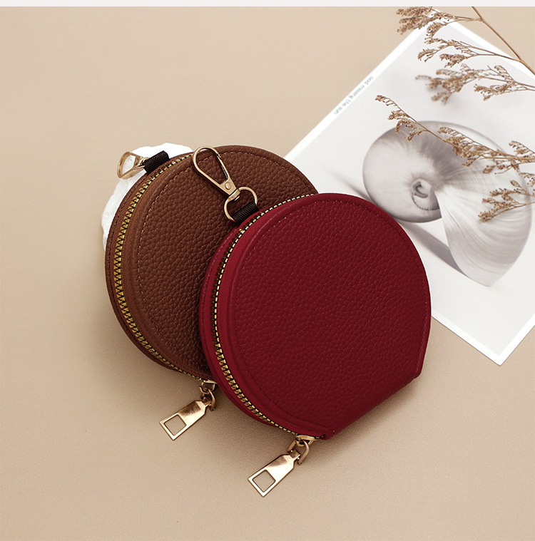 Monedero con cremallera para mujer de cuero PU fresco japonés y coreano estilo INS portátil redondo mini bolso colgante estuche para tarjetas estuche para llaves
