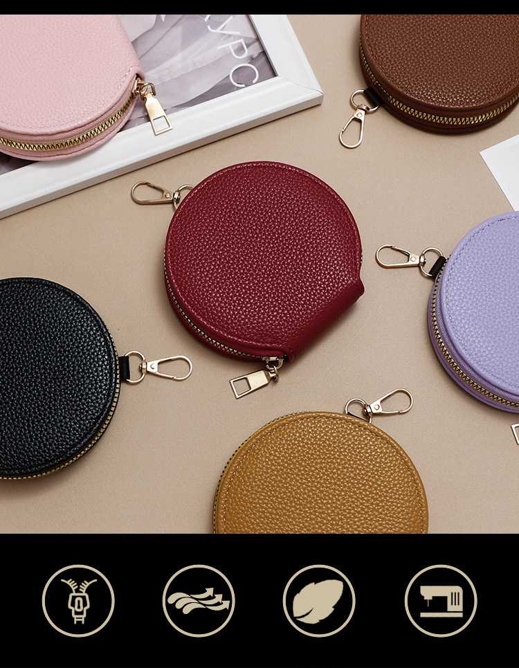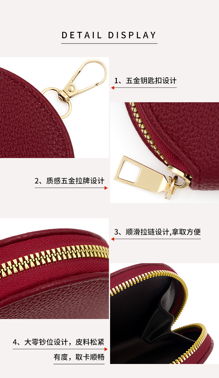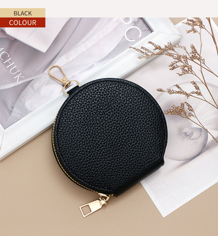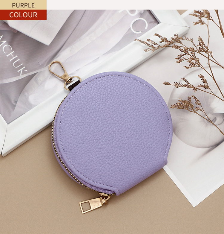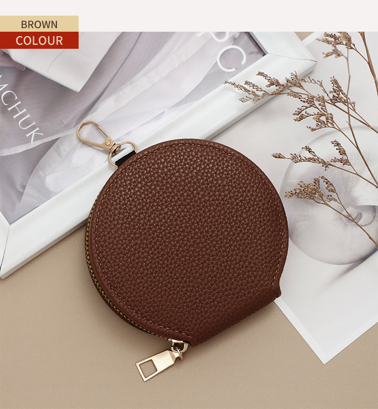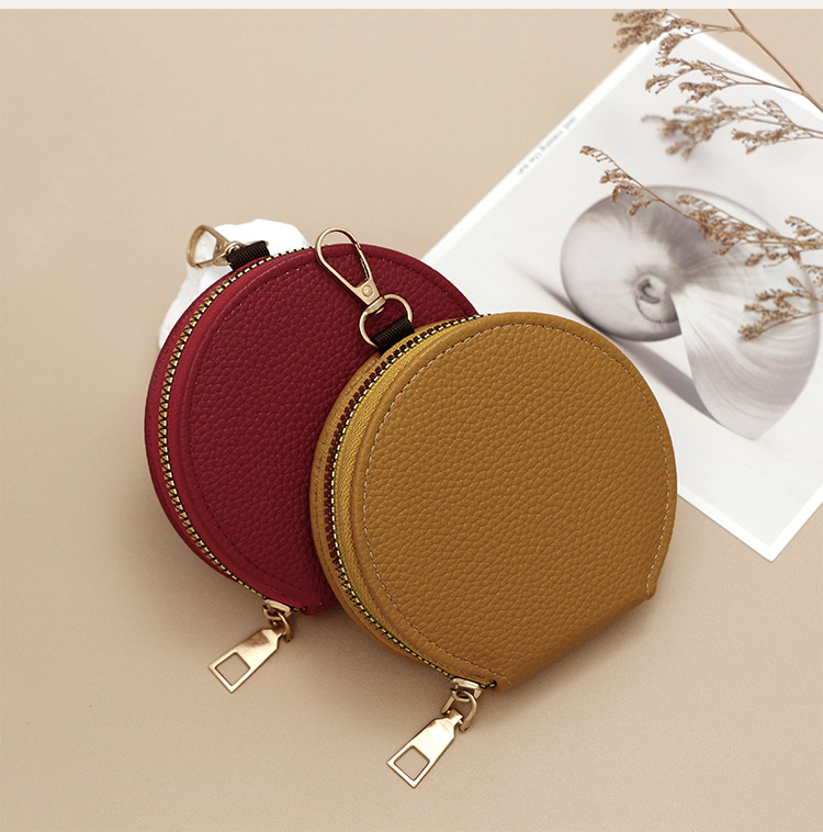 Monedero con cremallera para mujer de cuero PU fresco japonés y coreano estilo INS portátil redondo mini bolso colgante estuche para tarjetas estuche para llaves