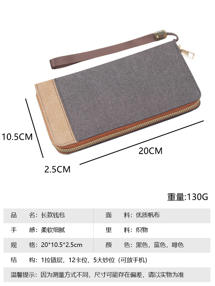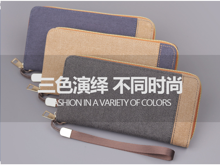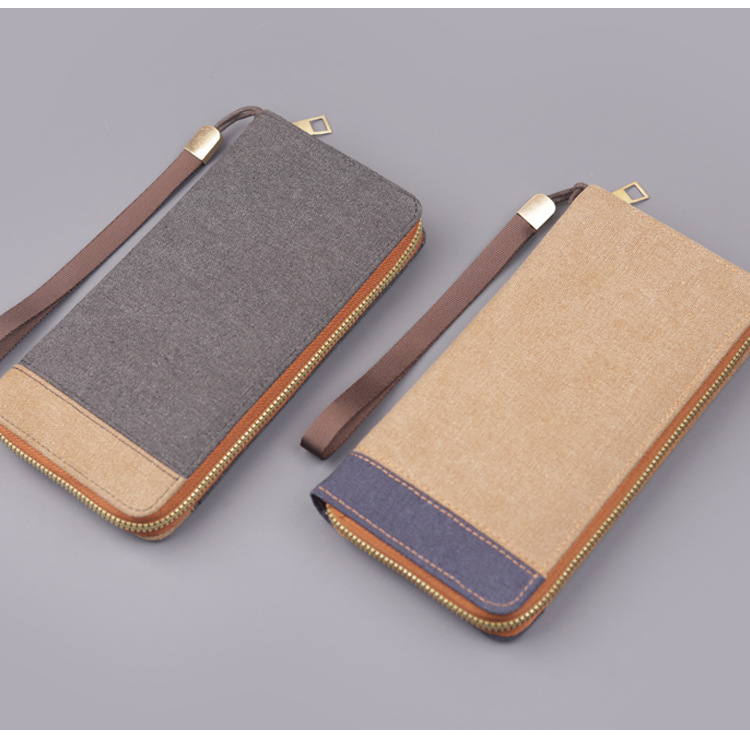 Bolso de mano de hombre zipper canvas bolso de mano pulsera de hombre bolso de mano larga bolso de teléfono móvil de hombre denim