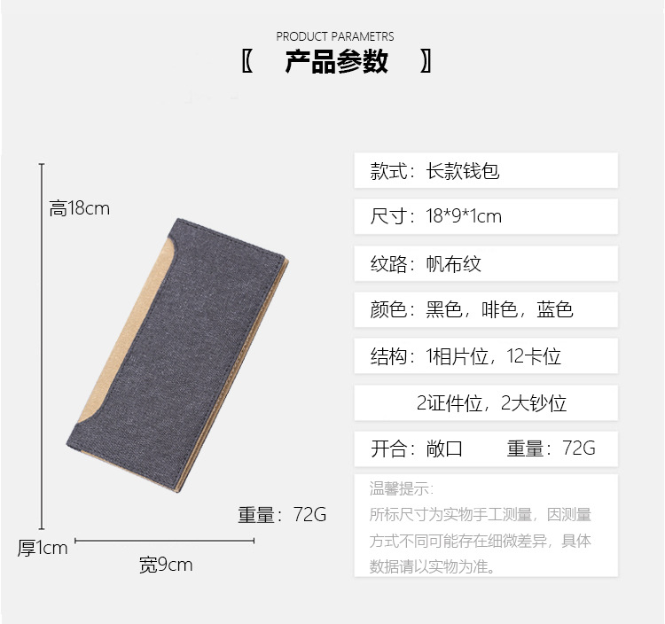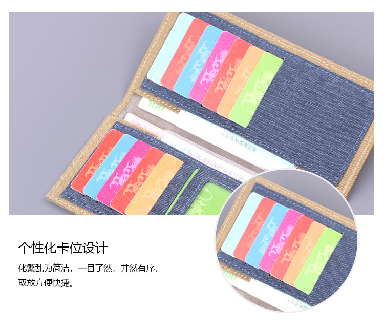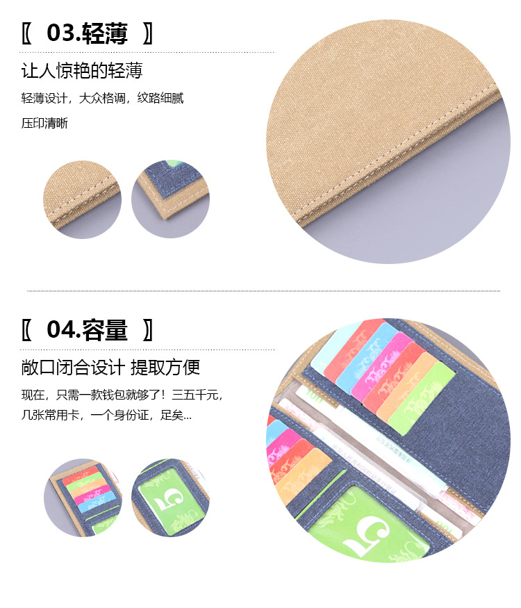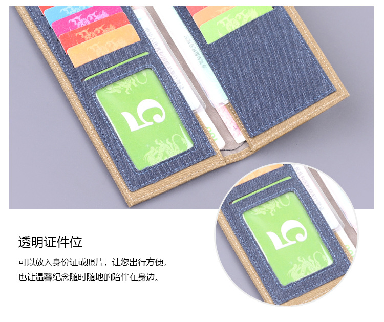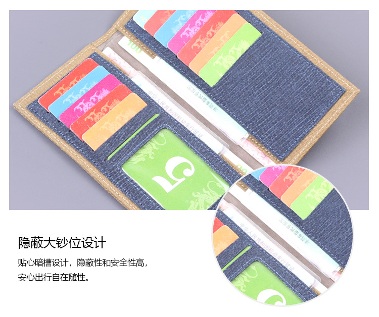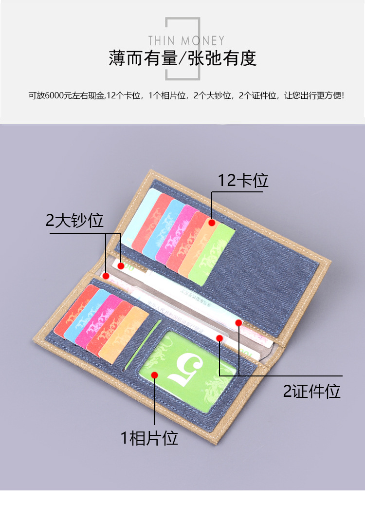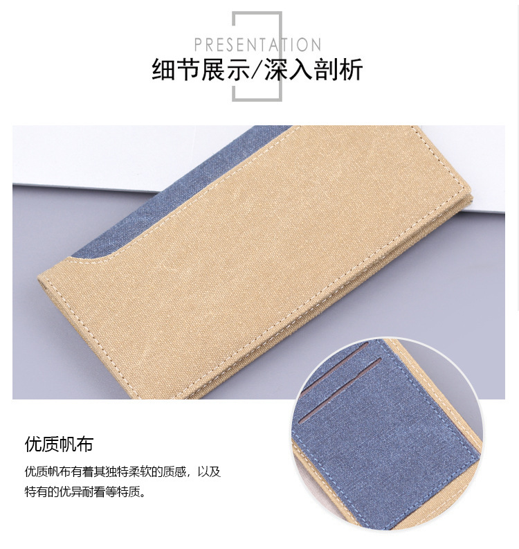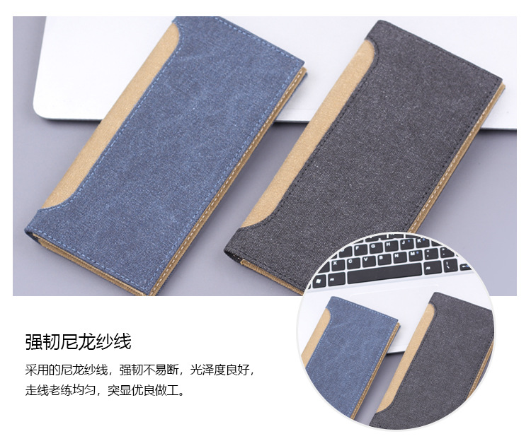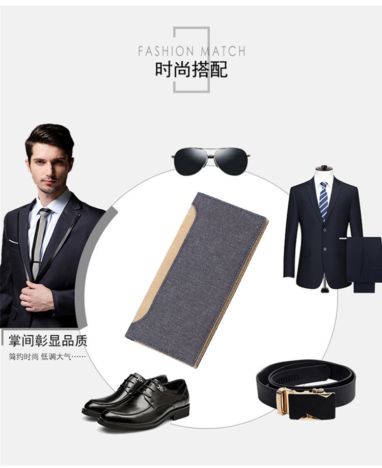 Cartera larga para hombres, lienzo, cartera de denim para hombres, bolso de traje delgado, bolso de tarjetas para hombres, cartera de 12 tarjetas.