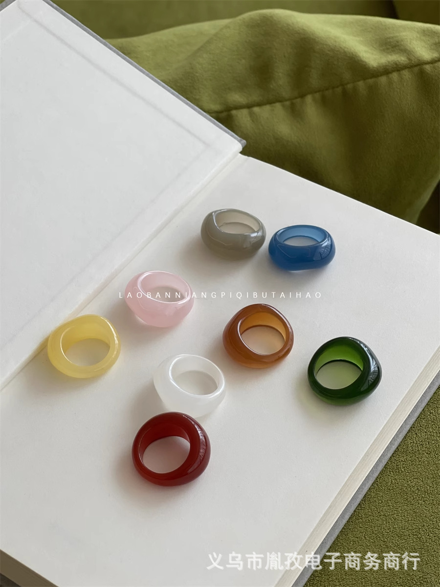 El pequeño blogero del libro rojo con el mismo anillo de resina en forma de tesoro único de nicho, anillo de viento frío para atraer riqueza