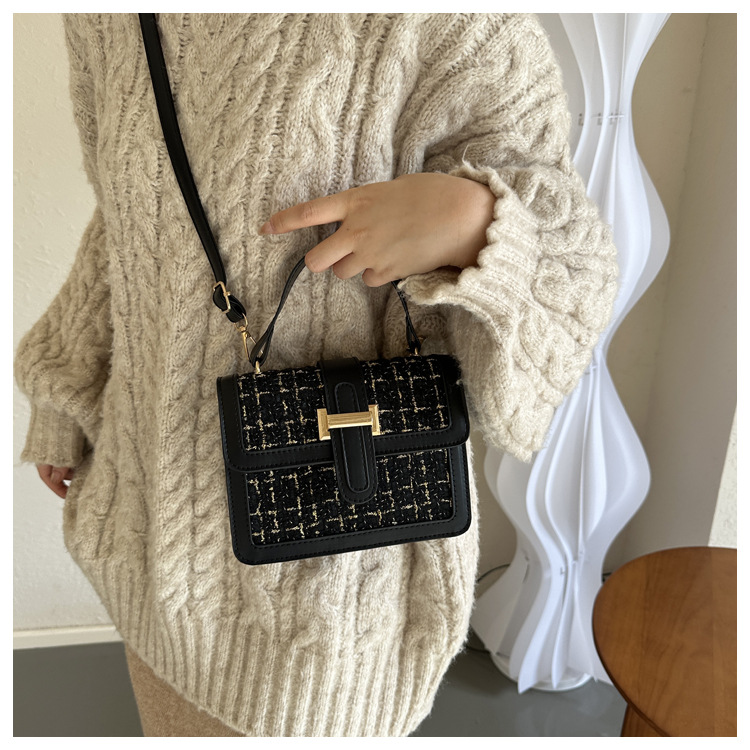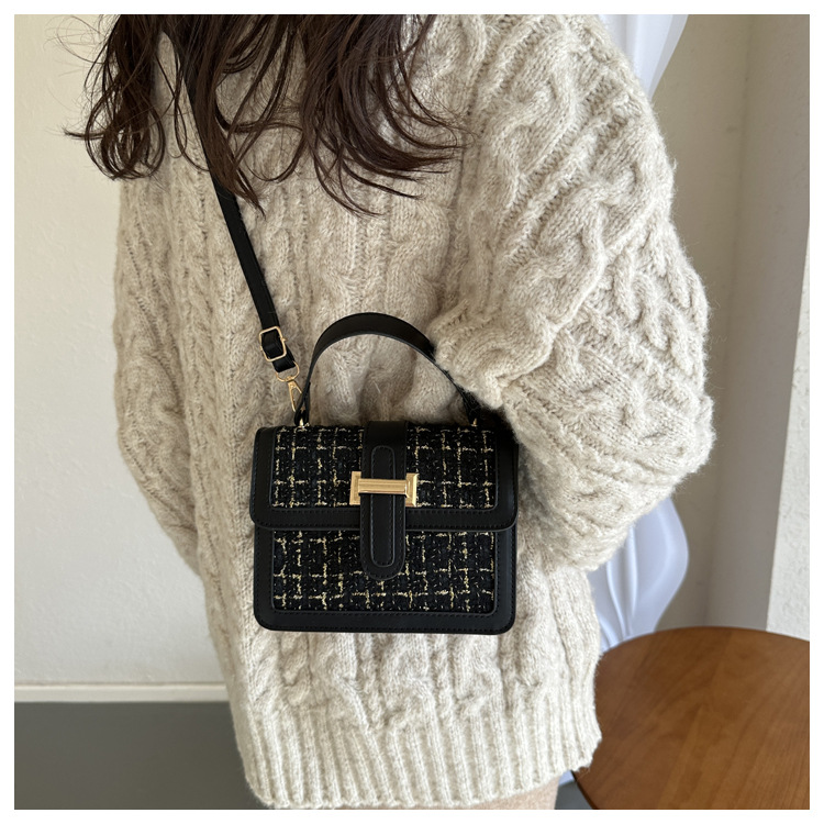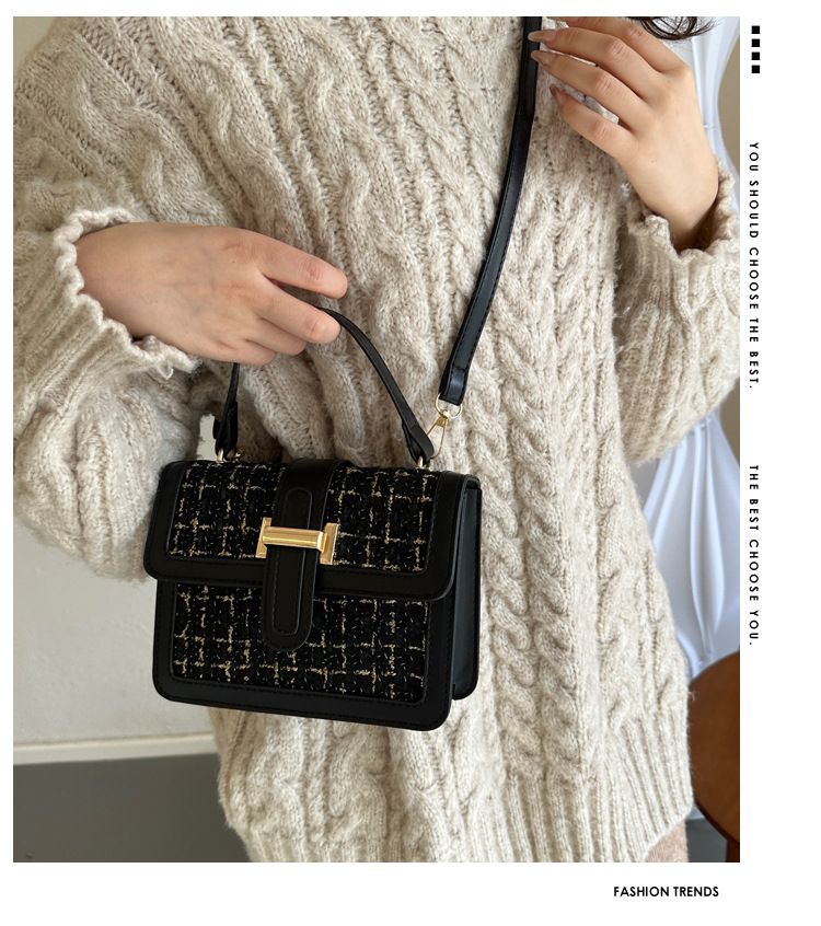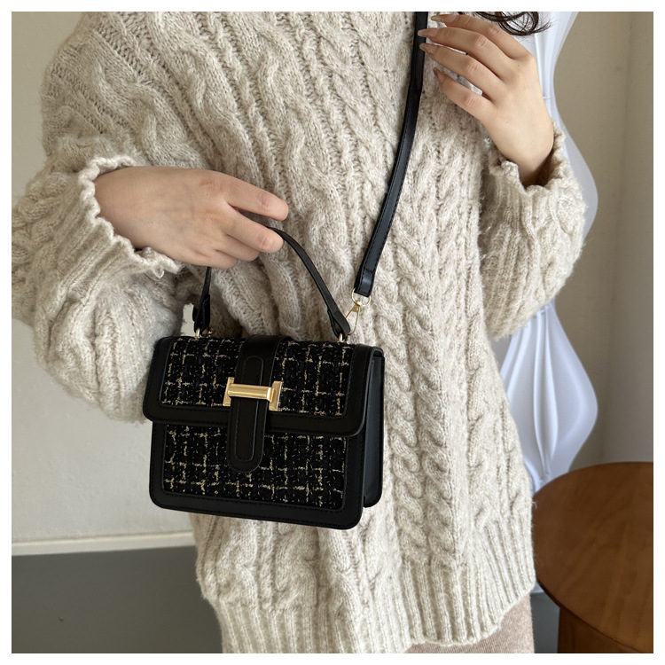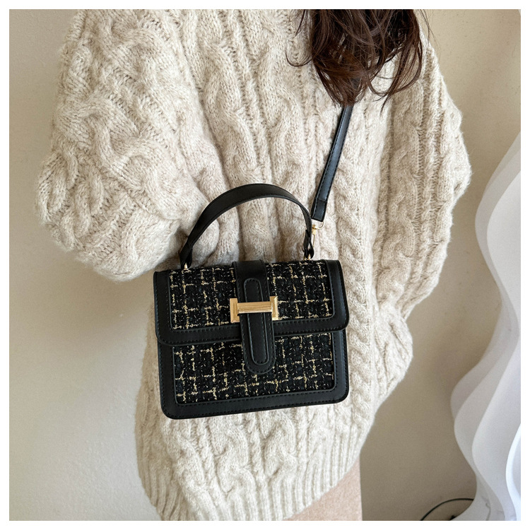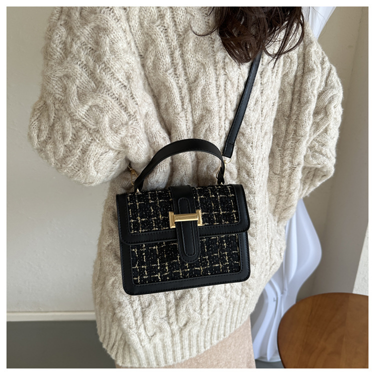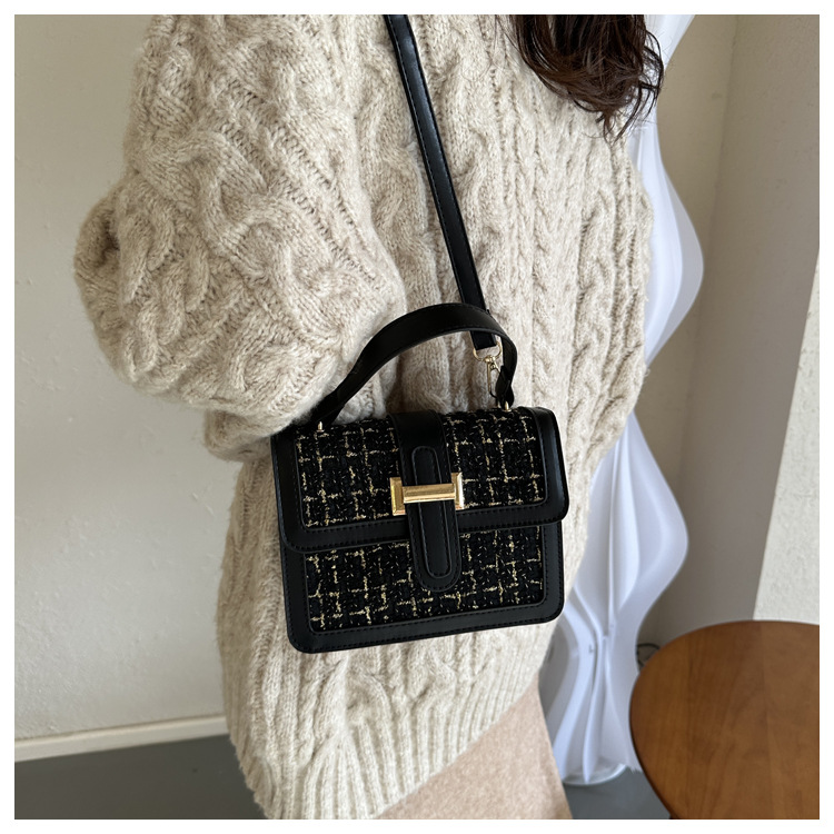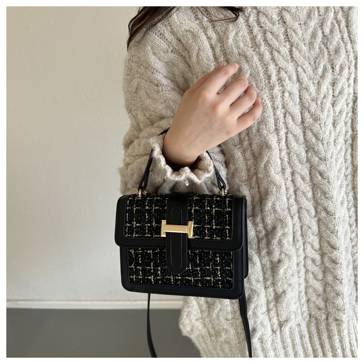 Bolsa tejida estilo Chanel 2024 Nueva Bolsa cuadrada pequeña bolsa de mensajero de nicho de Invierno para mujer